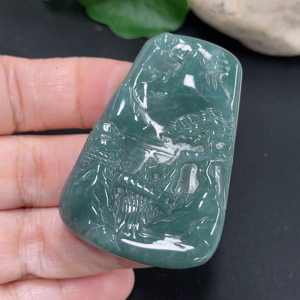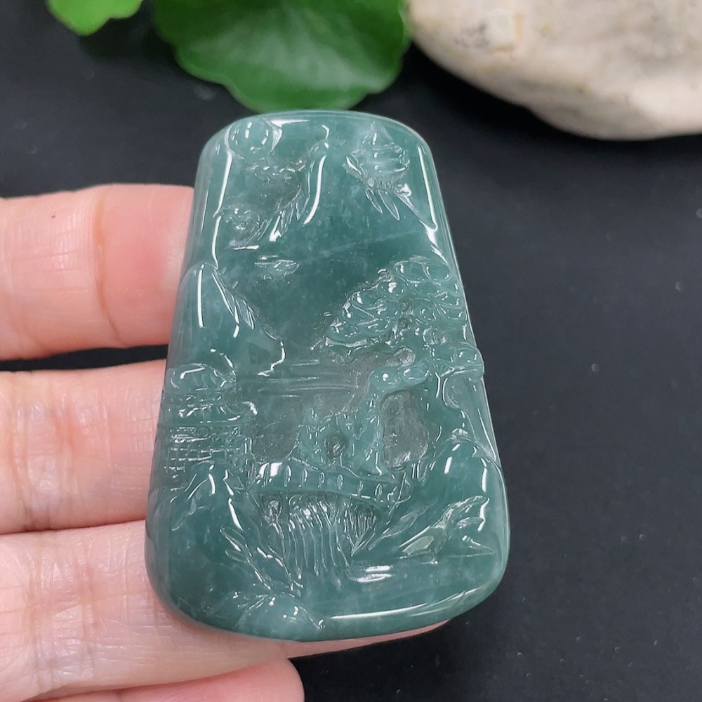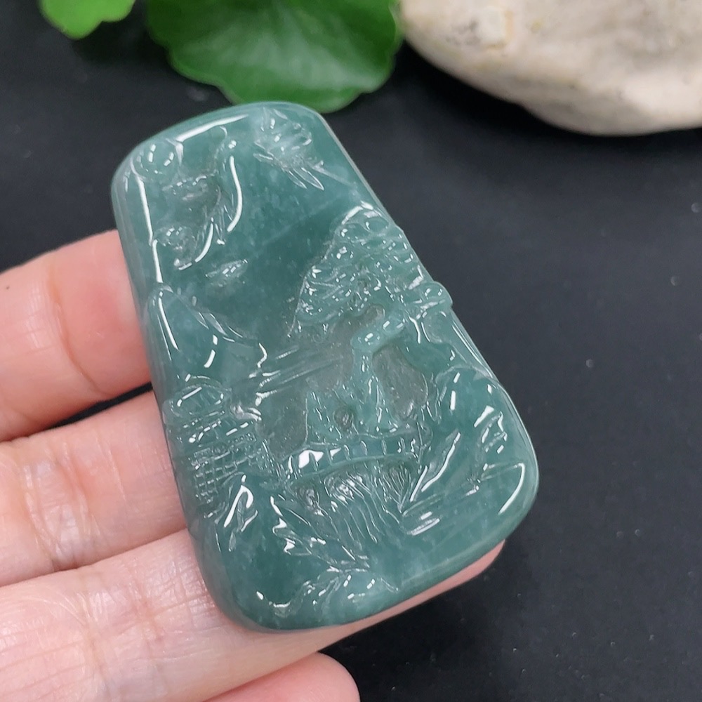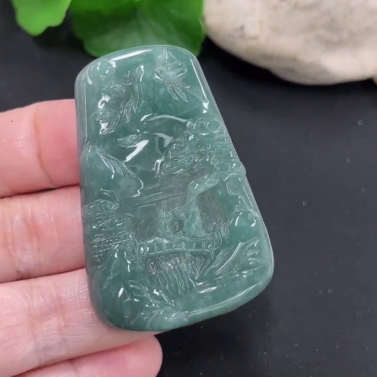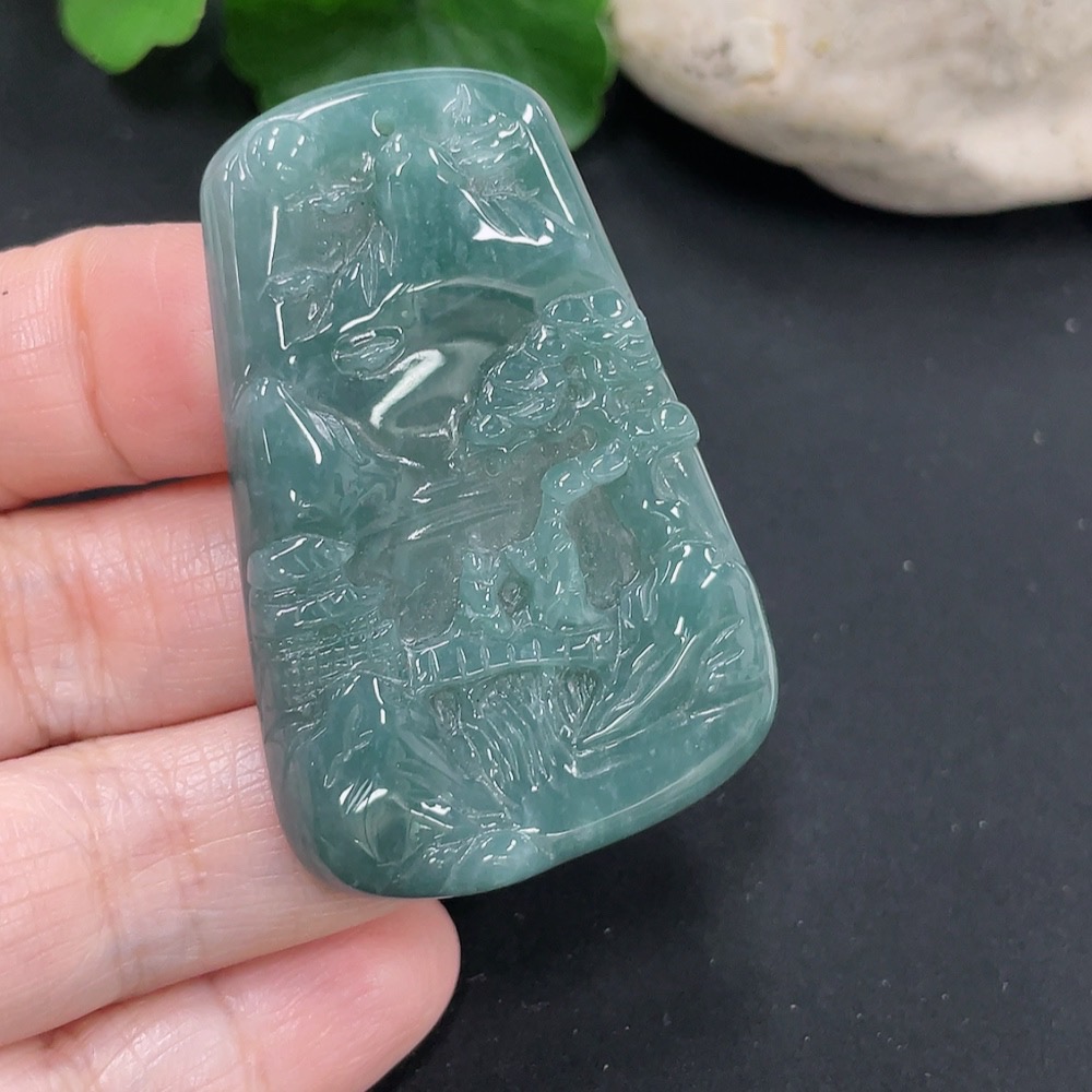 Jadeite Landscape Pendant, Total Weight Approximately 15.7g