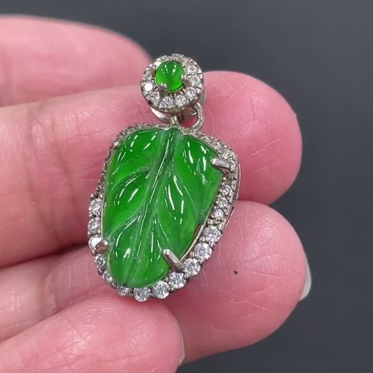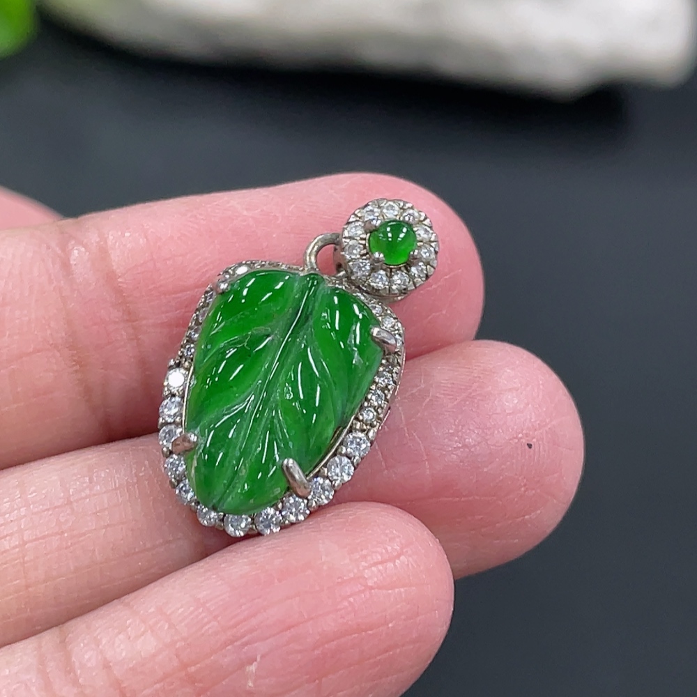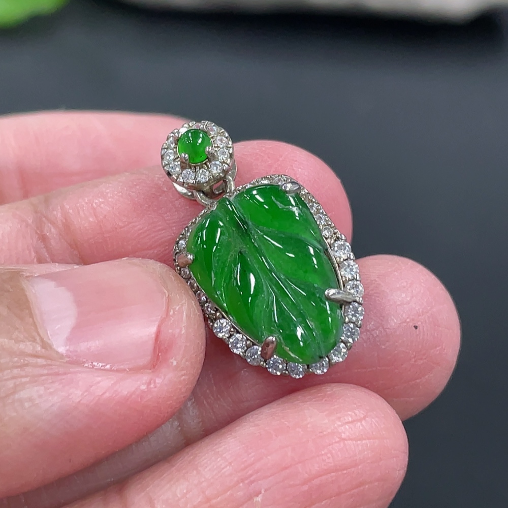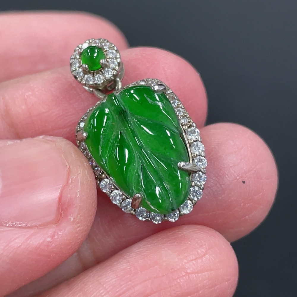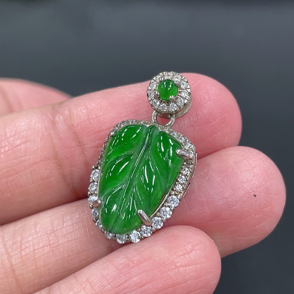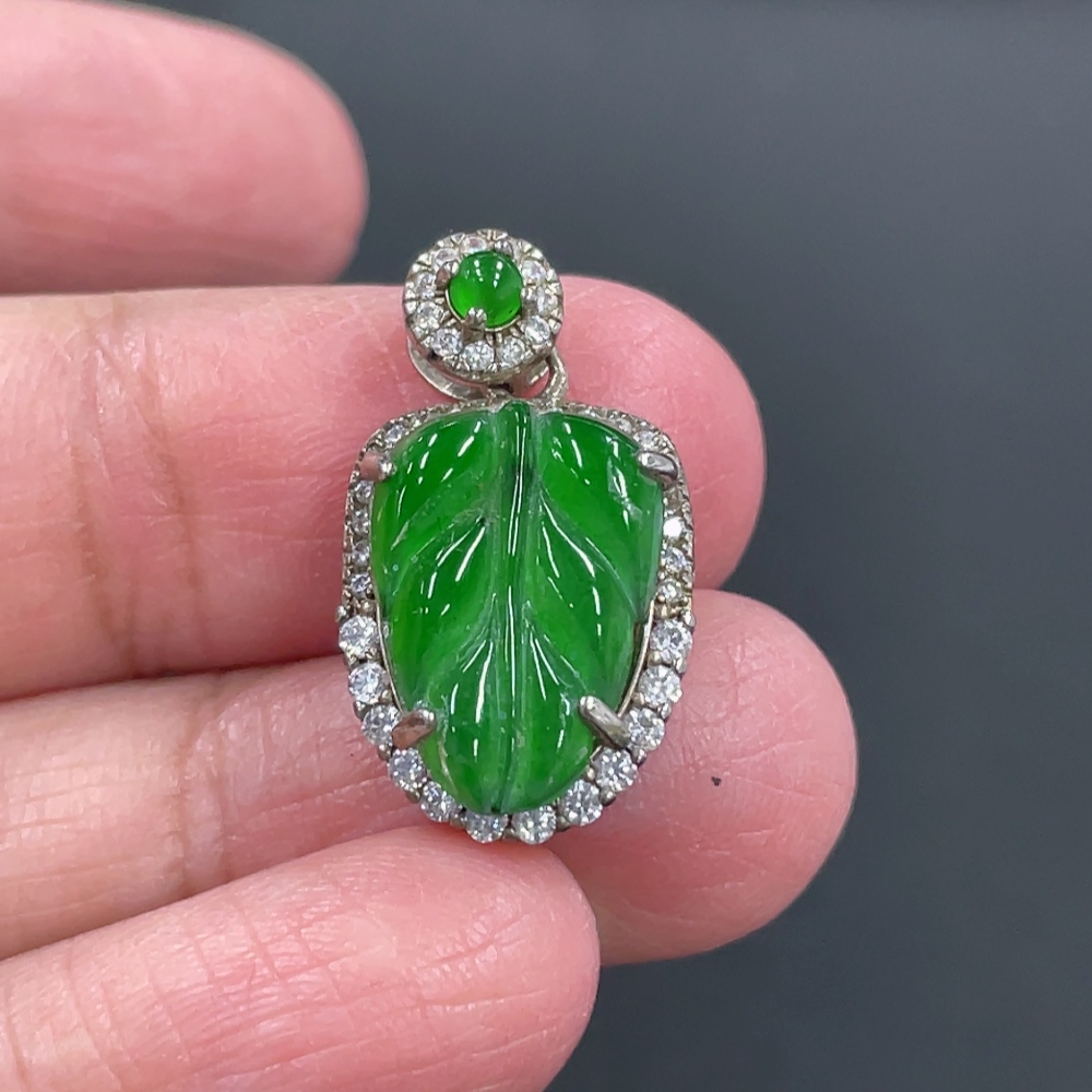 Jadeite Leaf Inlaid Pendant Non-Gold Inlaid Total Weight Approx. 12.8g