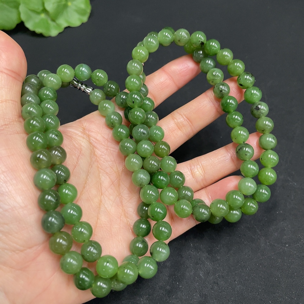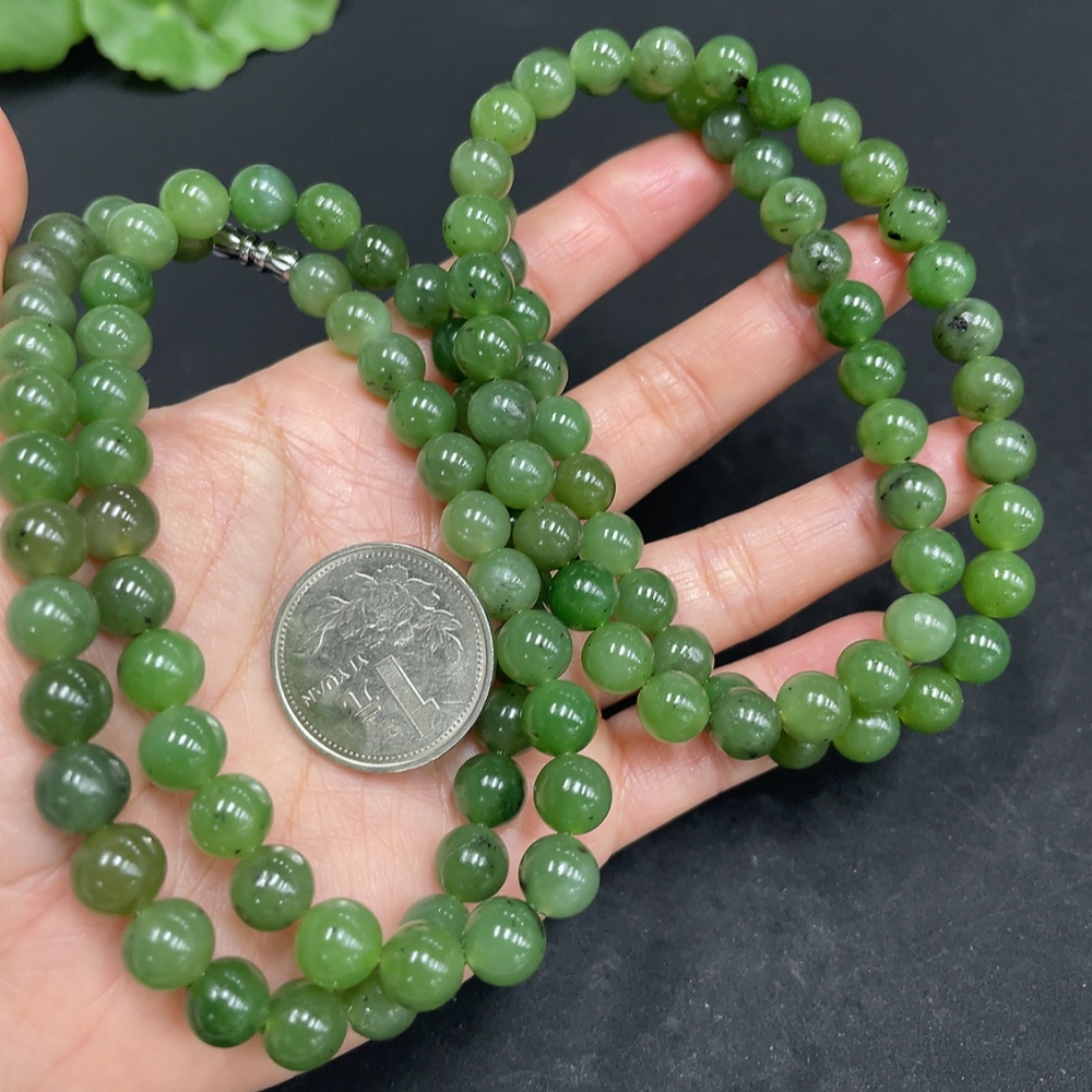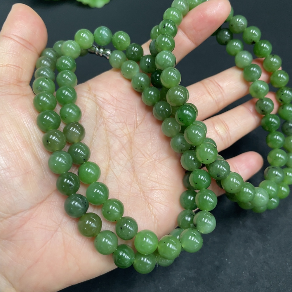 Hetian Jade Bead Necklace Approx. 8/7.9mm Total Weight Approx. 94g