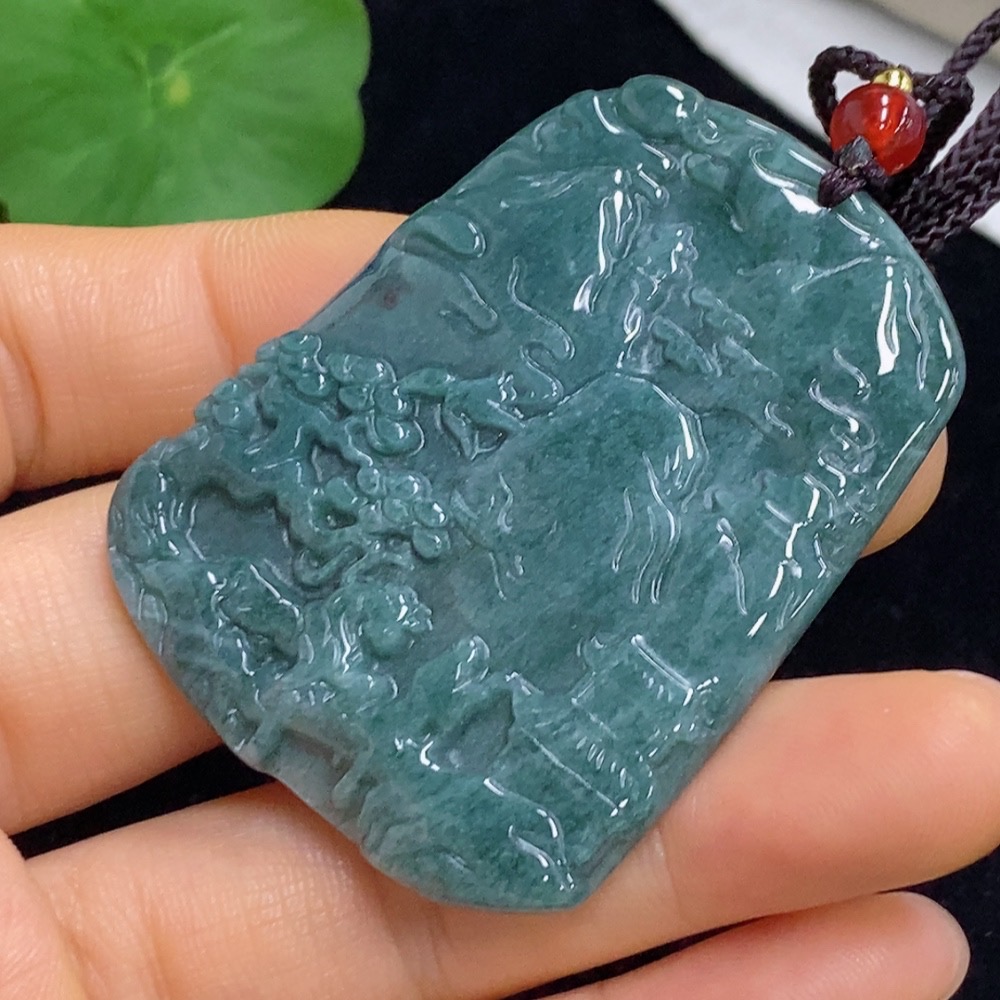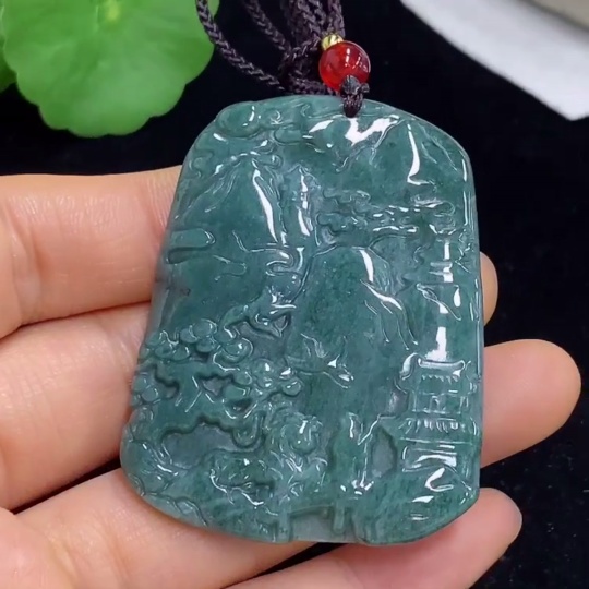 Jadeite Landscape Pendant Total Weight Approx. 21.04g (including rope weight)