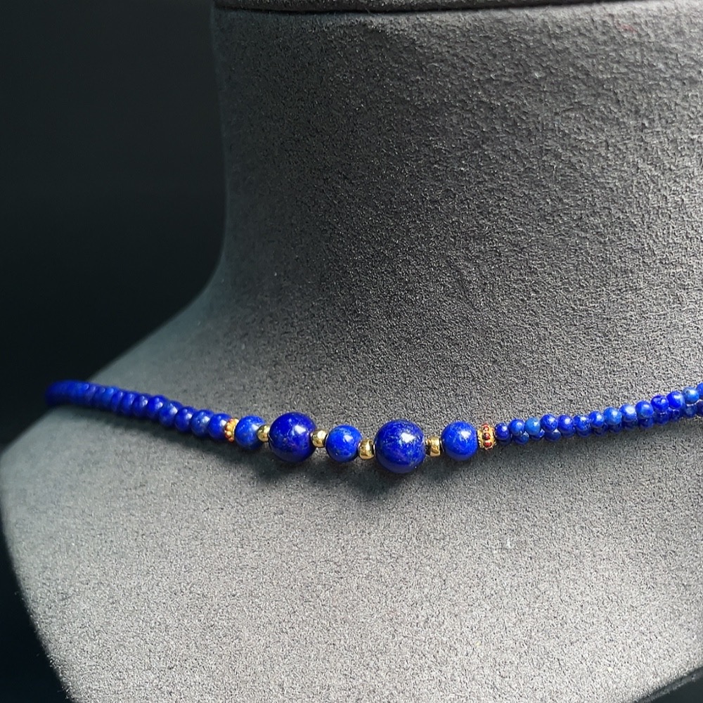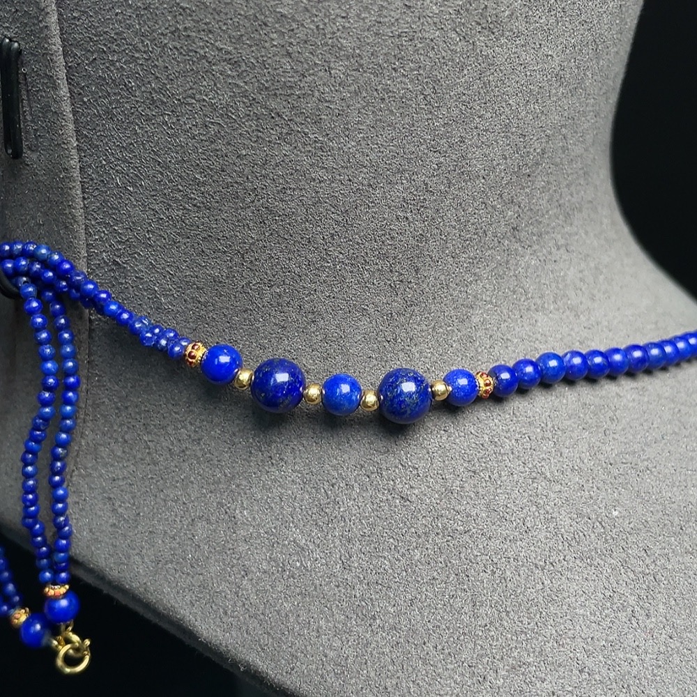 Lapis Lazuli Beaded Necklace Marked Red Part Non-Gold Rest 18K Total Weight Approx. 14.57g Size 1.9-6.4mm
