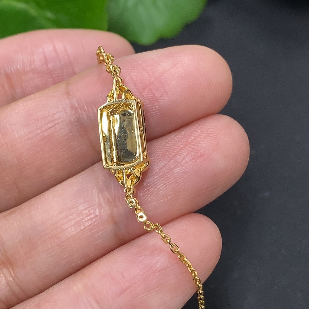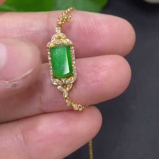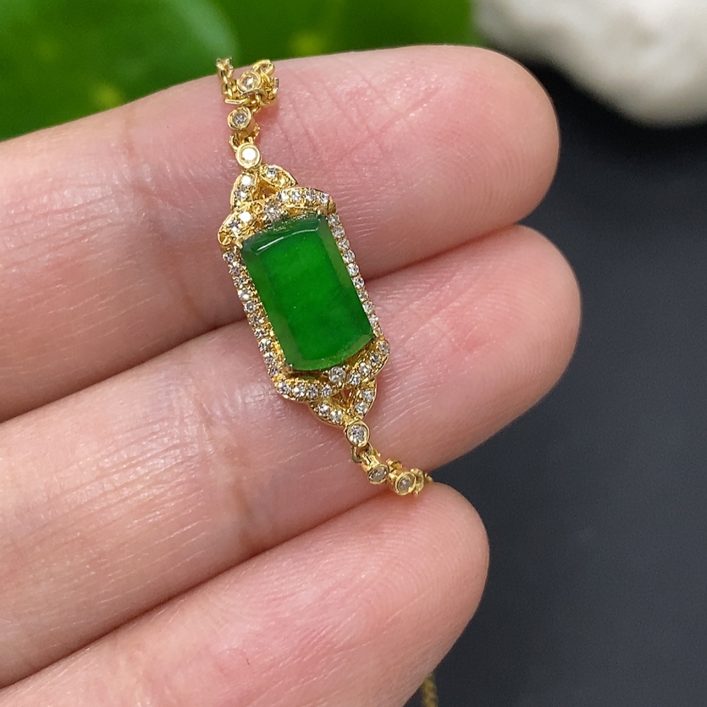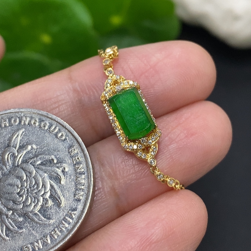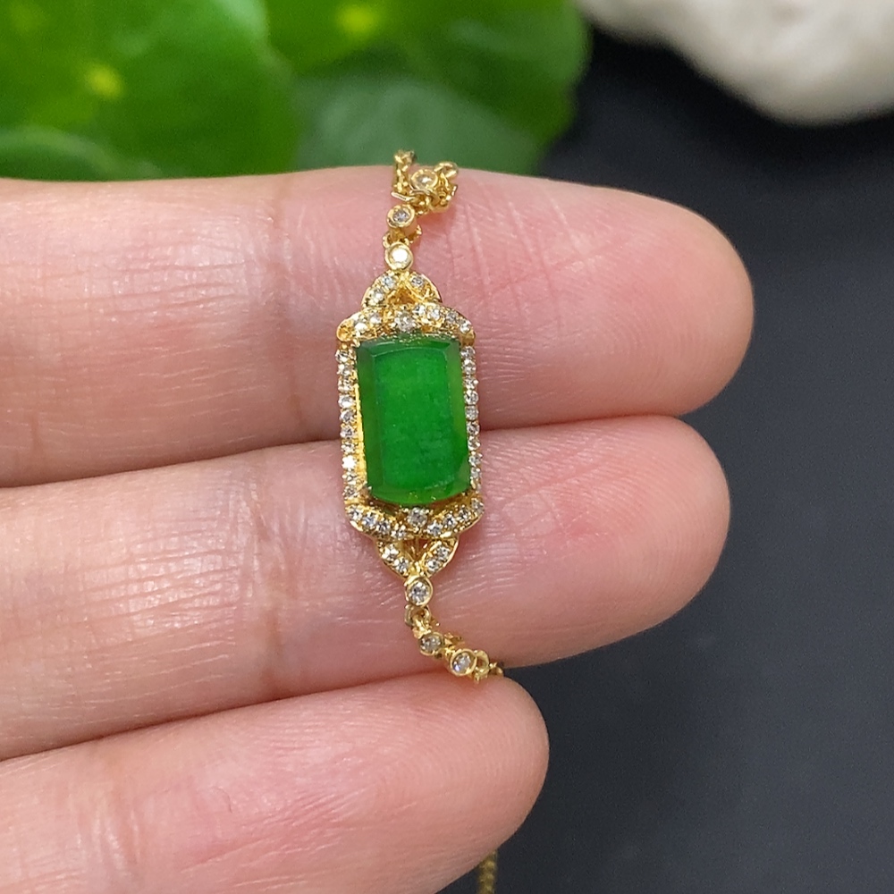 Jadeite inlaid bracelet 18K gold total weight approx. 2.1g (with diamond accents)