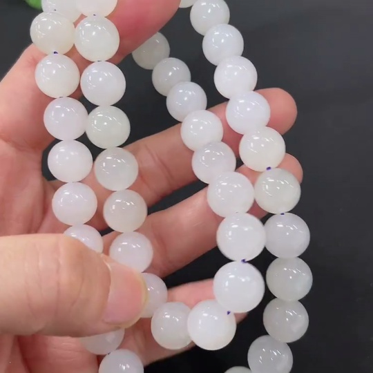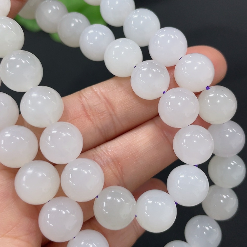 Hetian Jade Bead Necklace, approx. 9.3mm, total weight approx. 69.3g