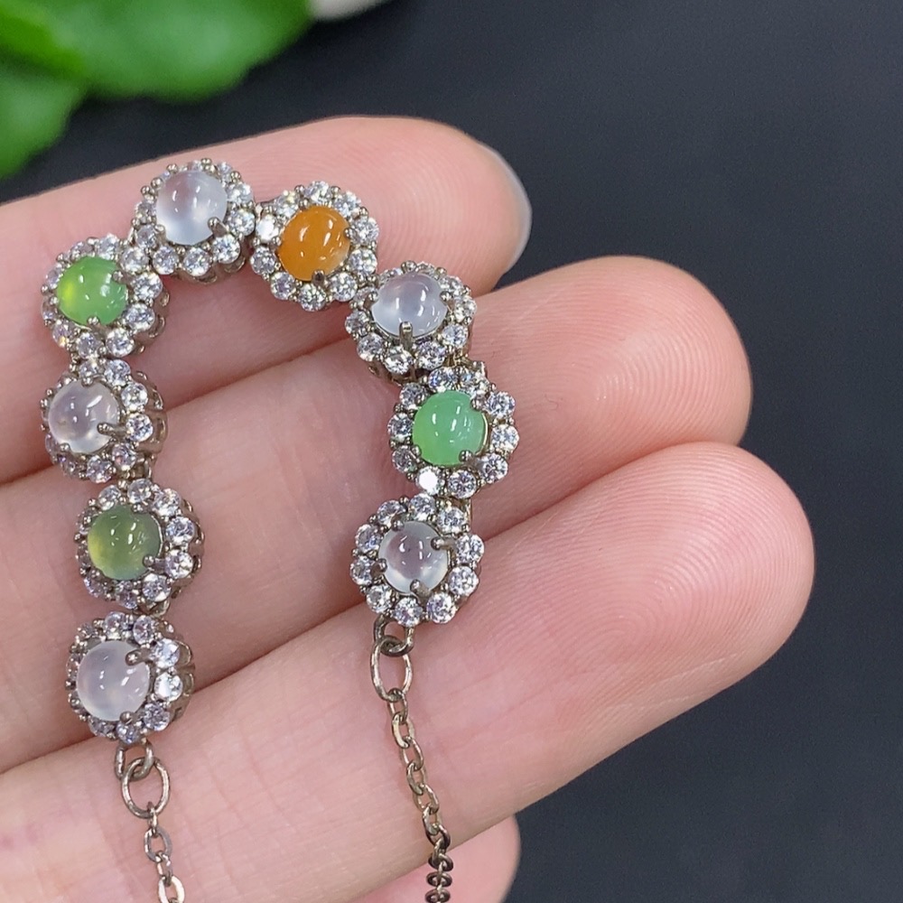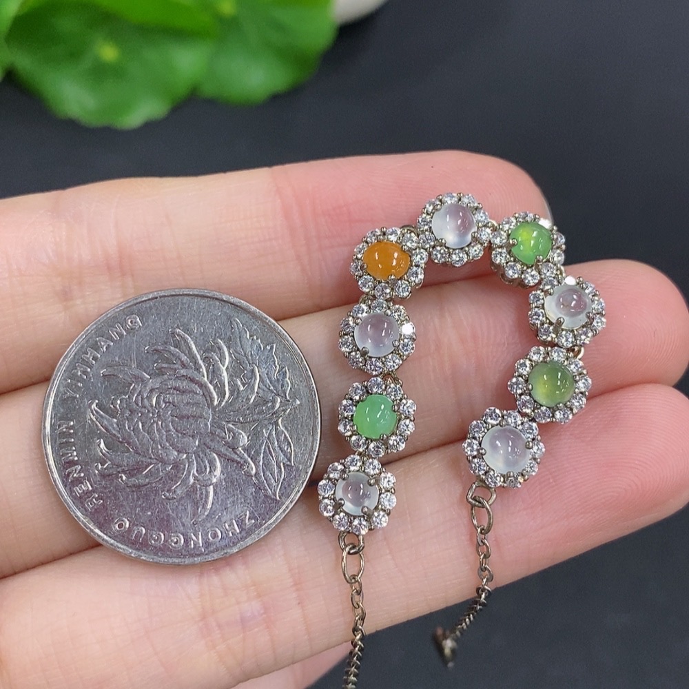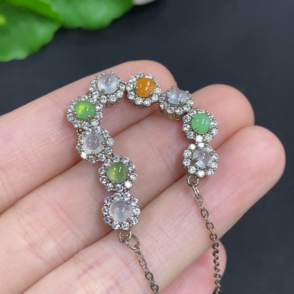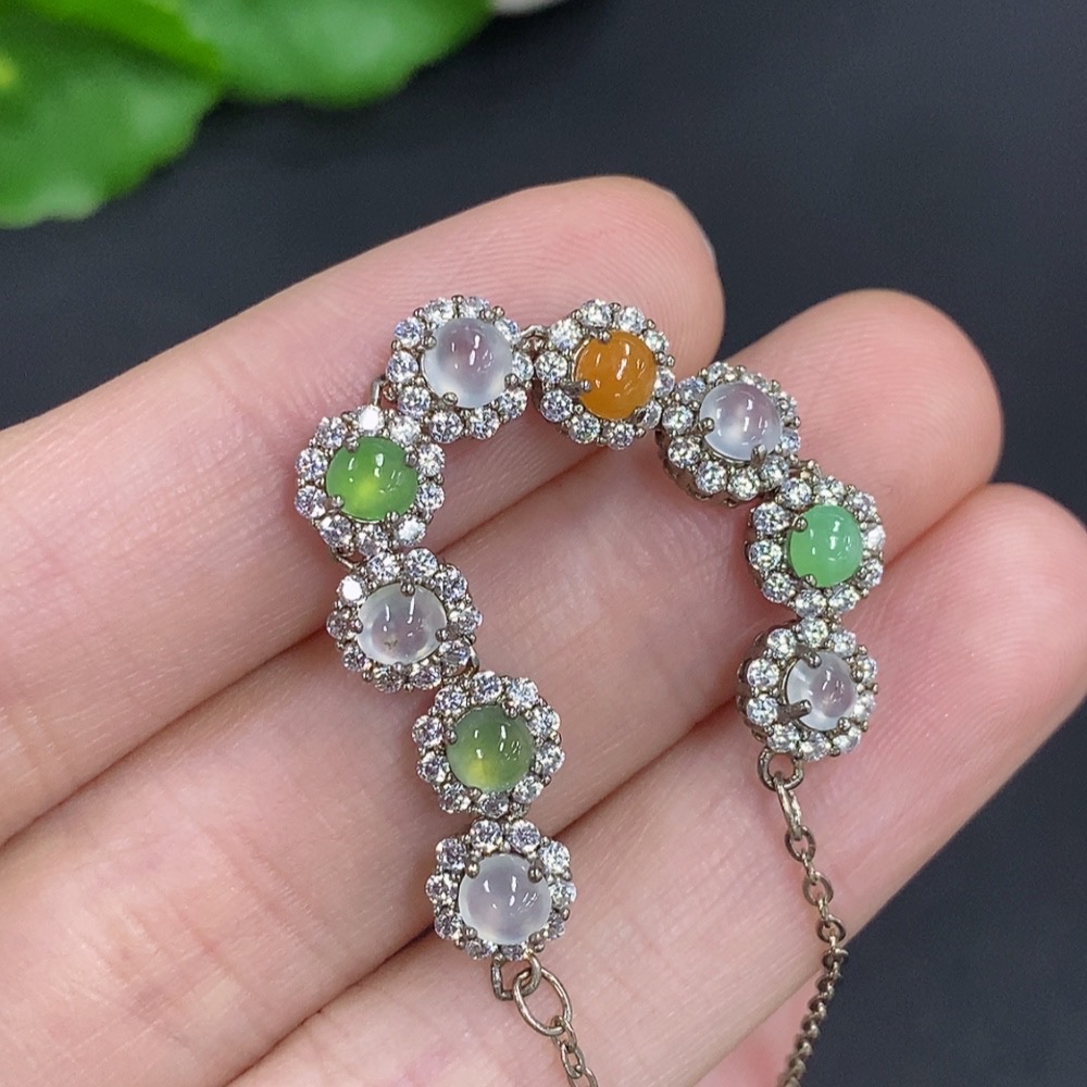 Jadeite Cabochon Inlaid Bracelet Non-Gold Inlaid Total Weight Approx. 5.3g
