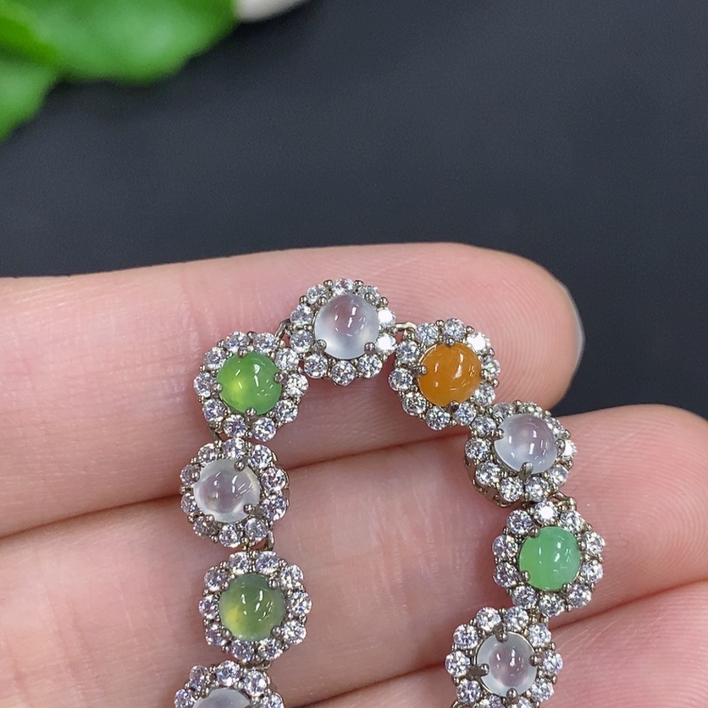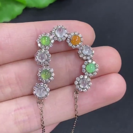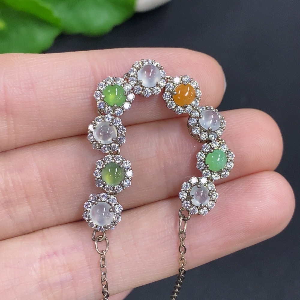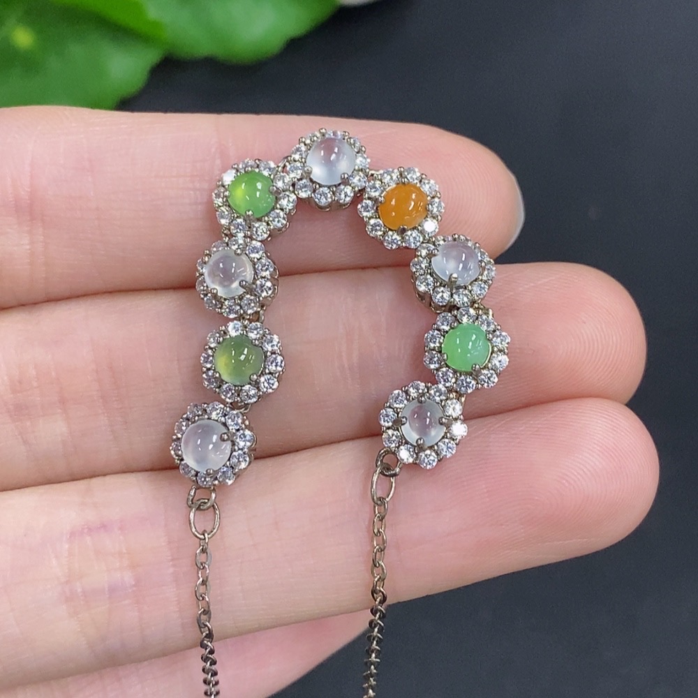 Jadeite Cabochon Inlaid Bracelet Non-Gold Inlaid Total Weight Approx. 5.3g