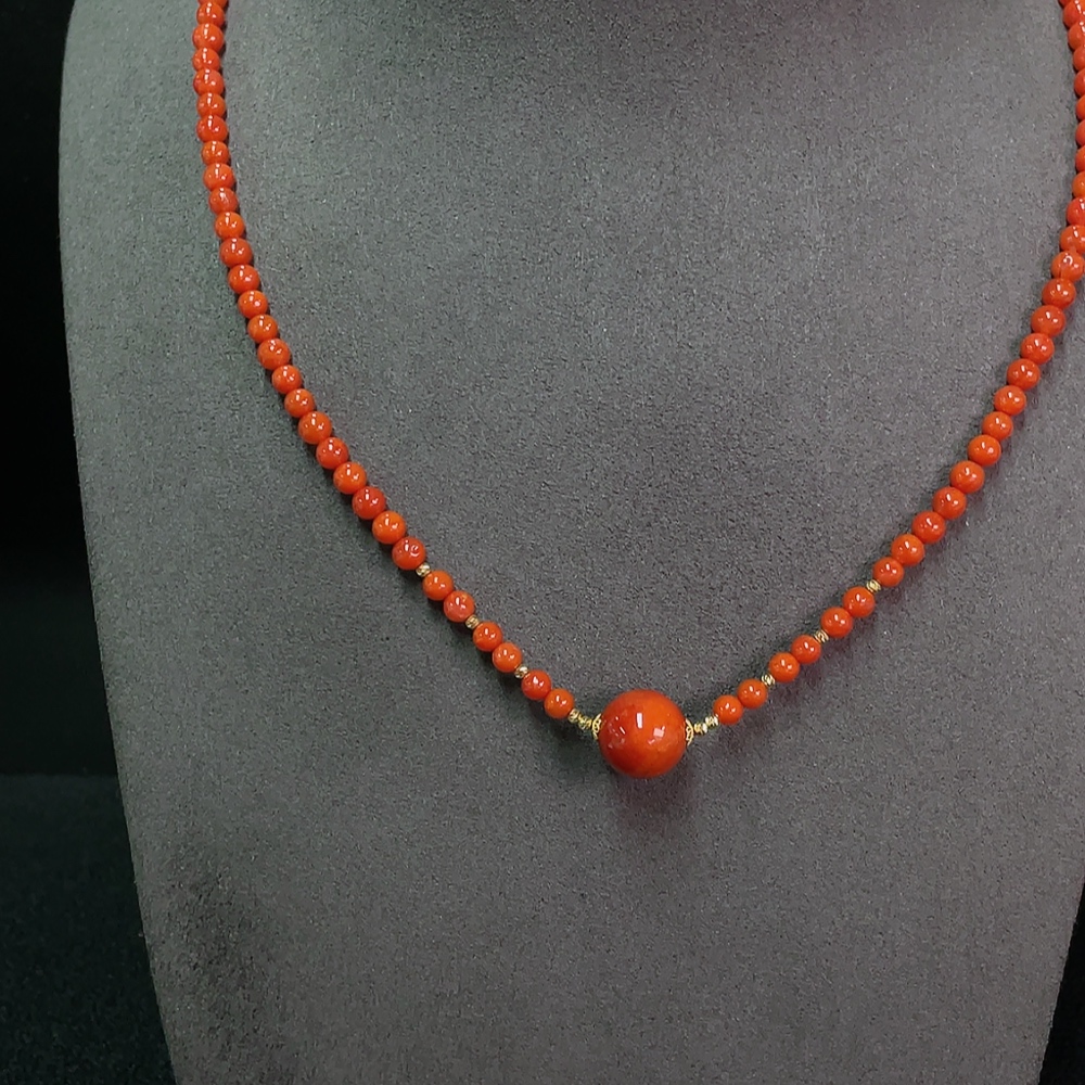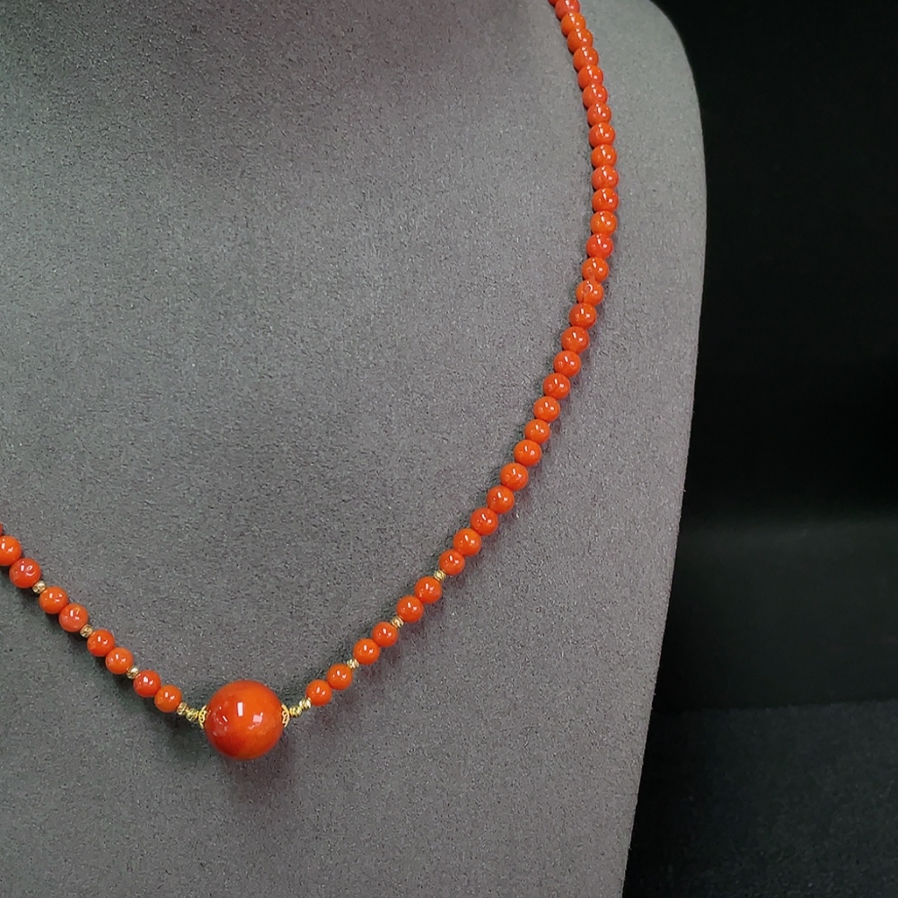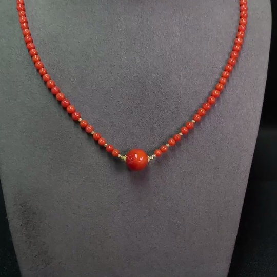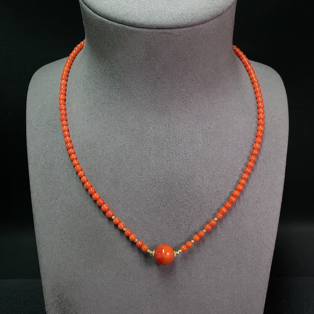 Red Agate Beaded Necklace with Visible Organic Matter, 18K Gold, Total Weight Approx. 13.52g, Bead Size 4.3-11.8mm