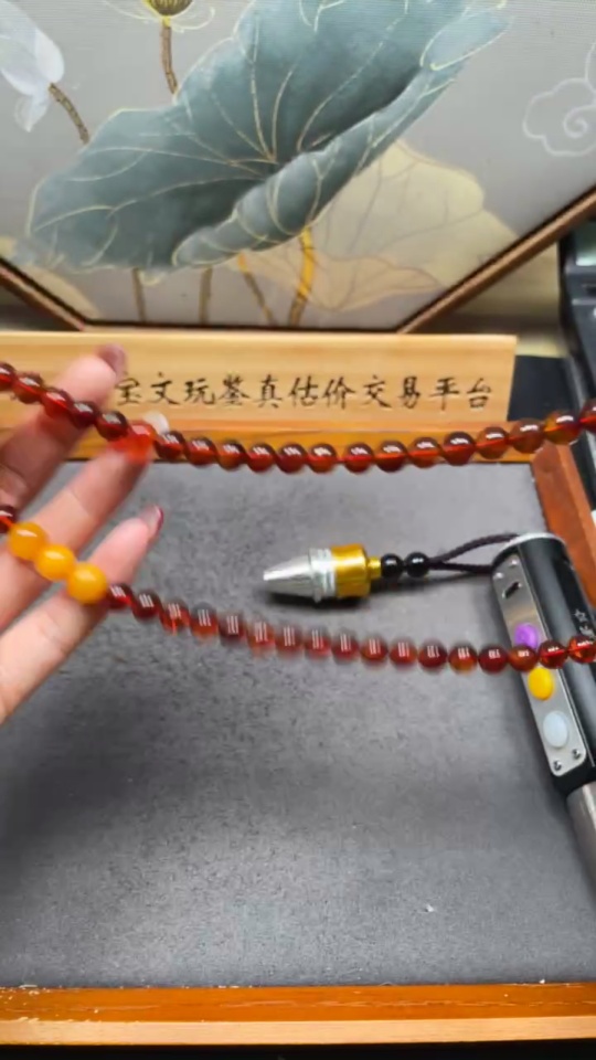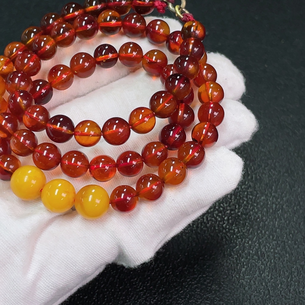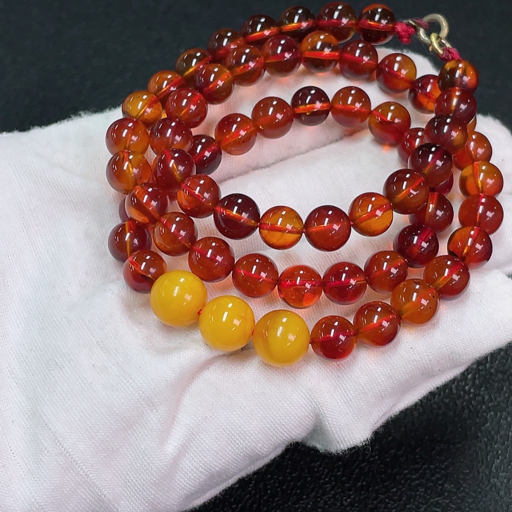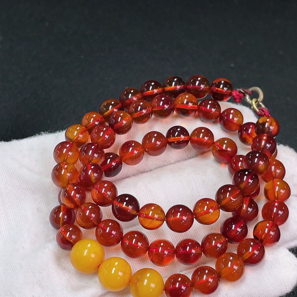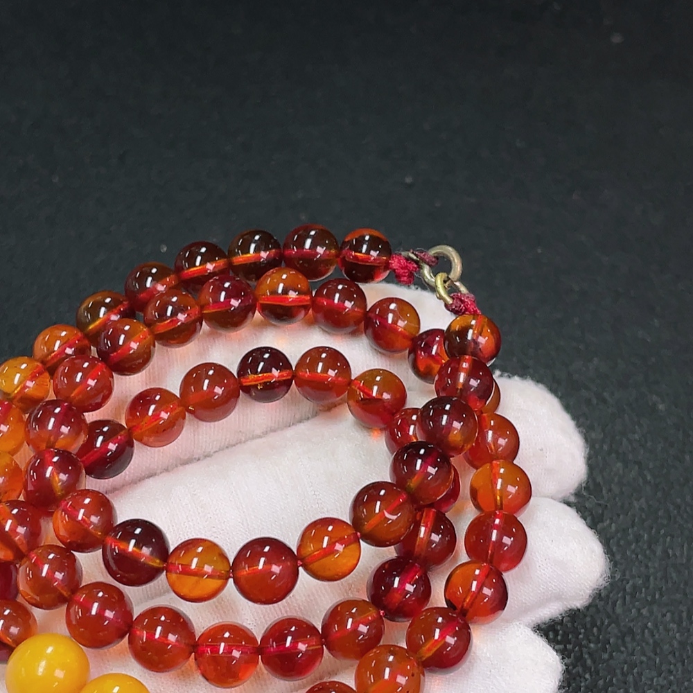 Amber and beeswax bead necklace, total weight approximately 16.91g, bead size 7.5-9.3mm, non-gold