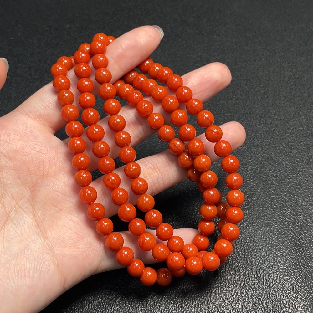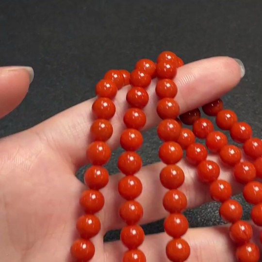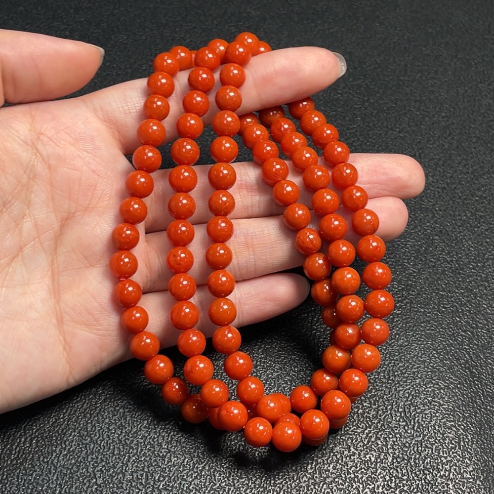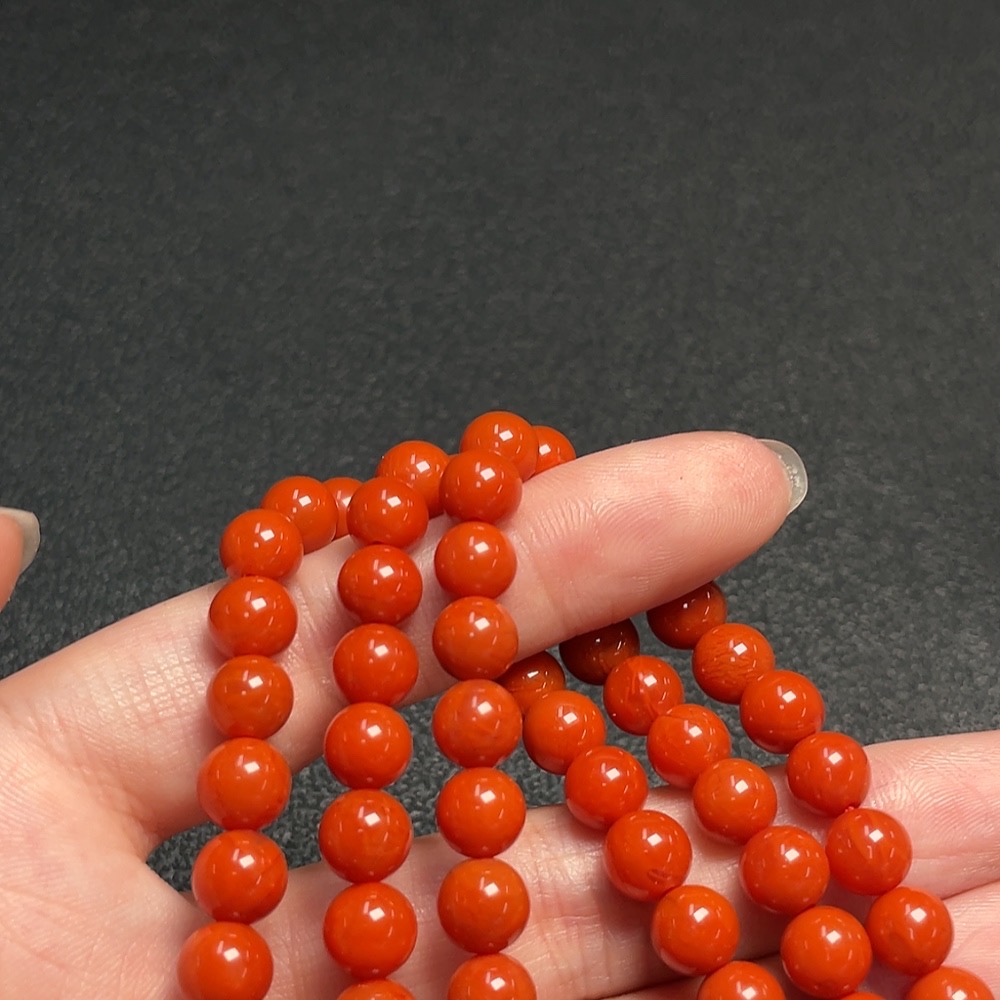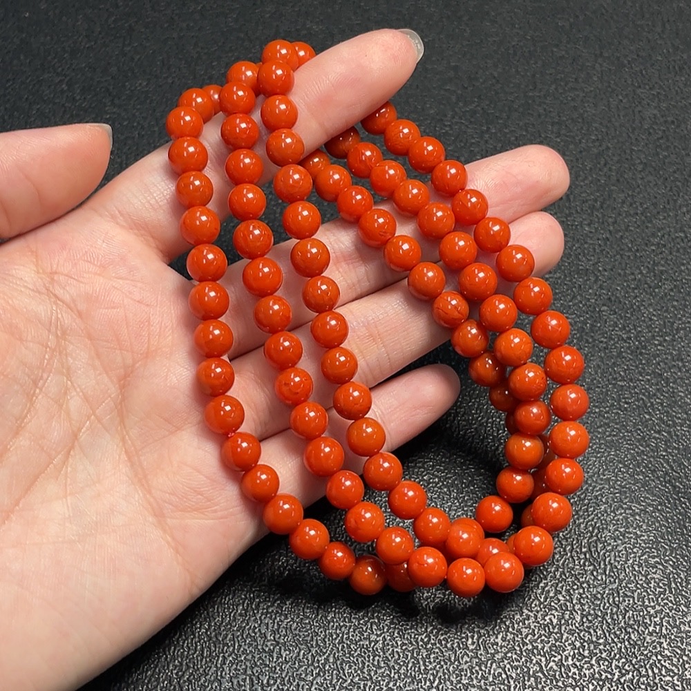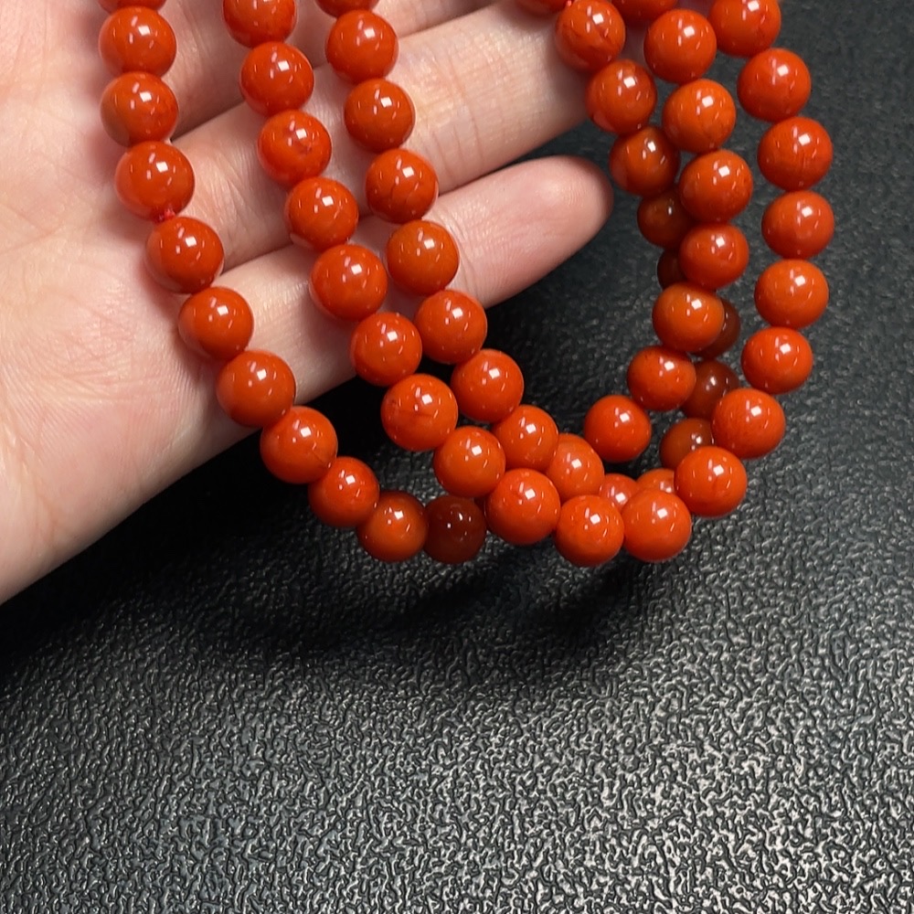 South Red Agate Bead Necklace with Visible Organic Matter, Total Weight Approx. 54.2g, Size About 7.3mm