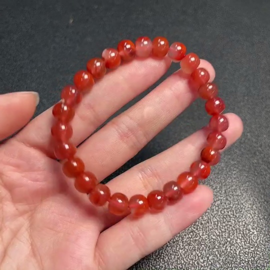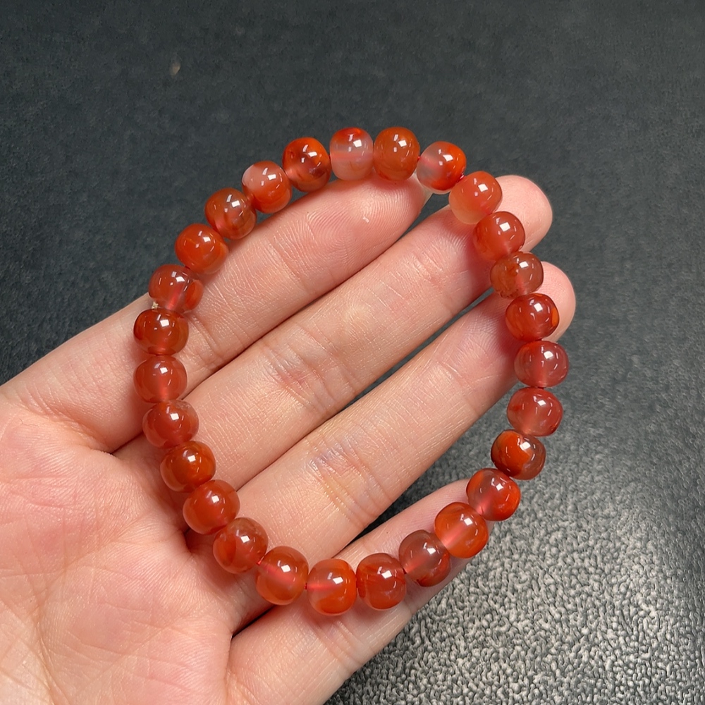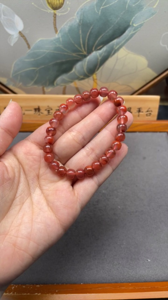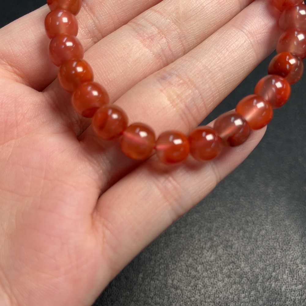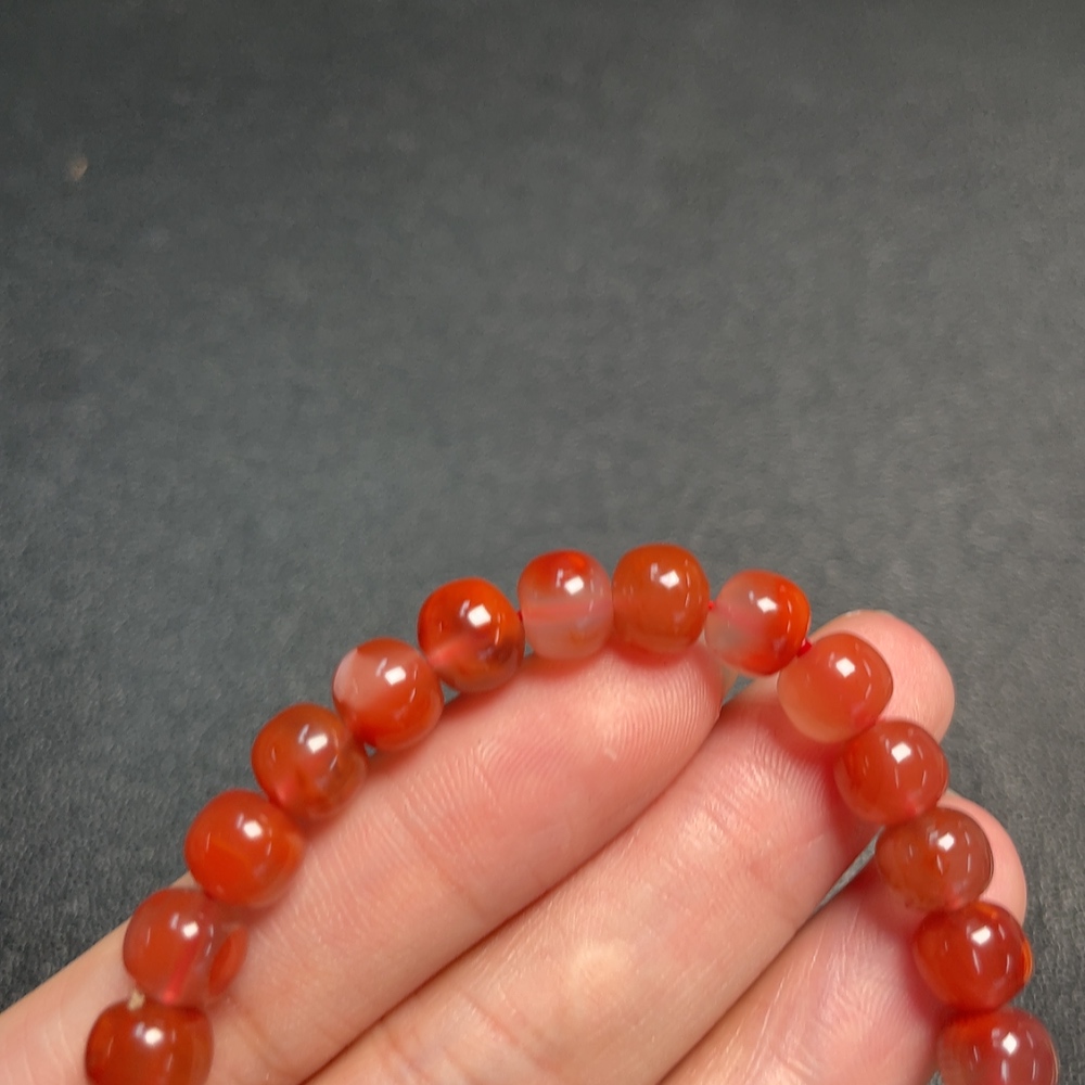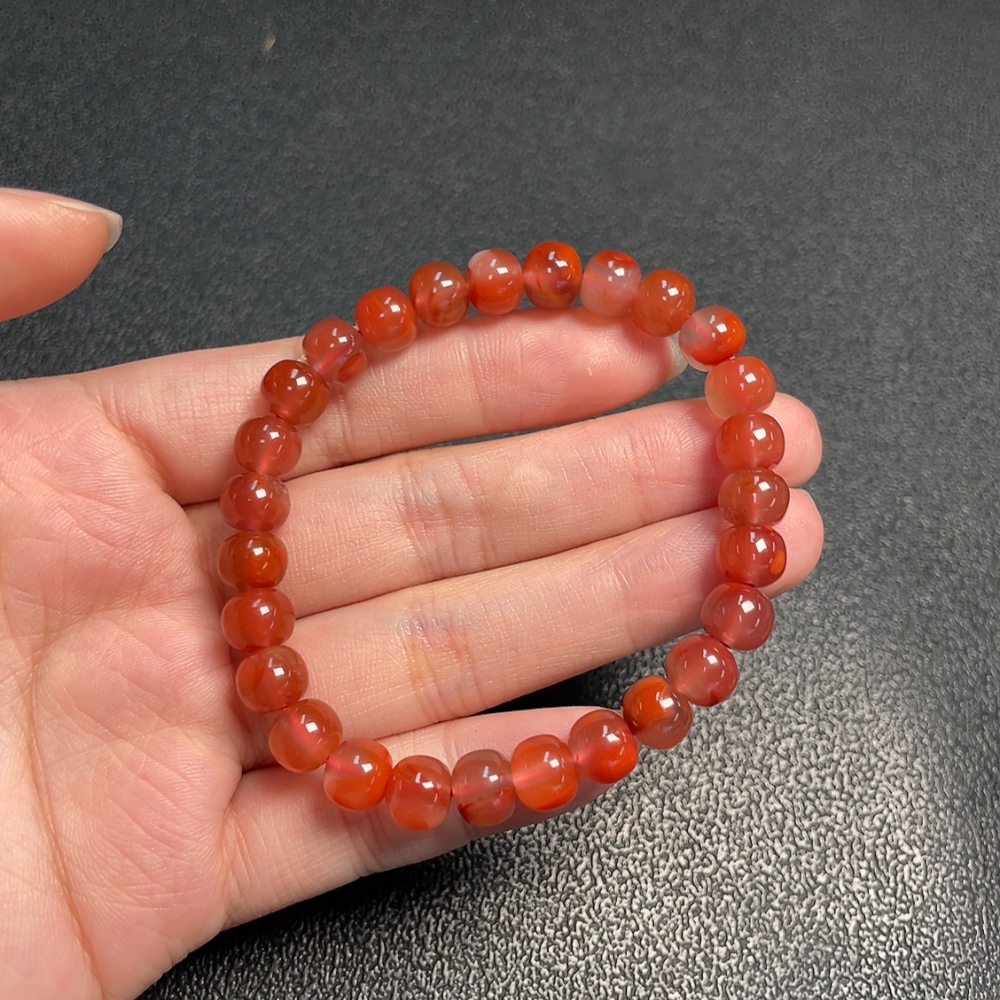 Red Agate Bracelet with Visible Organic Matter, Total Weight Approx. 15.96g, Size About 7.4mm