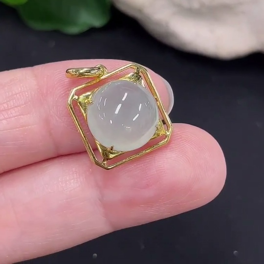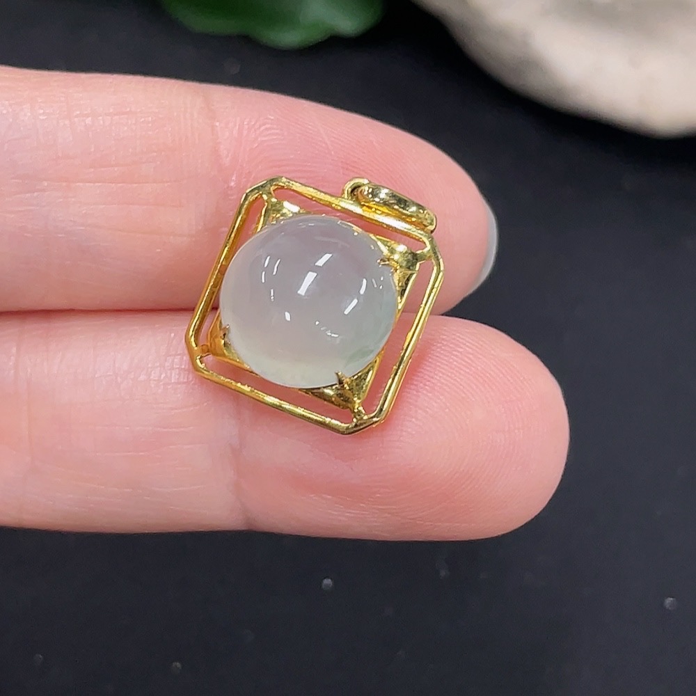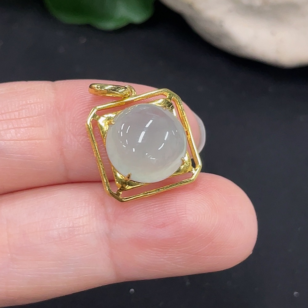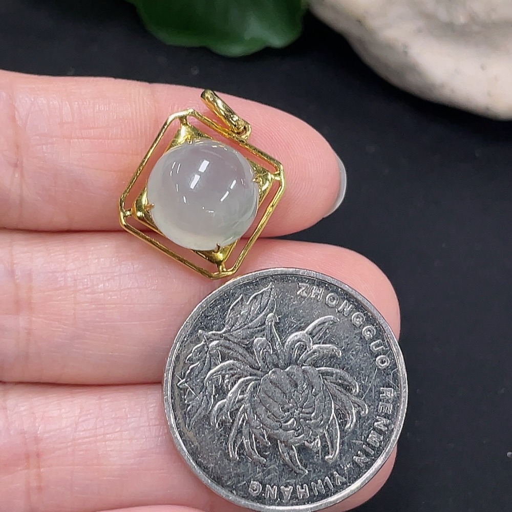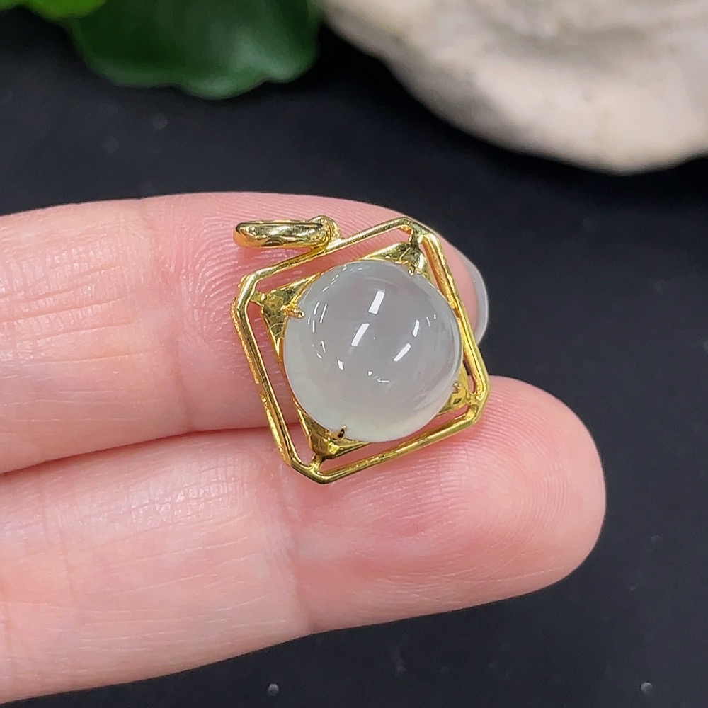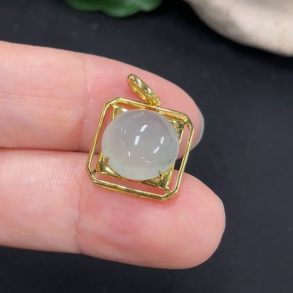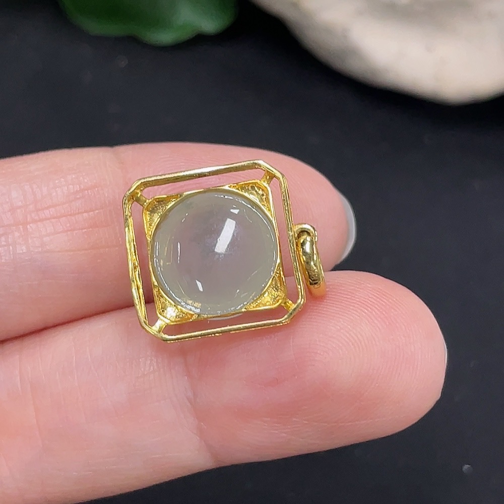Jadeite Inlaid Pendant 18K Gold Total Weight Approx. 1.9g