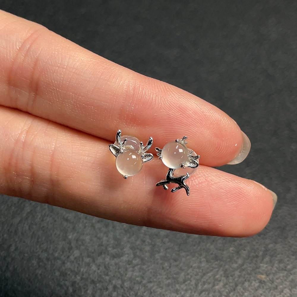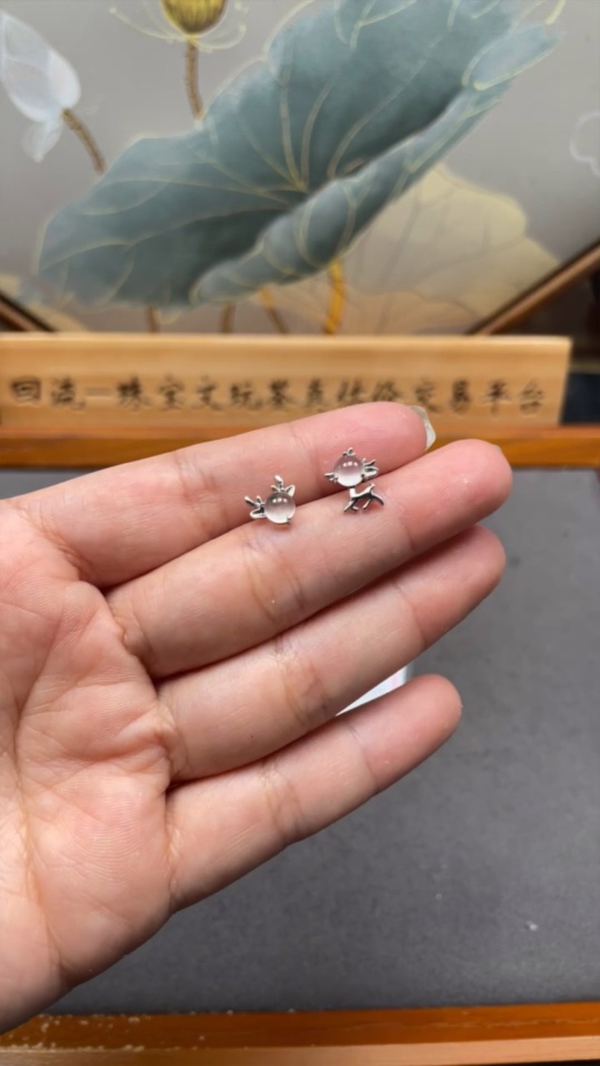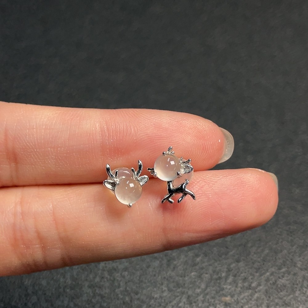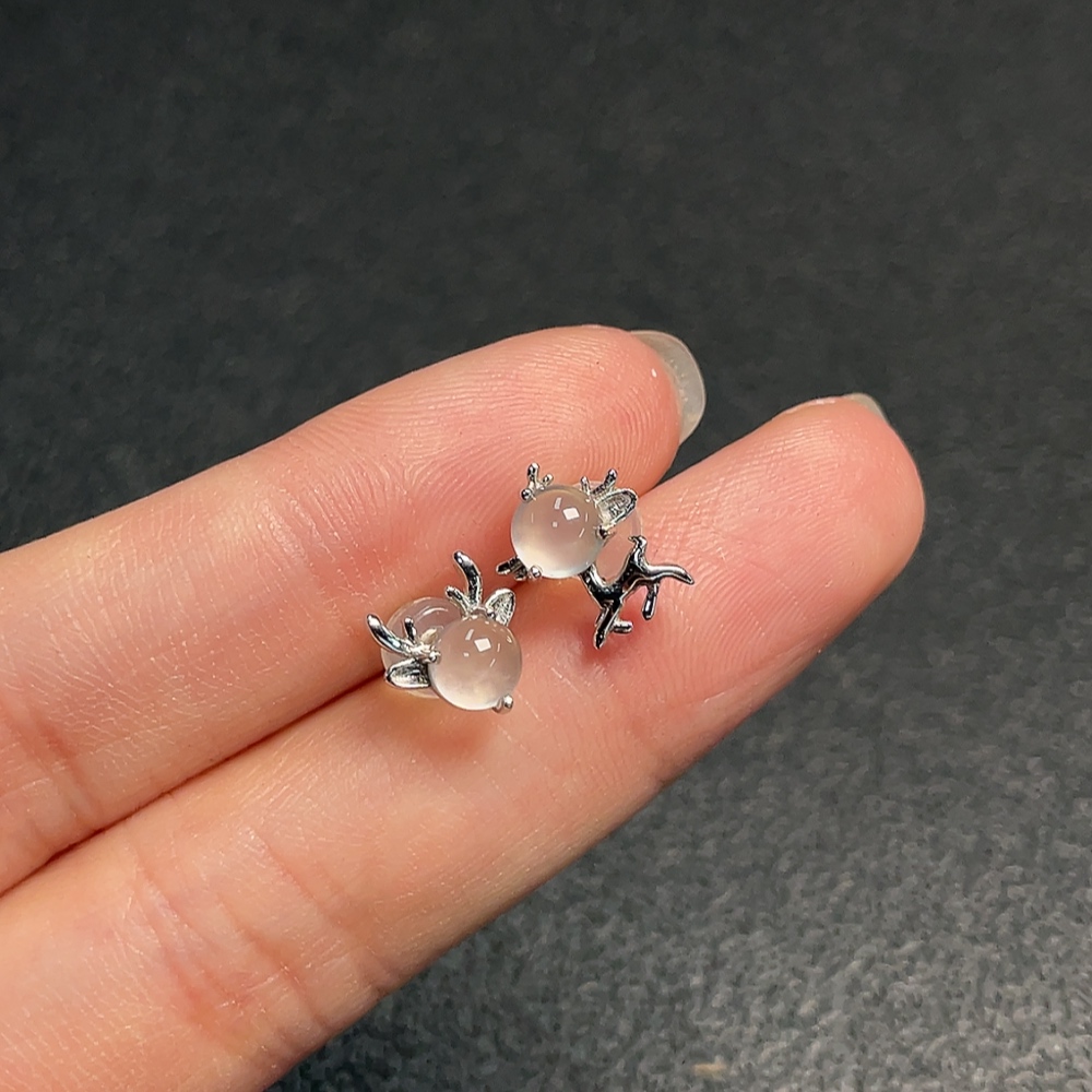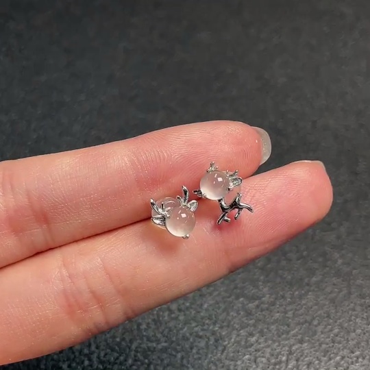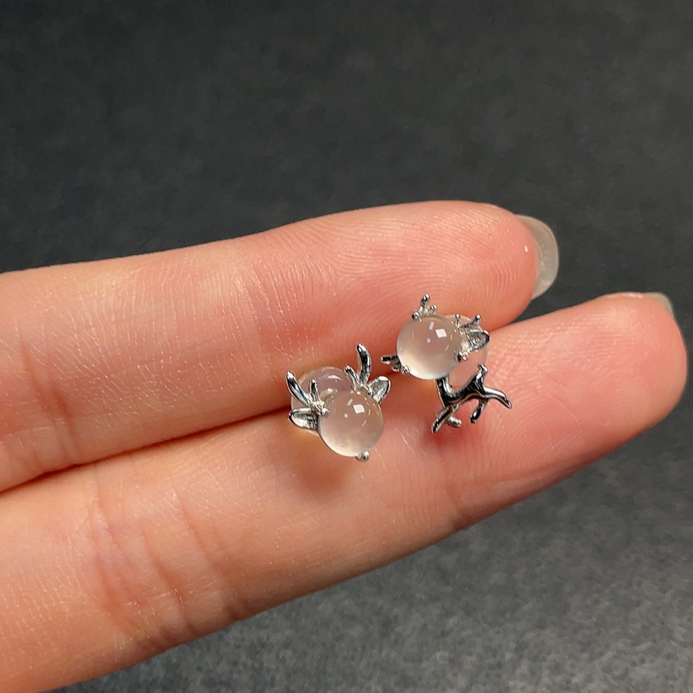18K Quartz Jade Earrings, Total Weight Approx. 1.19g