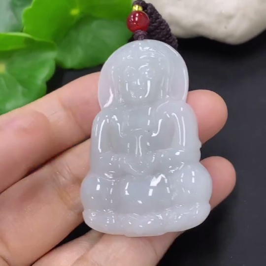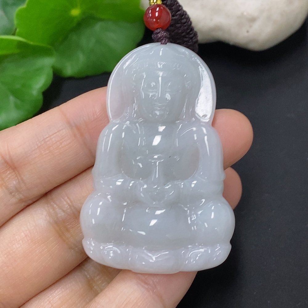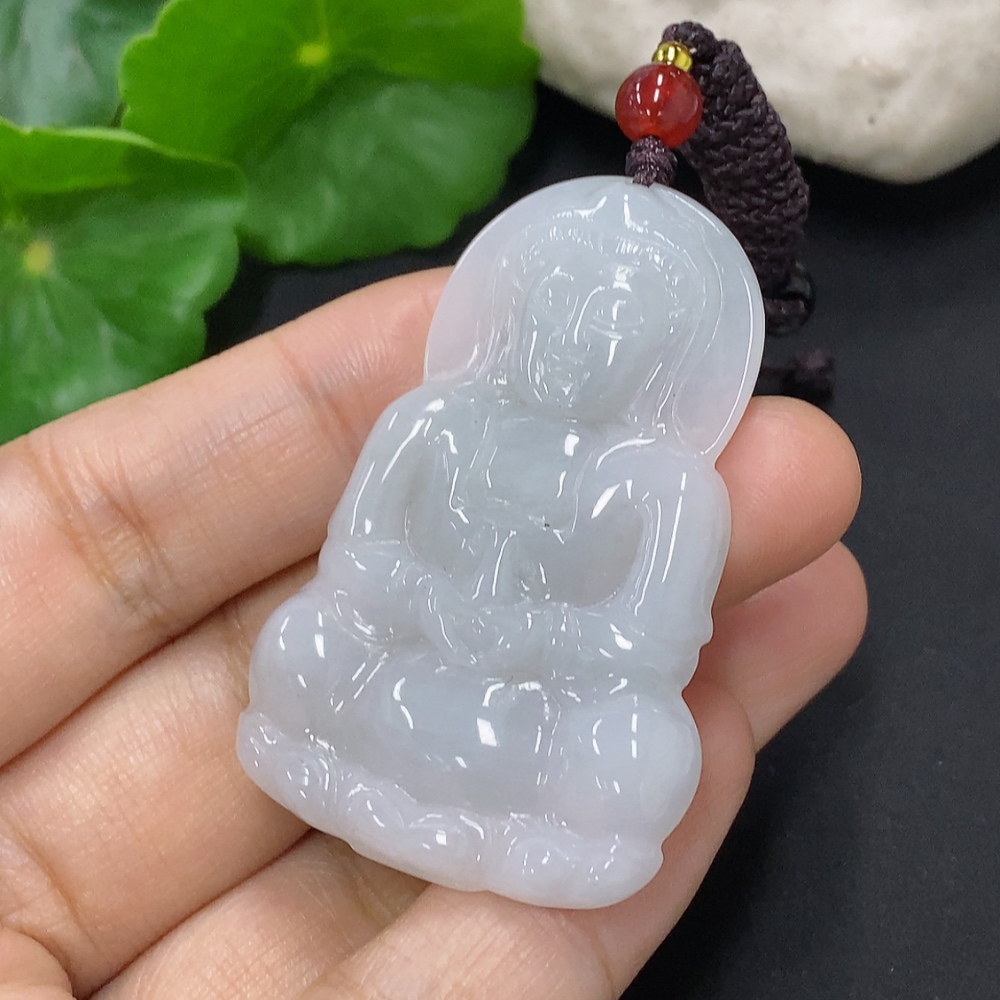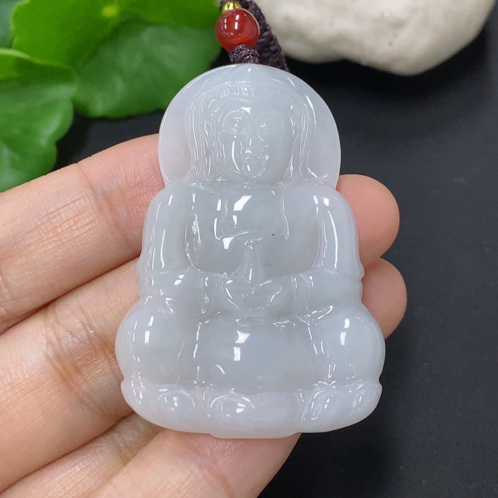 Jadeite Guanyin Pendant with a total weight of approximately 15.7 grams including the cord