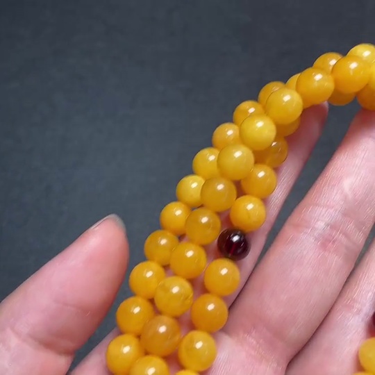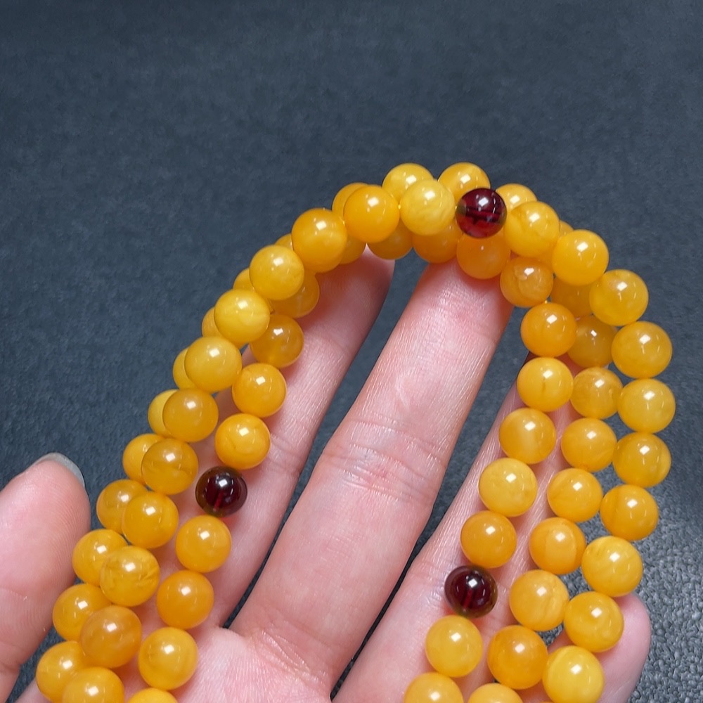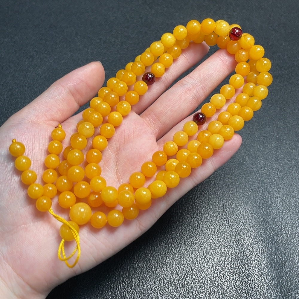 Amber Beeswax Beaded Necklace Total Weight Approx. 31.1g Size About 7.6mm
