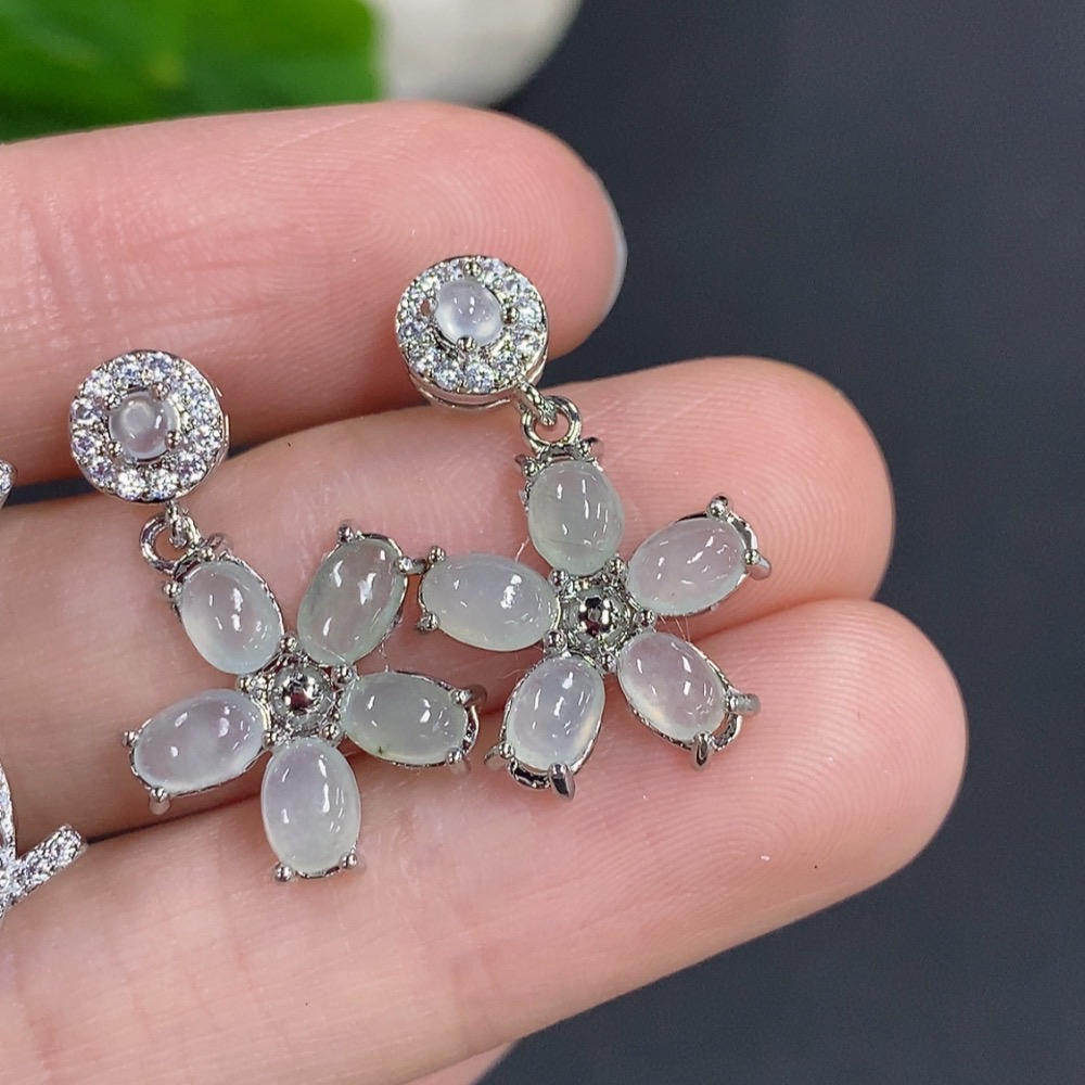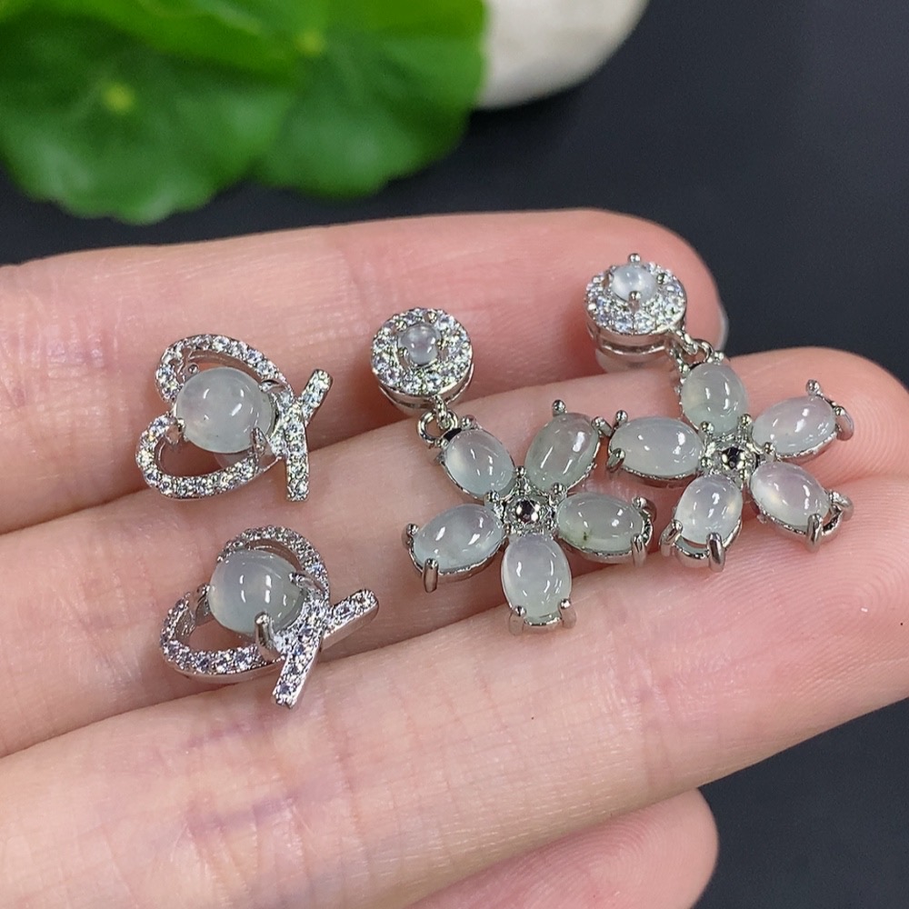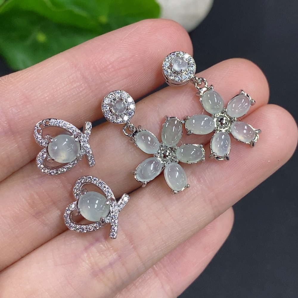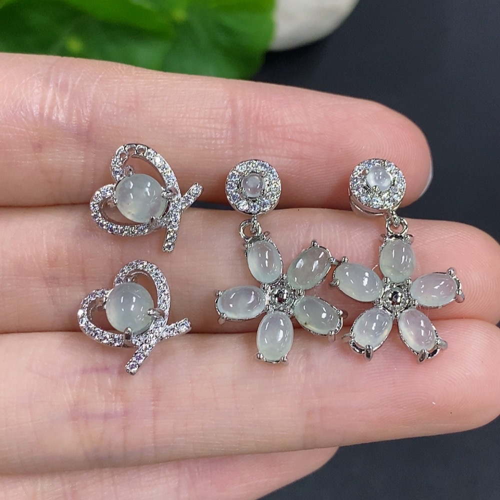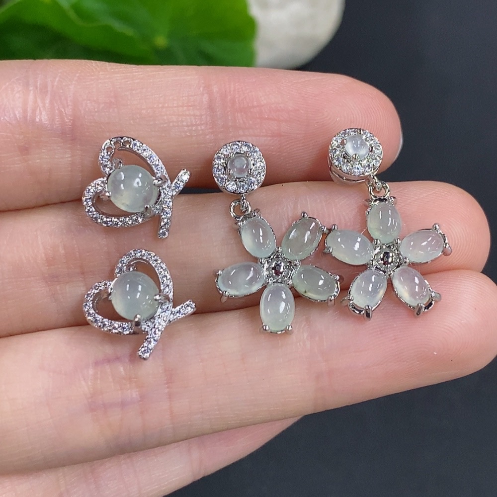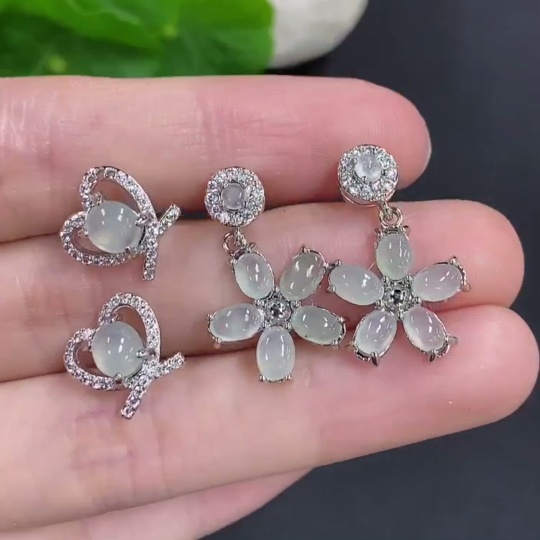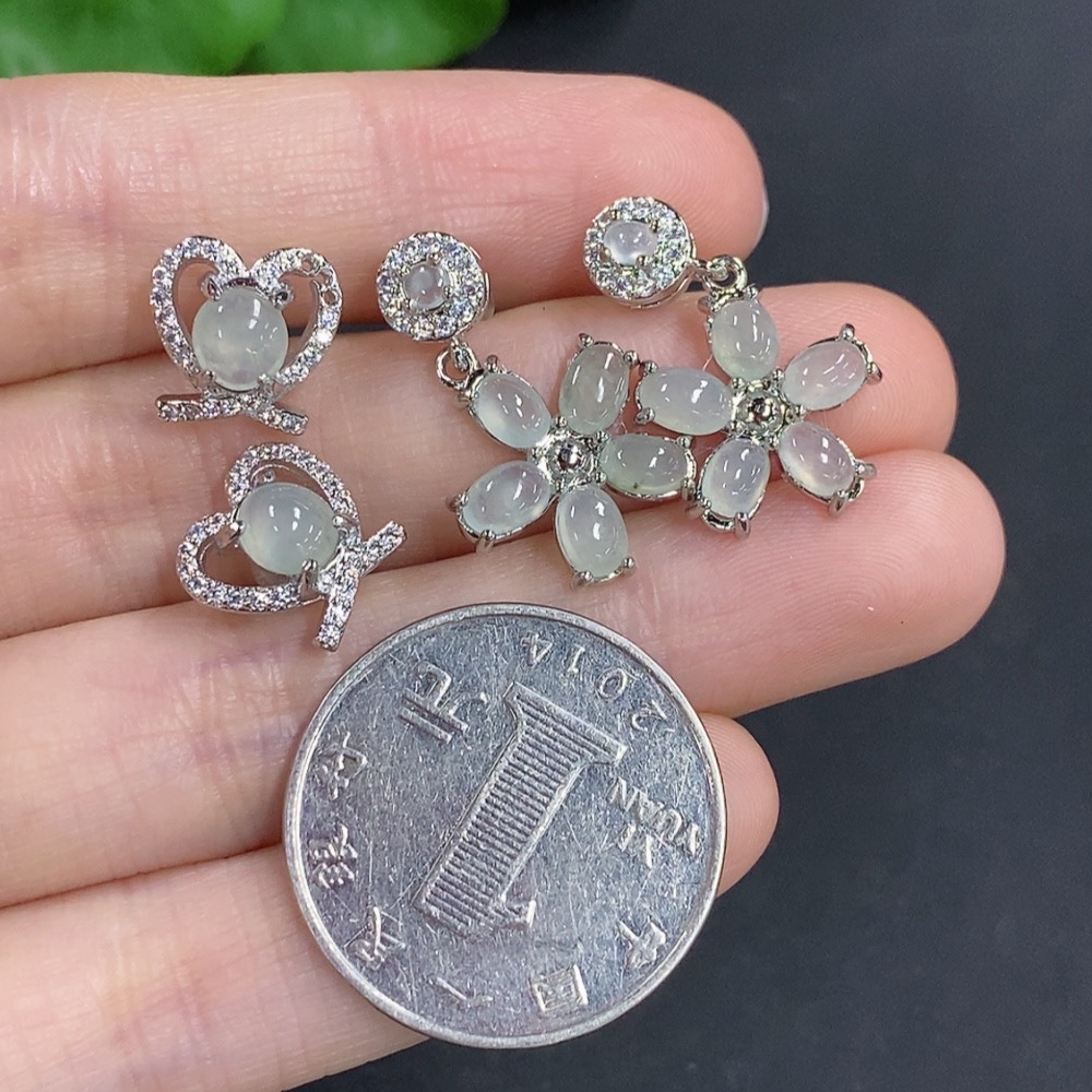 Jadeite Cabochon Stud Earrings Sell as a Lot Non-Gold Setting