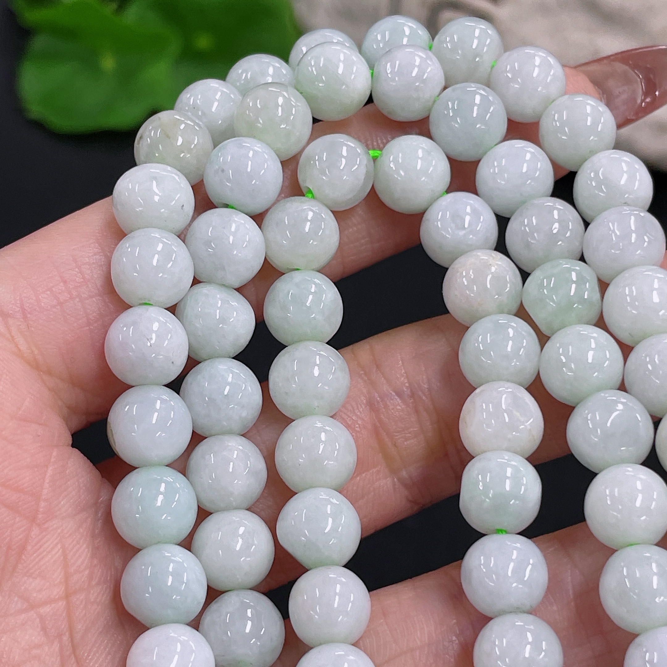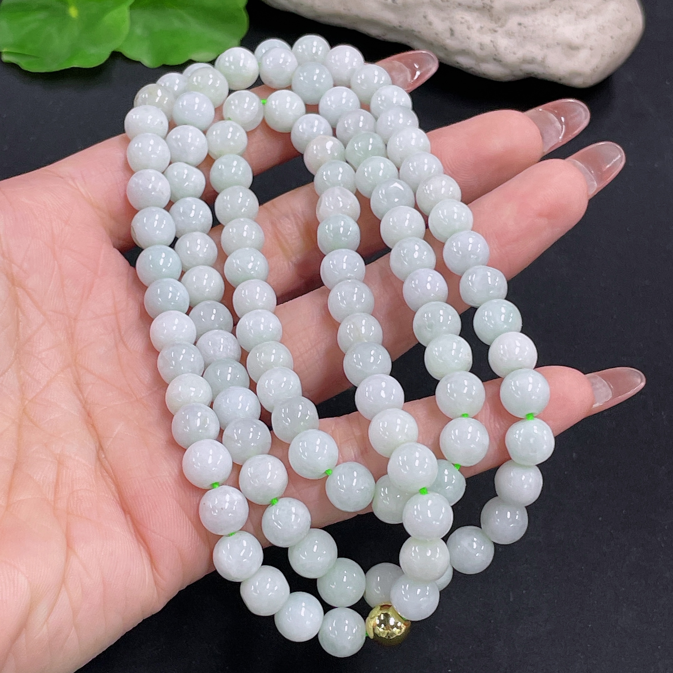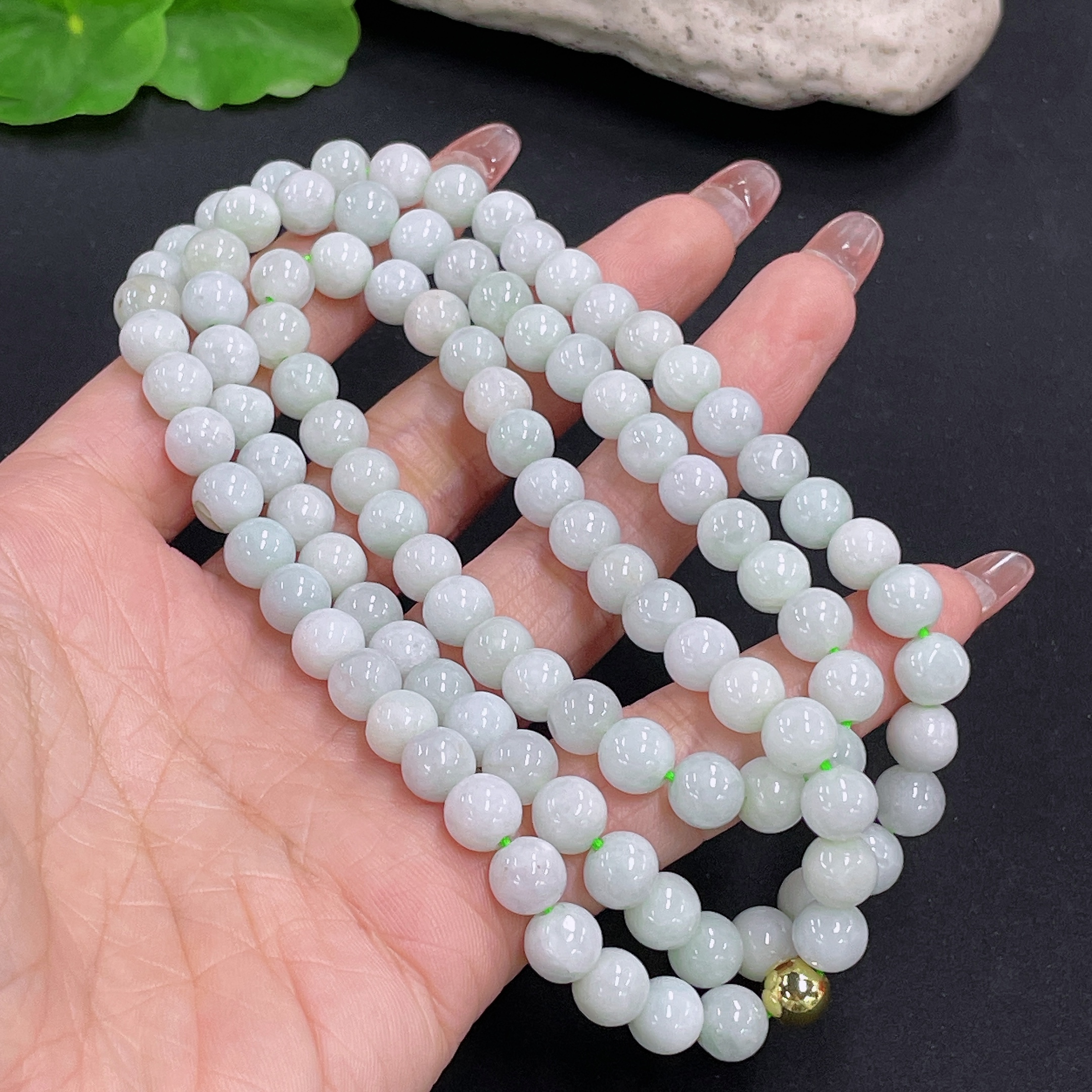 Jadeite Bead Necklace Non-Gold Total Weight Approx. 74.5g Size About 7.3mm