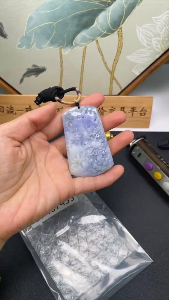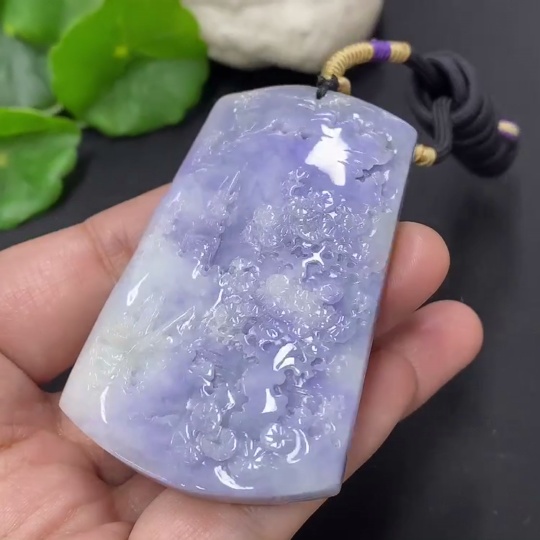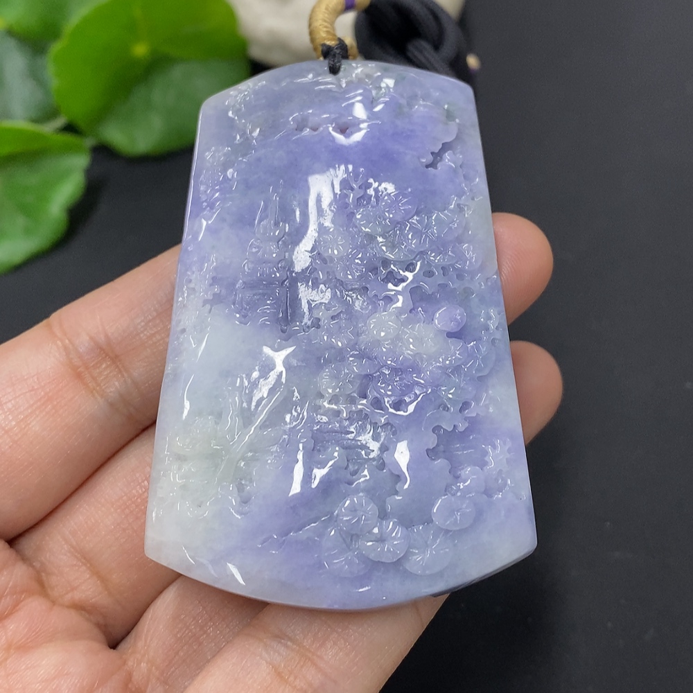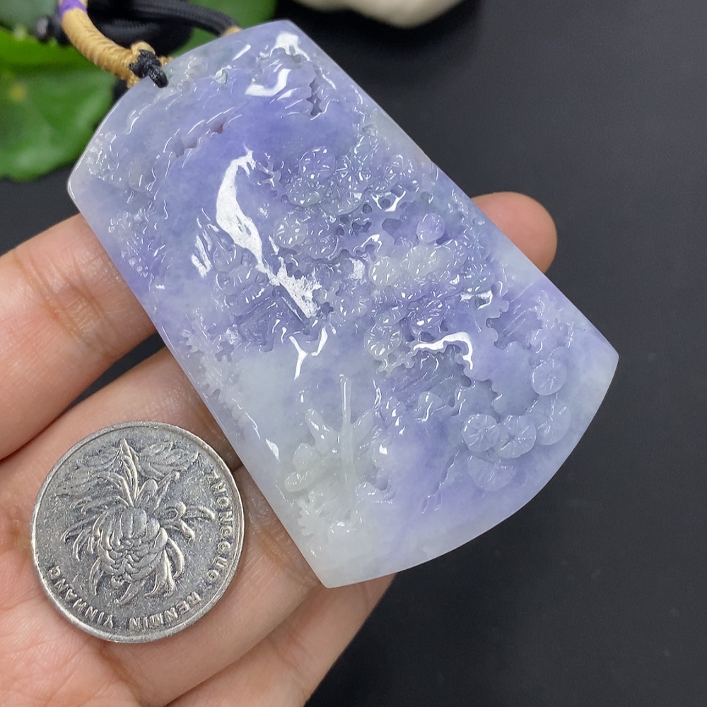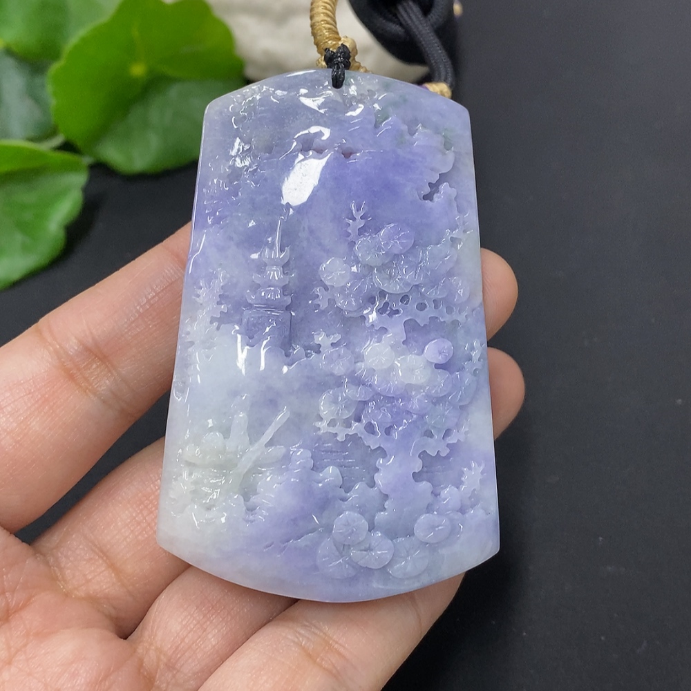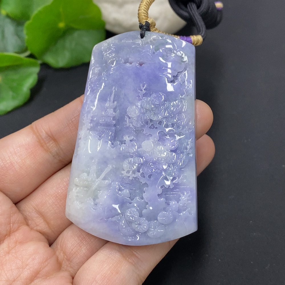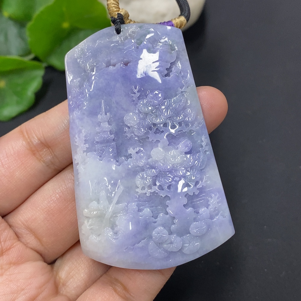 Jadeite Landscape Pendant with Cord, Total Weight Approximately 57.7g