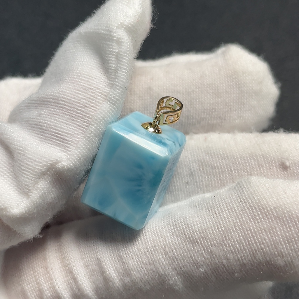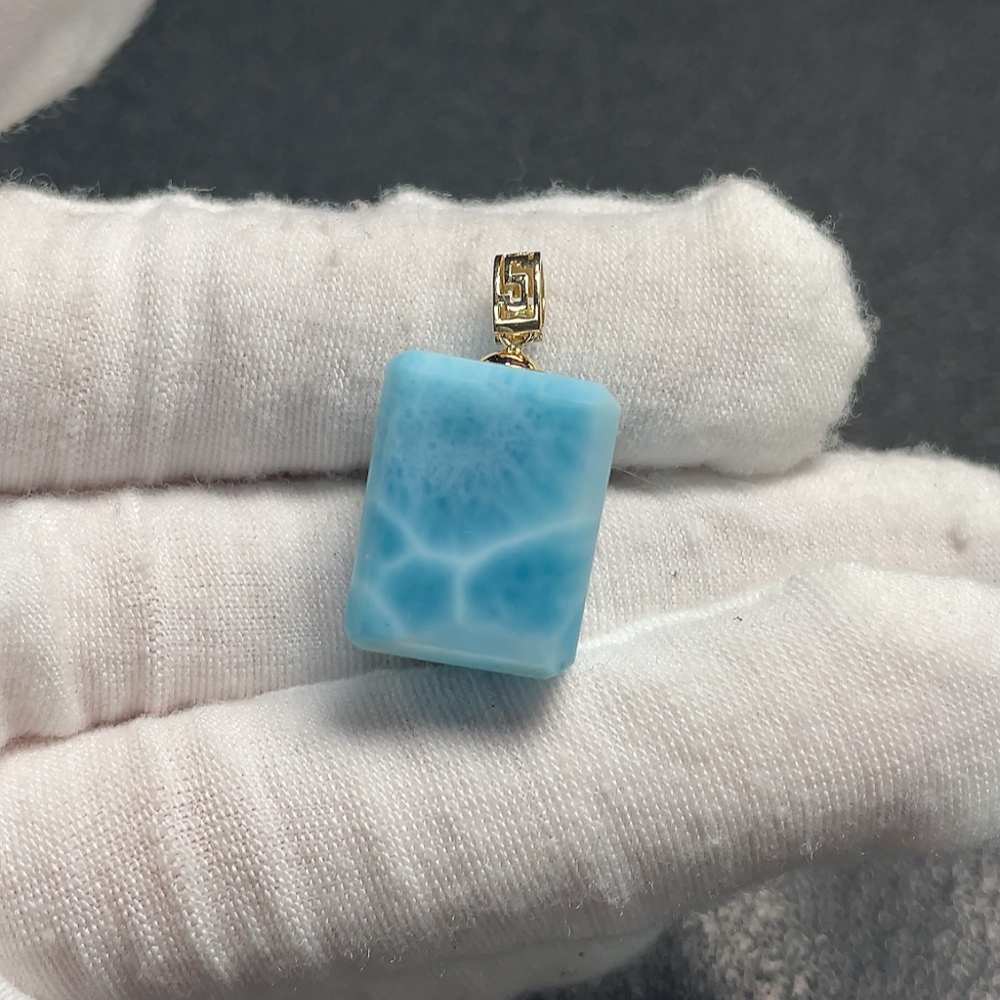 18K Larimar Pendant with Visible Organic Matter, Total Weight Approx. 9.06g