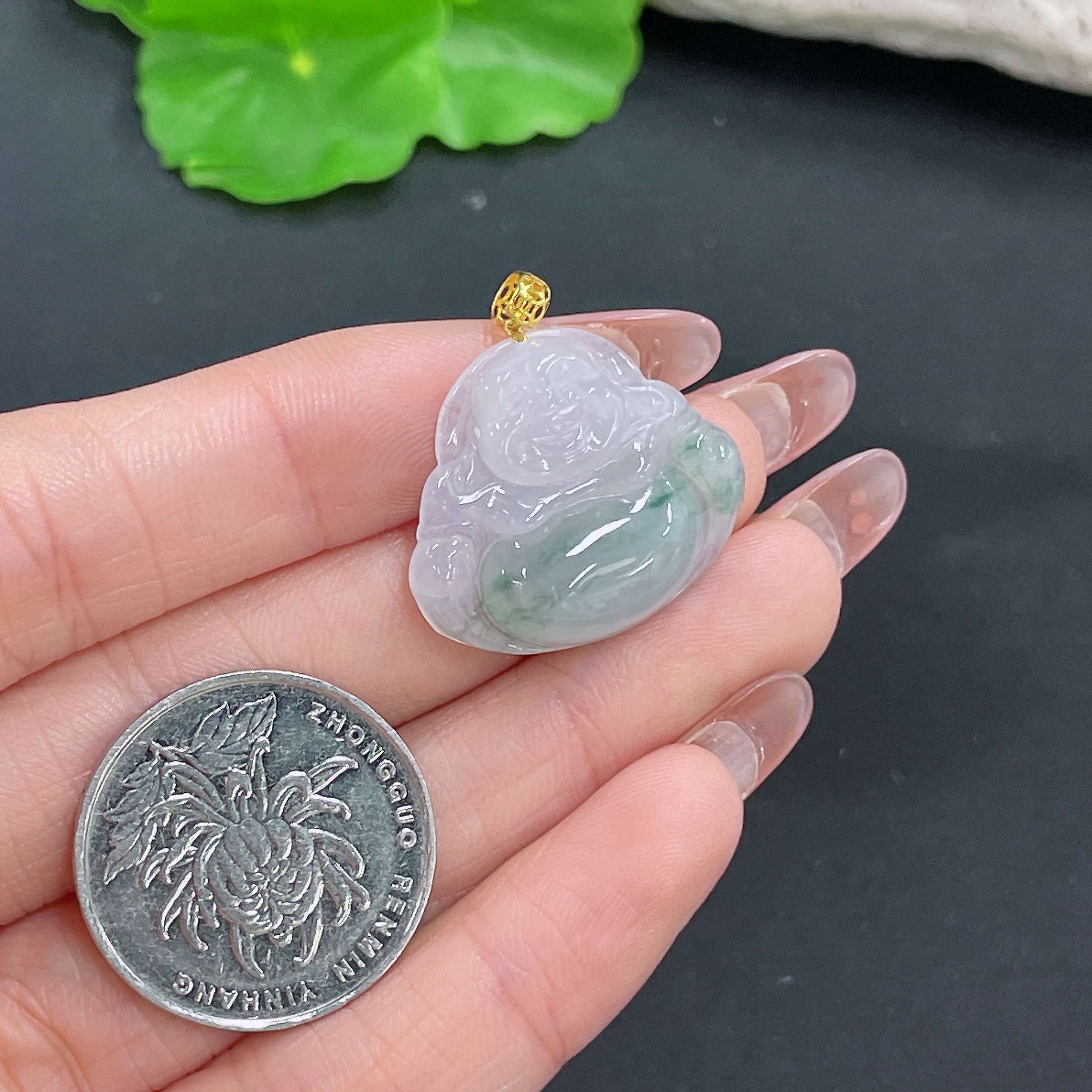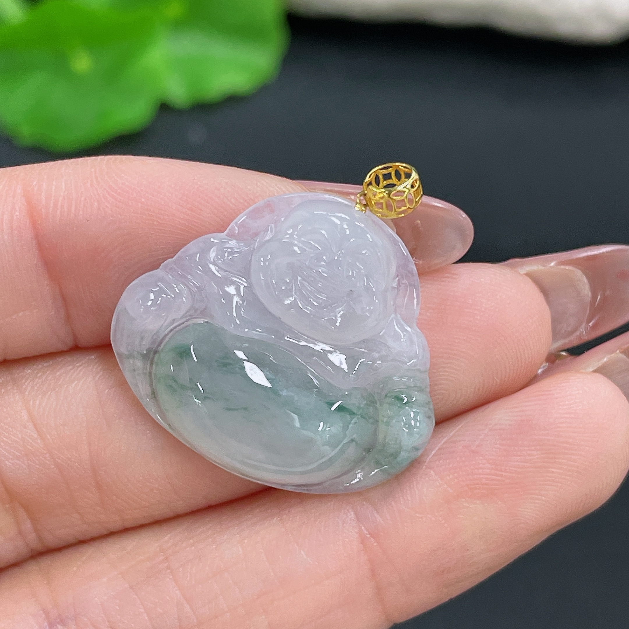 Jadeite Pendant with 18k Clasp, Total Weight Approx. 4.7g