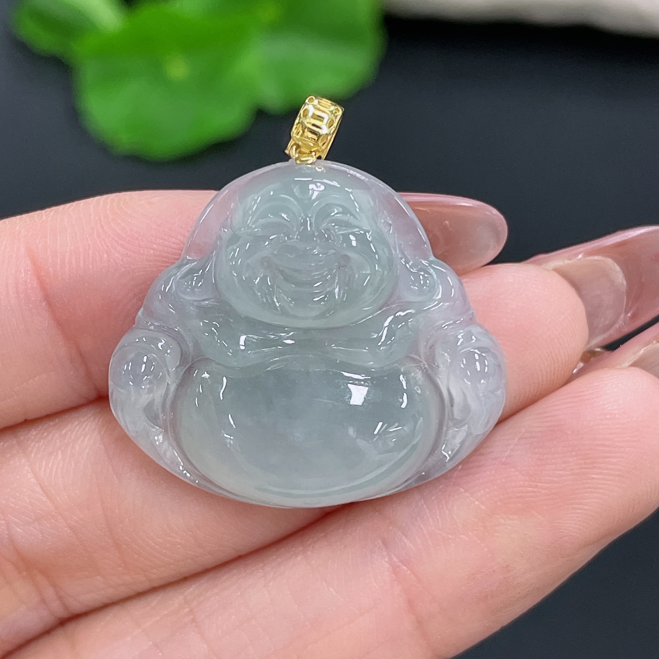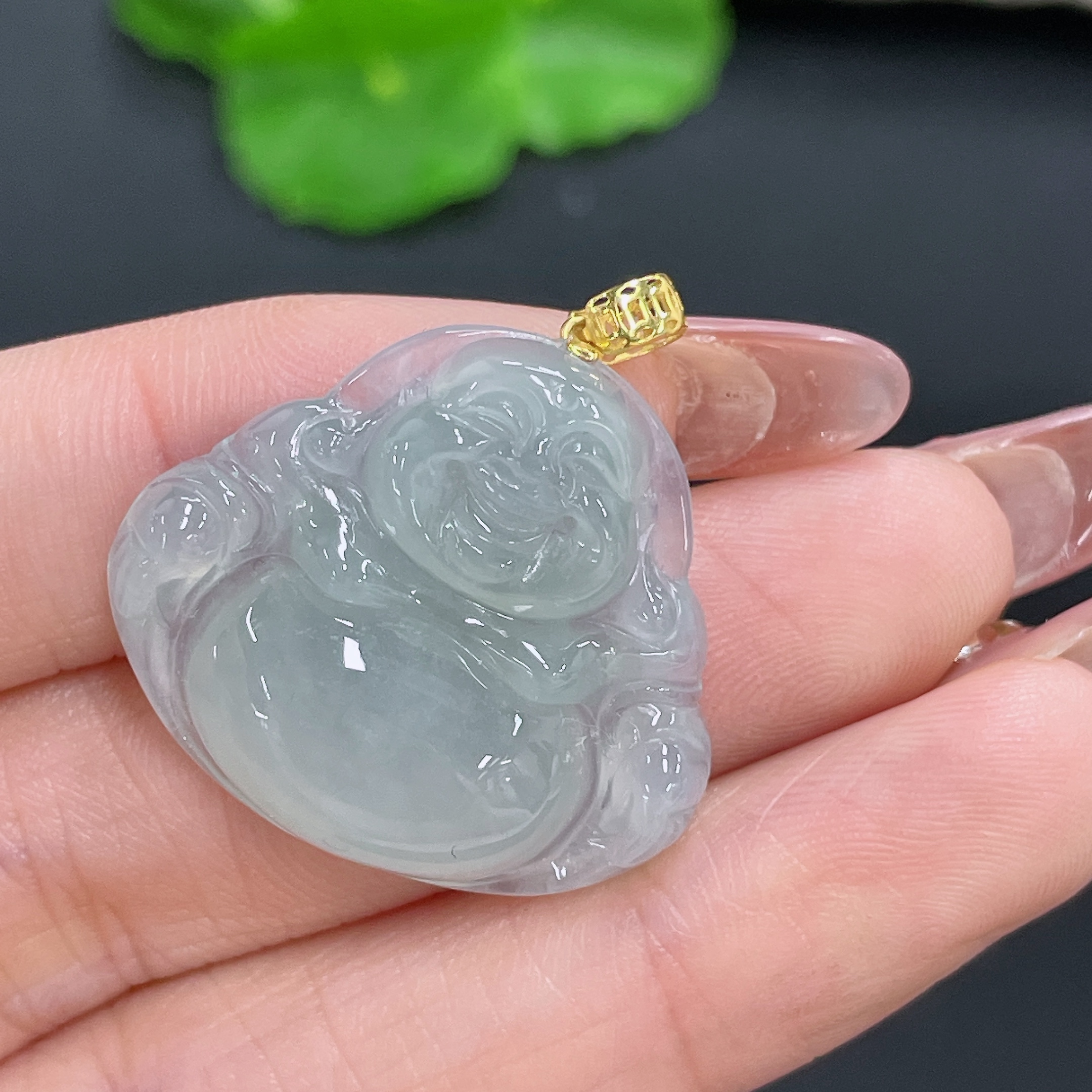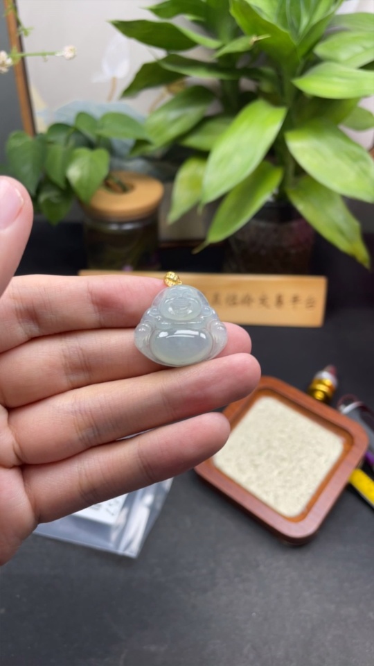 Jadeite Pendant Buddha Bezel 18k Total Weight Approx. 5.94g