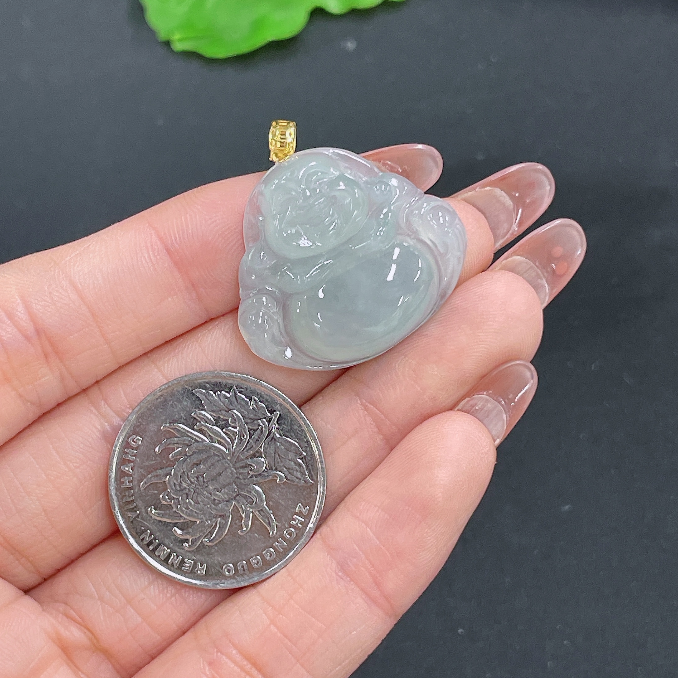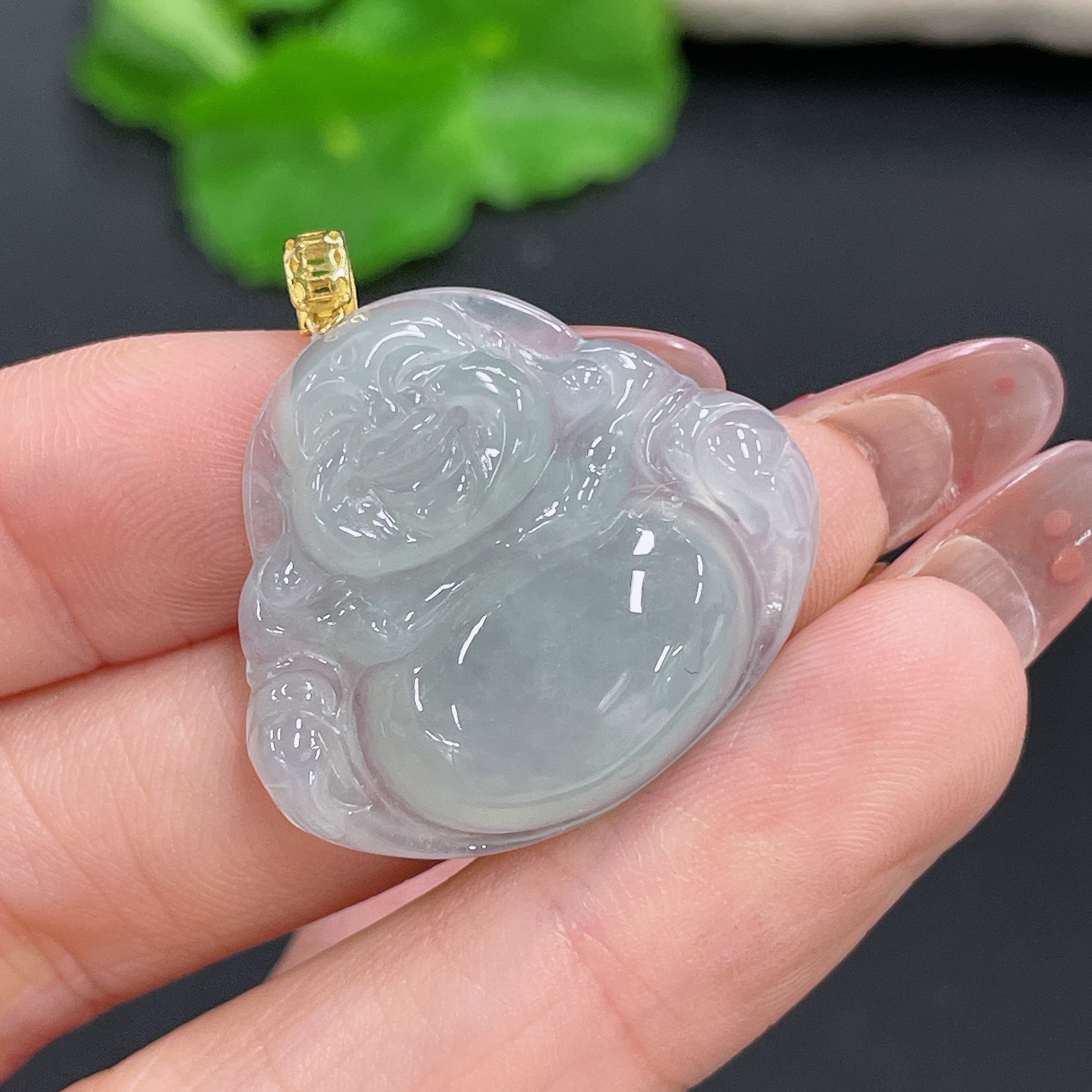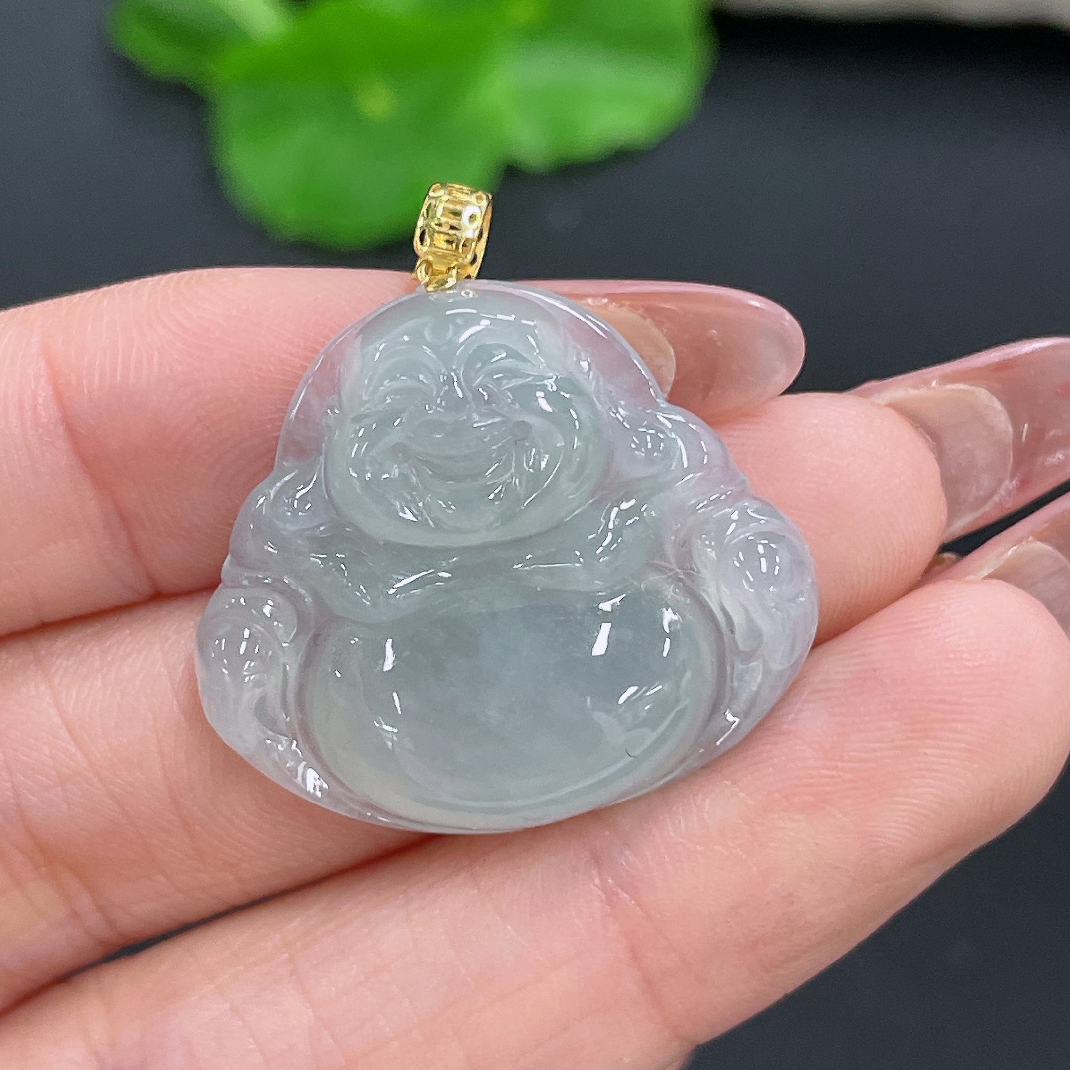Jadeite Pendant Buddha Bezel 18k Total Weight Approx. 5.94g