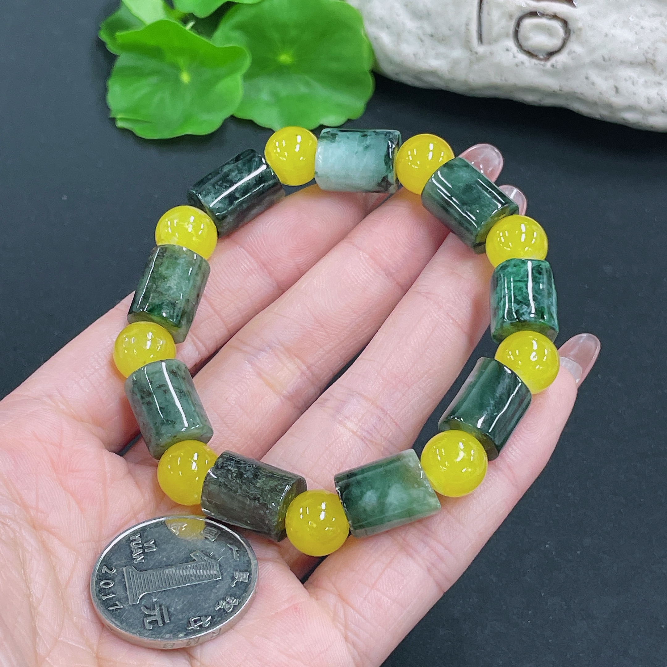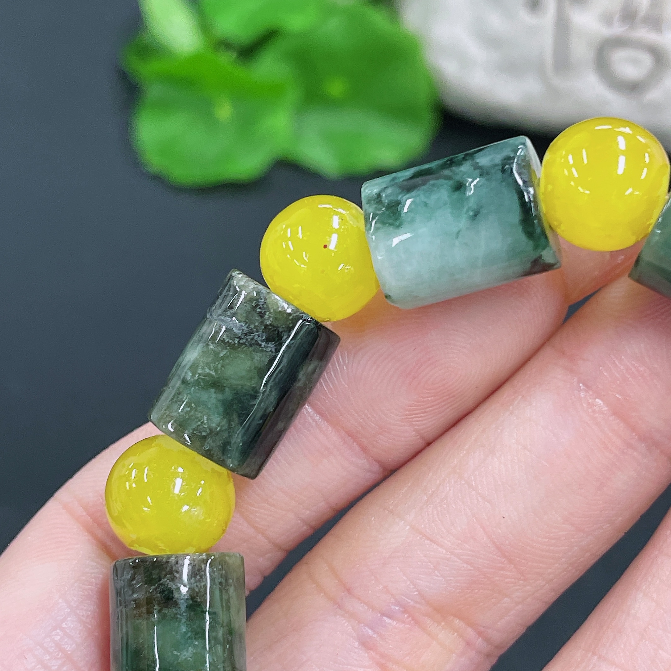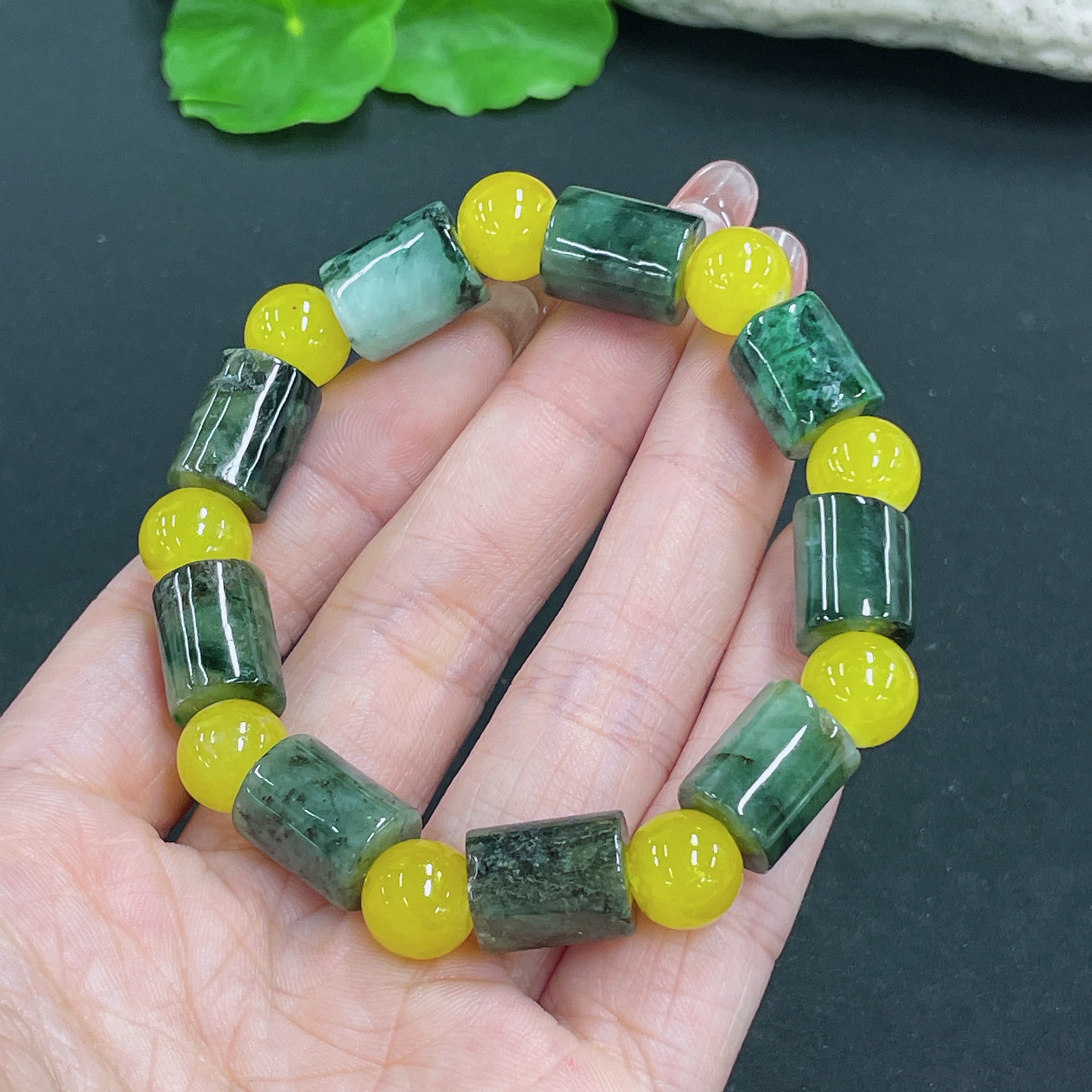 Jadeite bracelet with non-A grade beads, containing other mineral components, total weight approximately 40.4g, size about 10.7mm