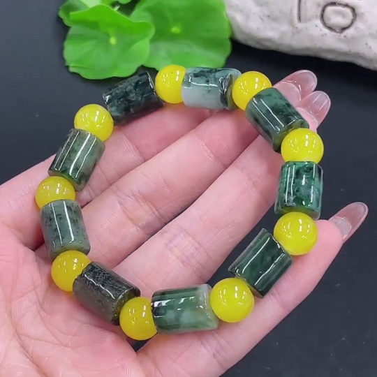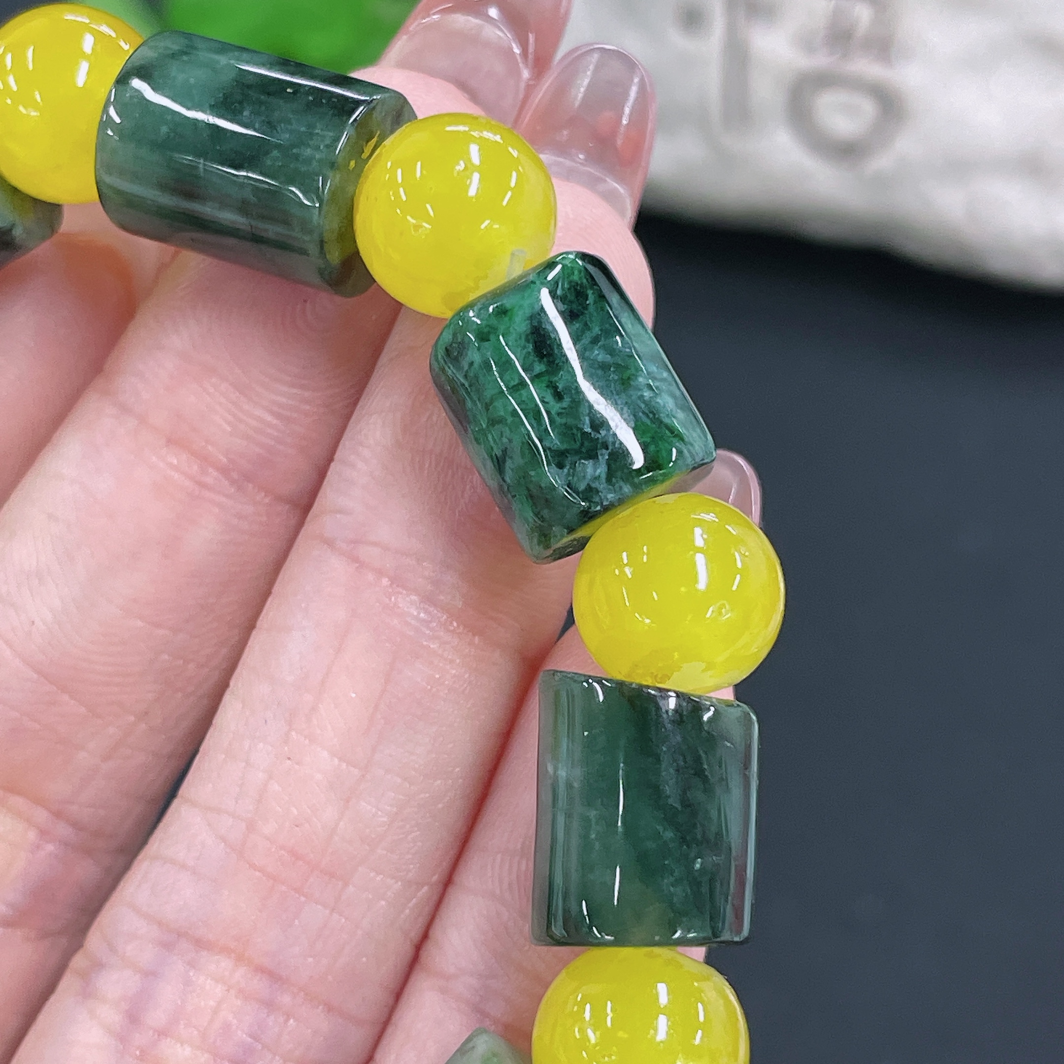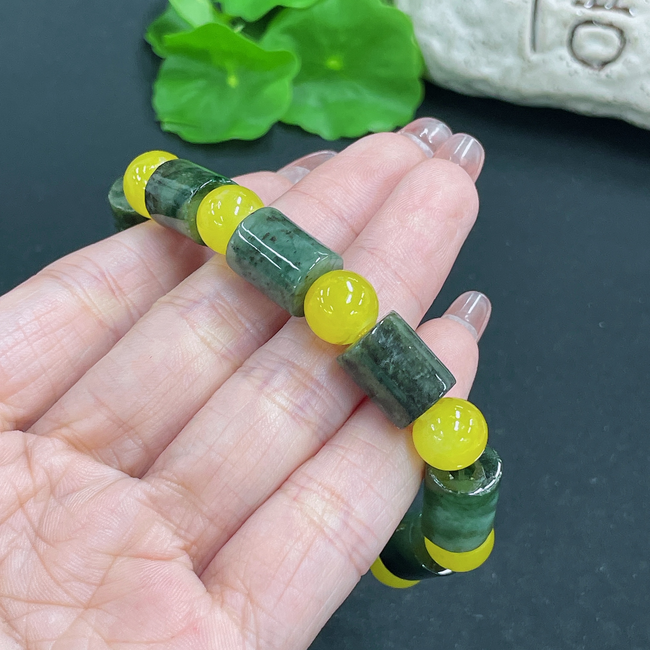 Jadeite bracelet with non-A grade beads, containing other mineral components, total weight approximately 40.4g, size about 10.7mm