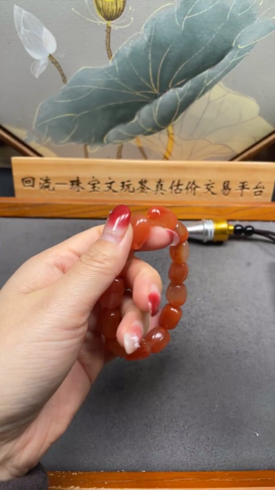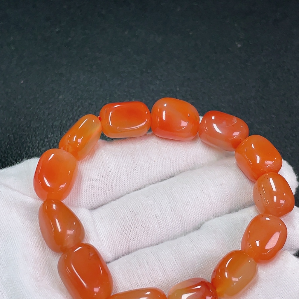 Red Agate Bracelet with Visible Organic Matter, Total Weight Approximately 42.04g, Size About 12.3mm