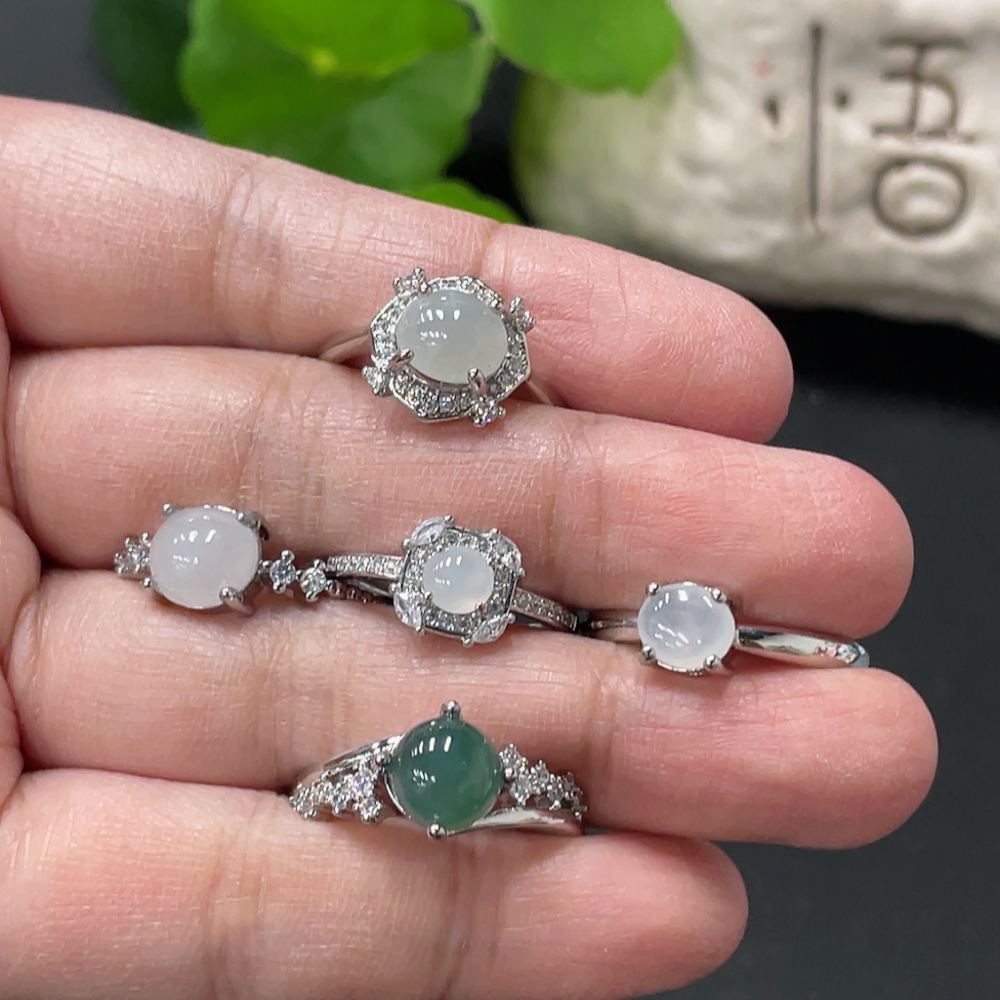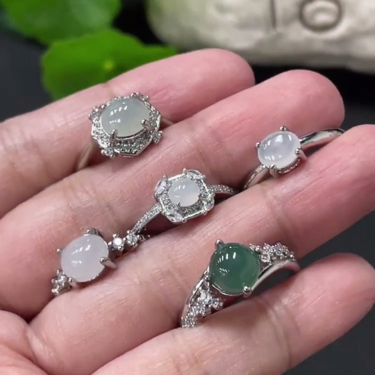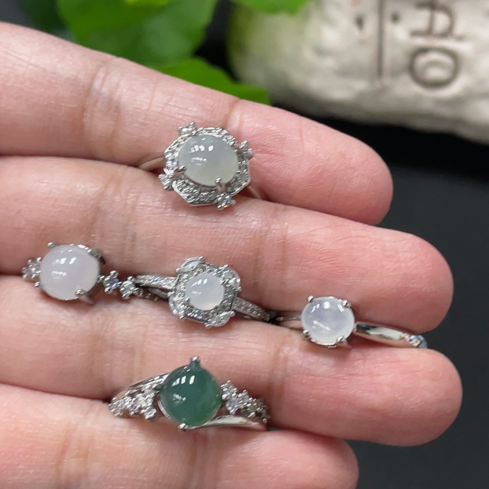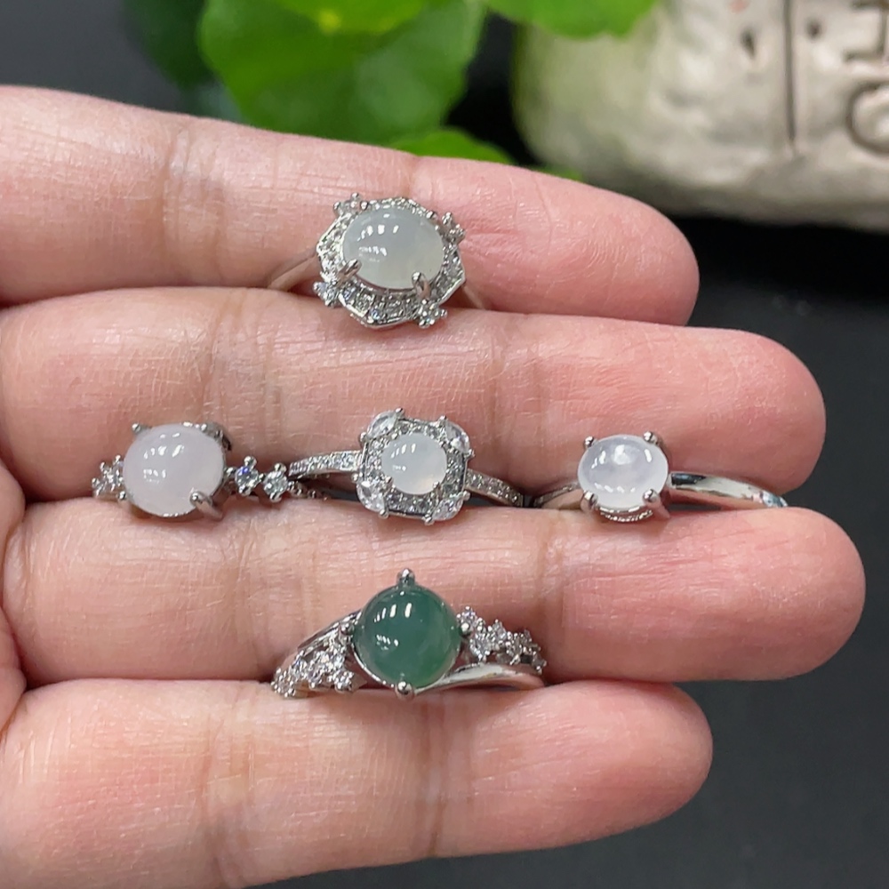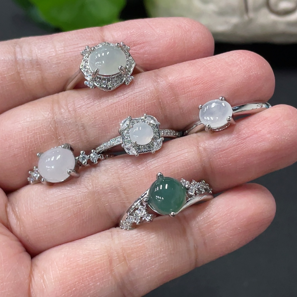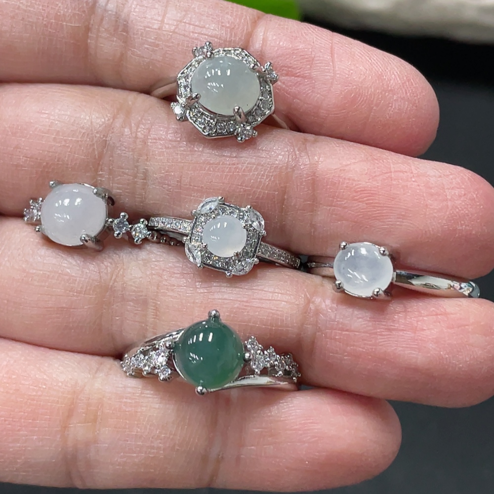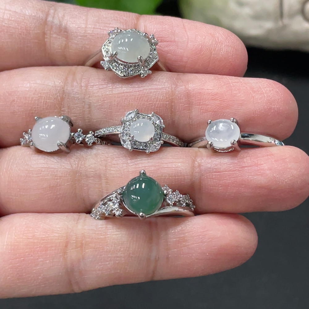 Jadeite Cabochon Ring Non-Gold Setting Adjustable Size