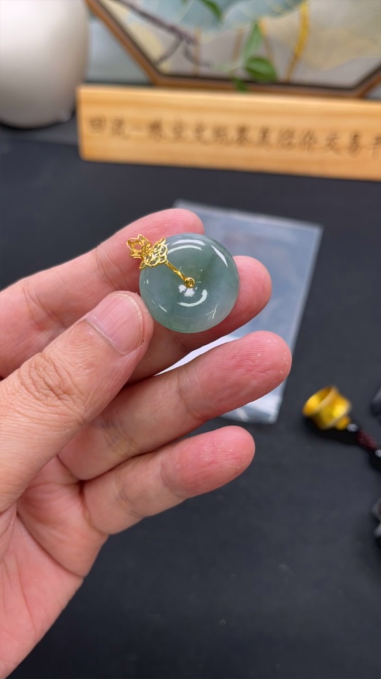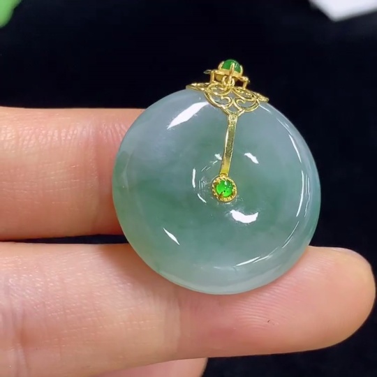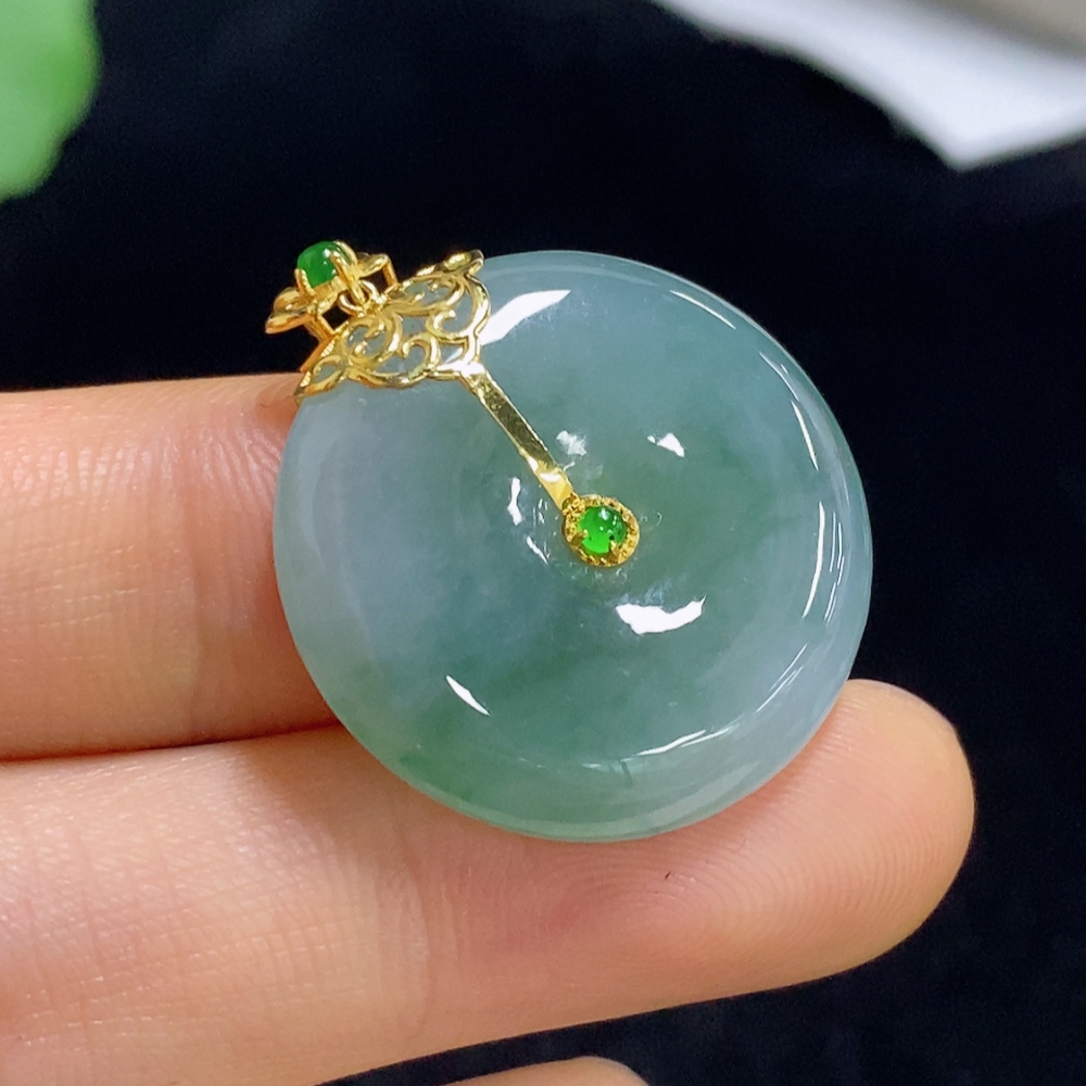 Jadeite Pendant with 18k Clasp, Total Weight Approximately 7.08g