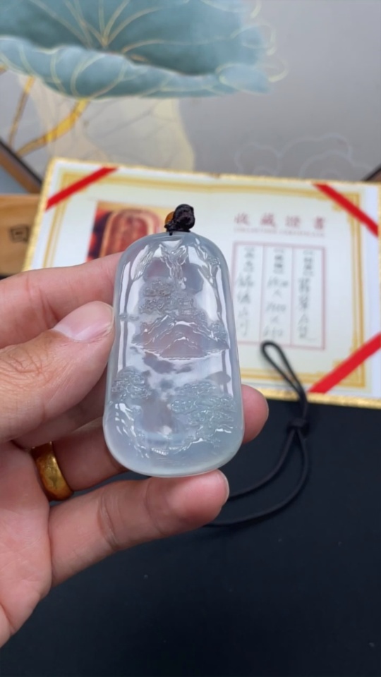 Jadeite Landscape Pendant Total Weight Approx. 34.9g With Collection Certificate