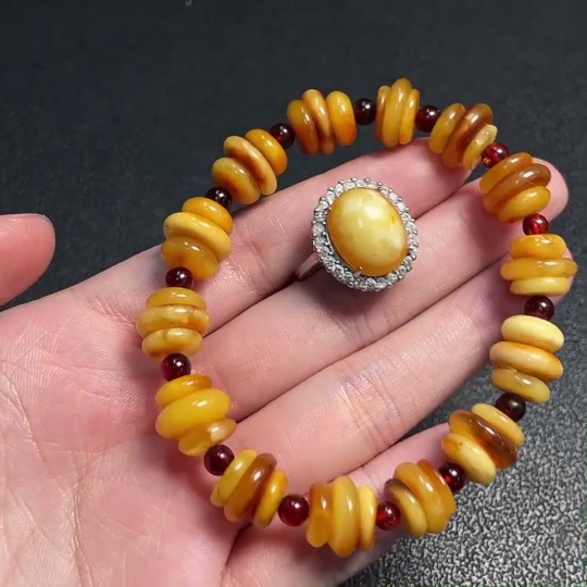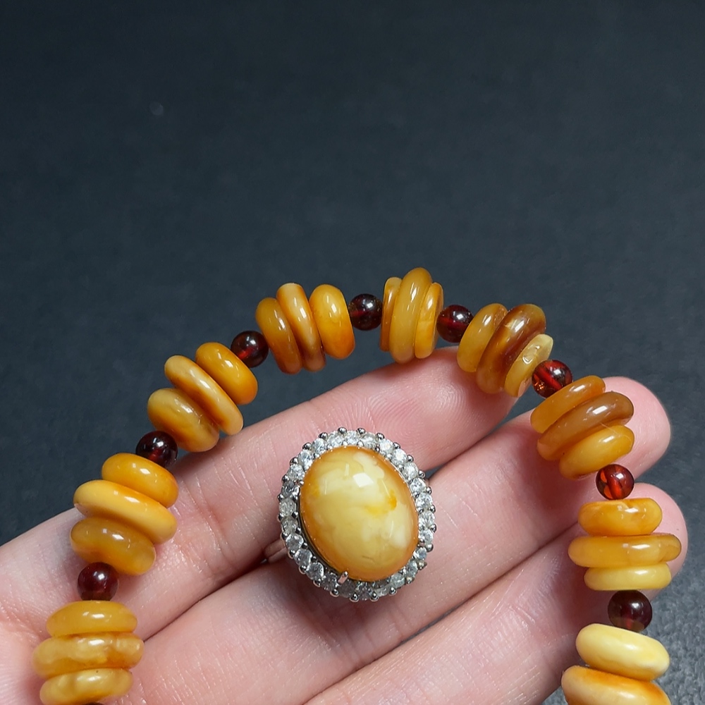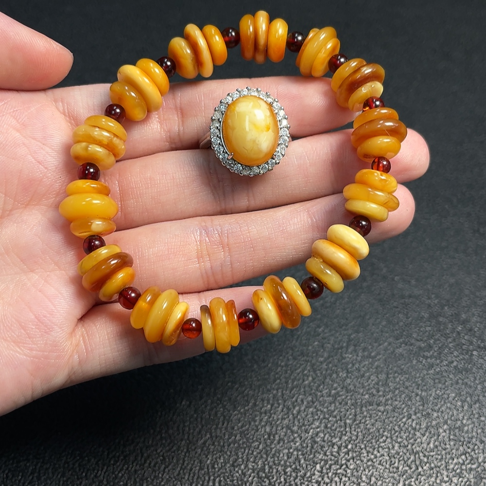 Amber Beeswax Bracelet + Ring Non-Gold Adjustable Total Weight Approx. 15.12g Sell as a Lot