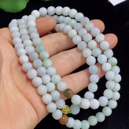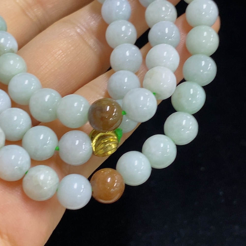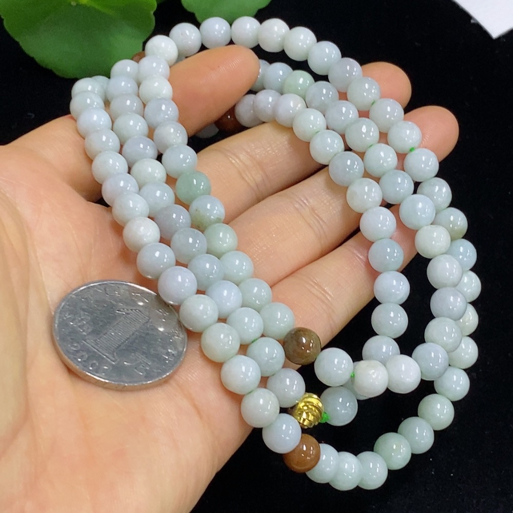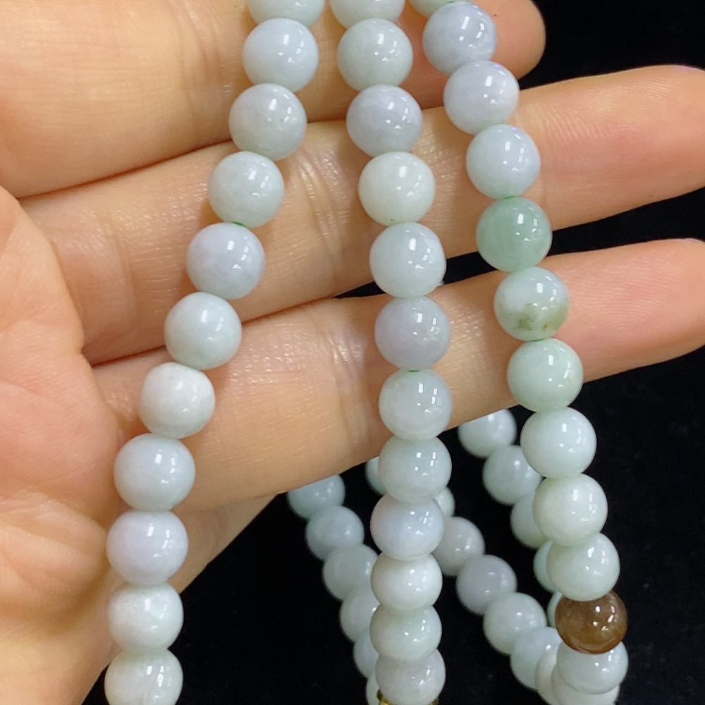 Jadeite Bead Necklace Approx. 7.4mm Non-Gold Total Weight Approx. 71.59g