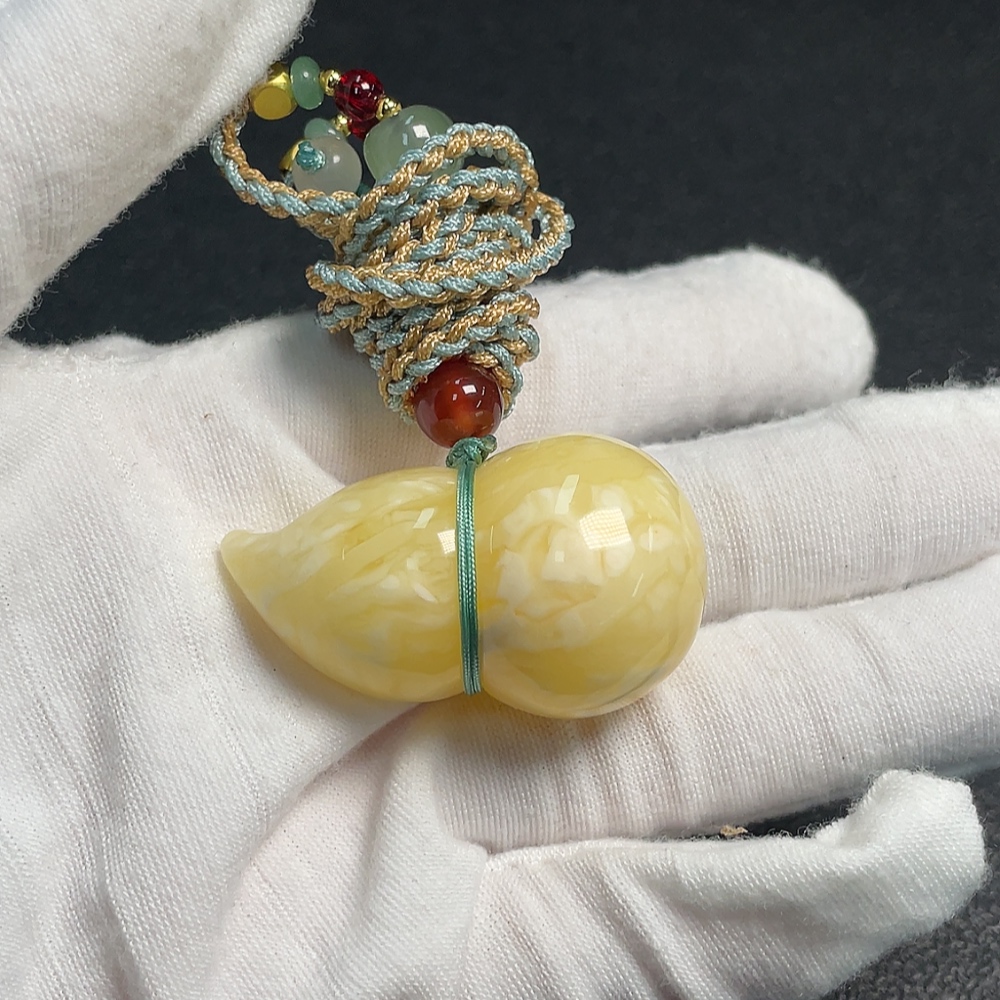 Amber Beeswax Pendant Total Weight Approx. 18.03g with Rope Non-Gold