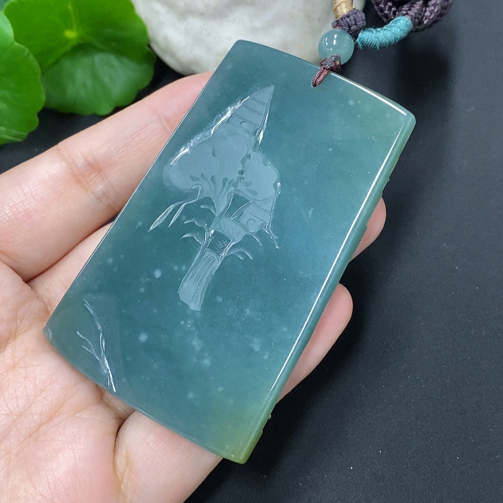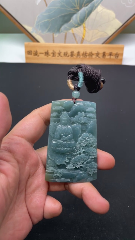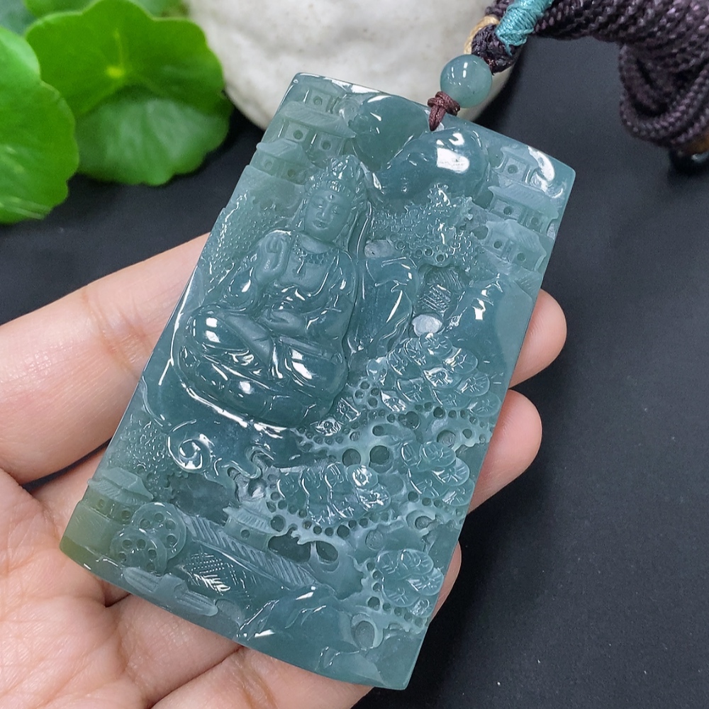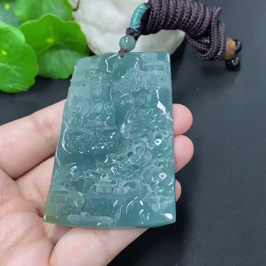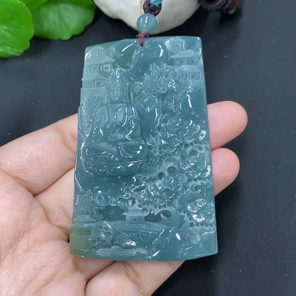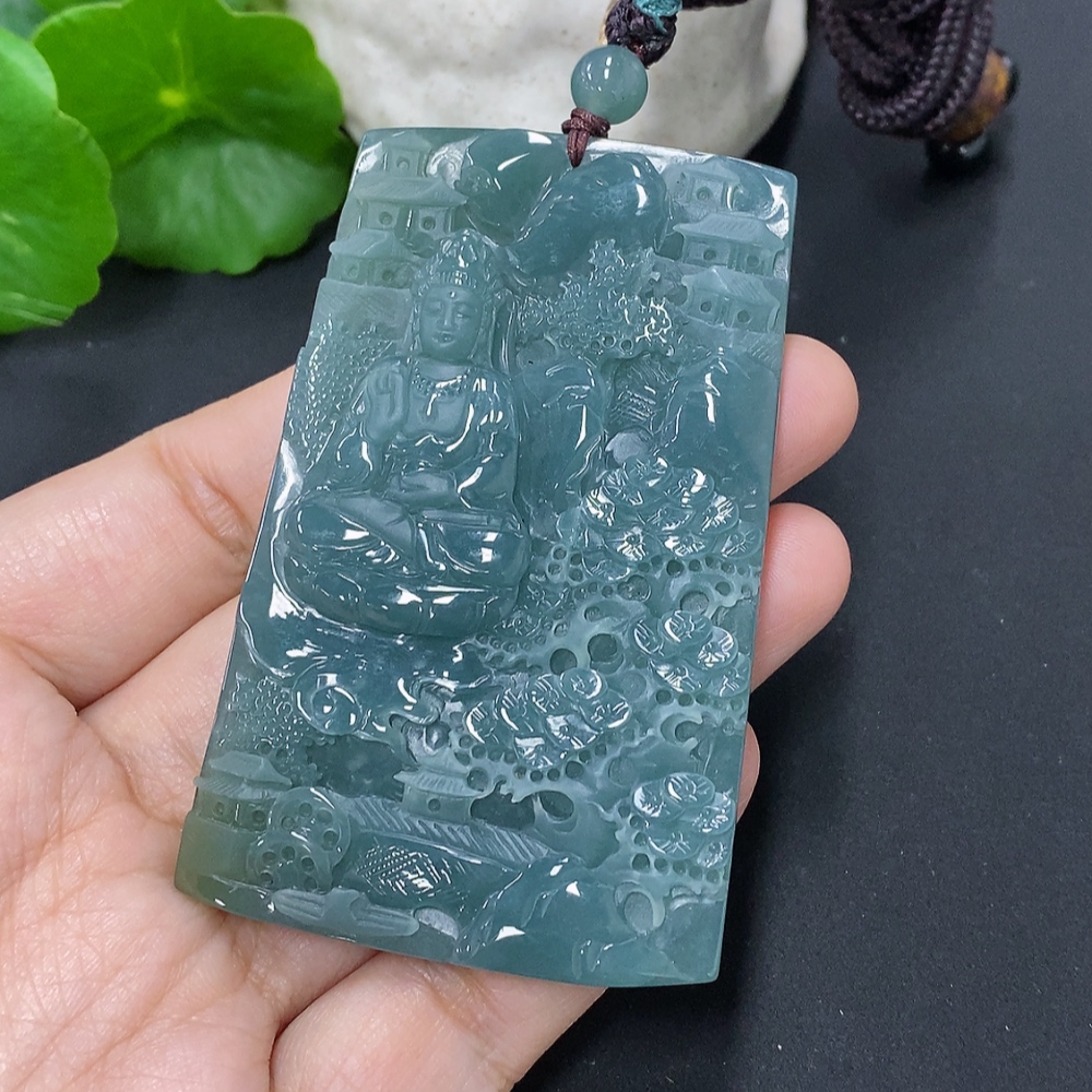 Jadeite Landscape Guanyin Pendant, total weight including rope approximately 60.1g