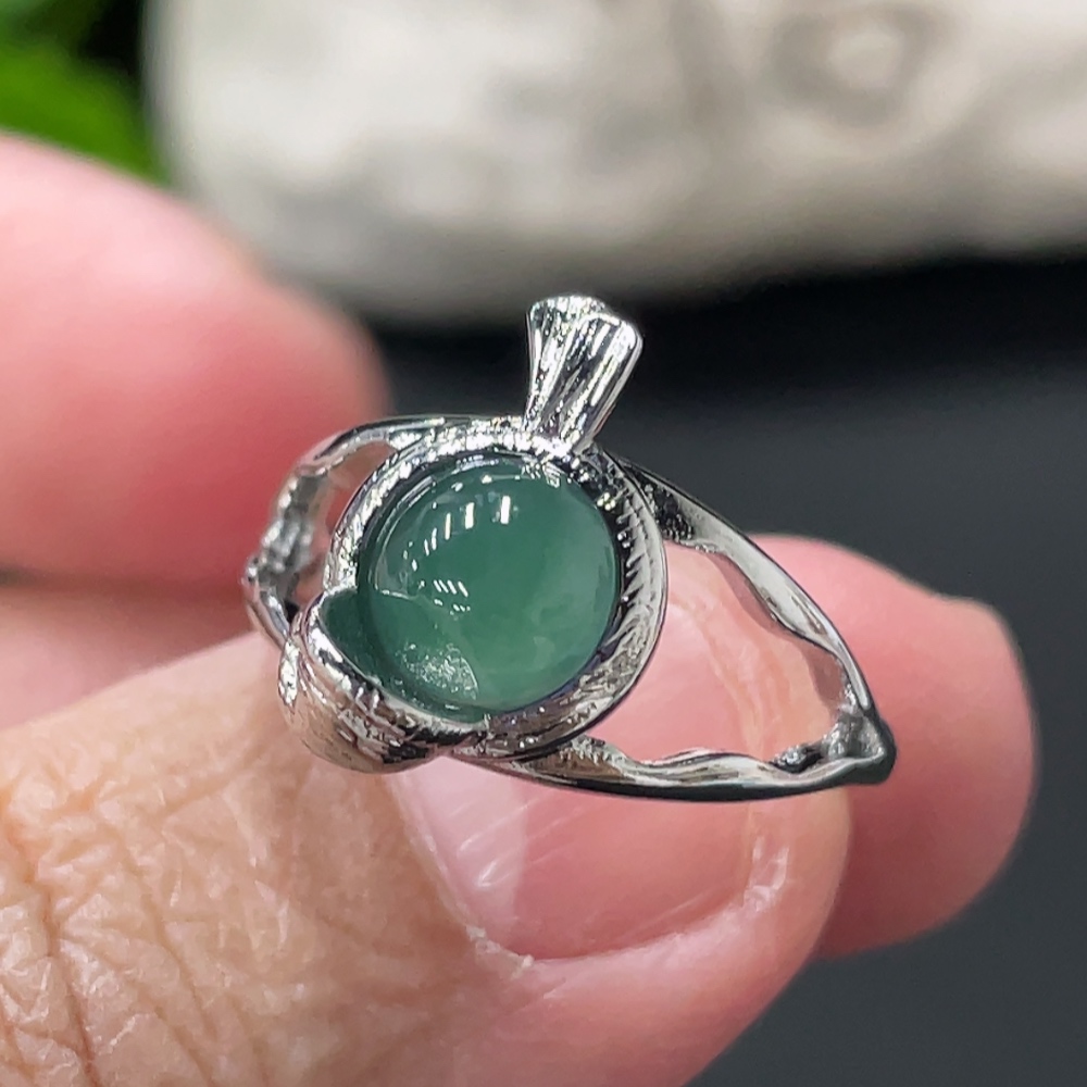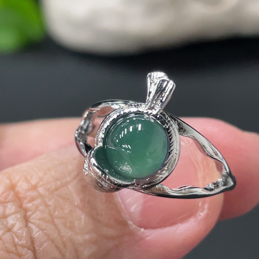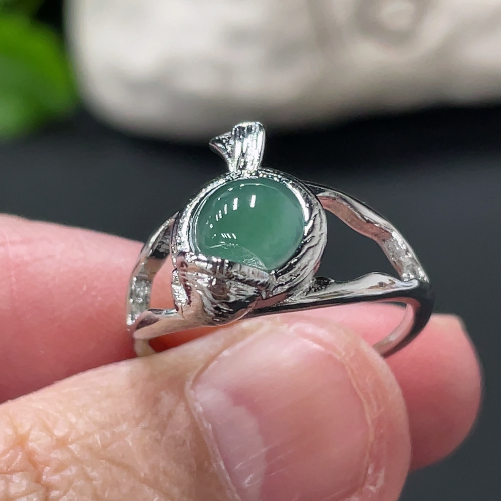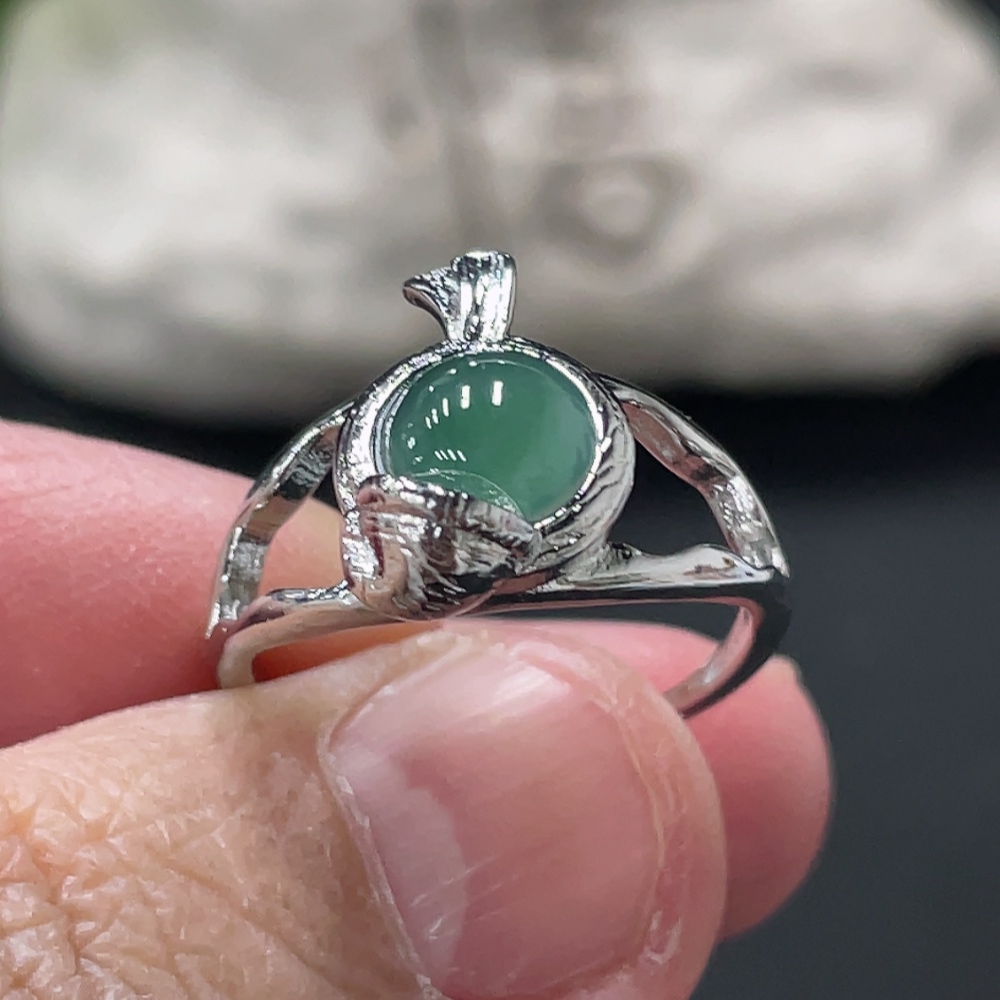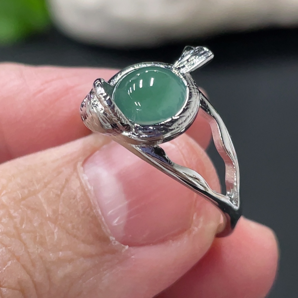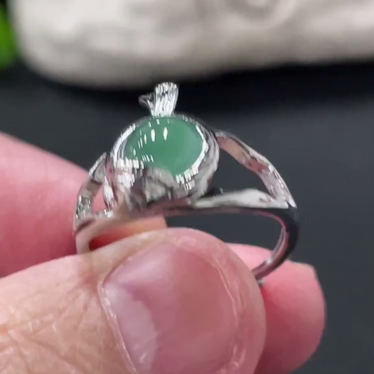 Jadeite Cabochon Ring, Non-Gold Setting, Adjustable Size, Total Weight Approx. 2.67g