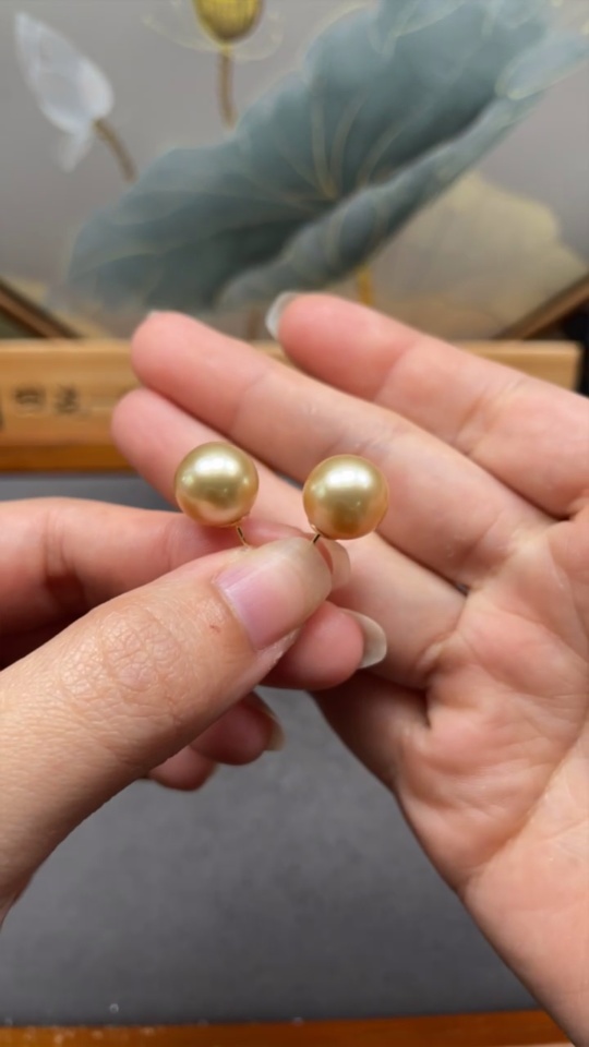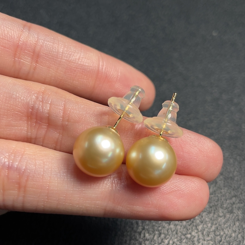 18k seawater pearl earrings, color origin undetermined, total weight approximately 4.58g, size about 11.2mm