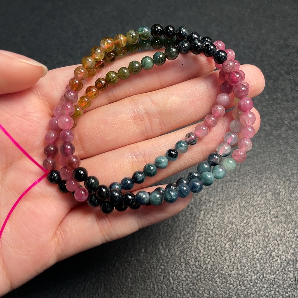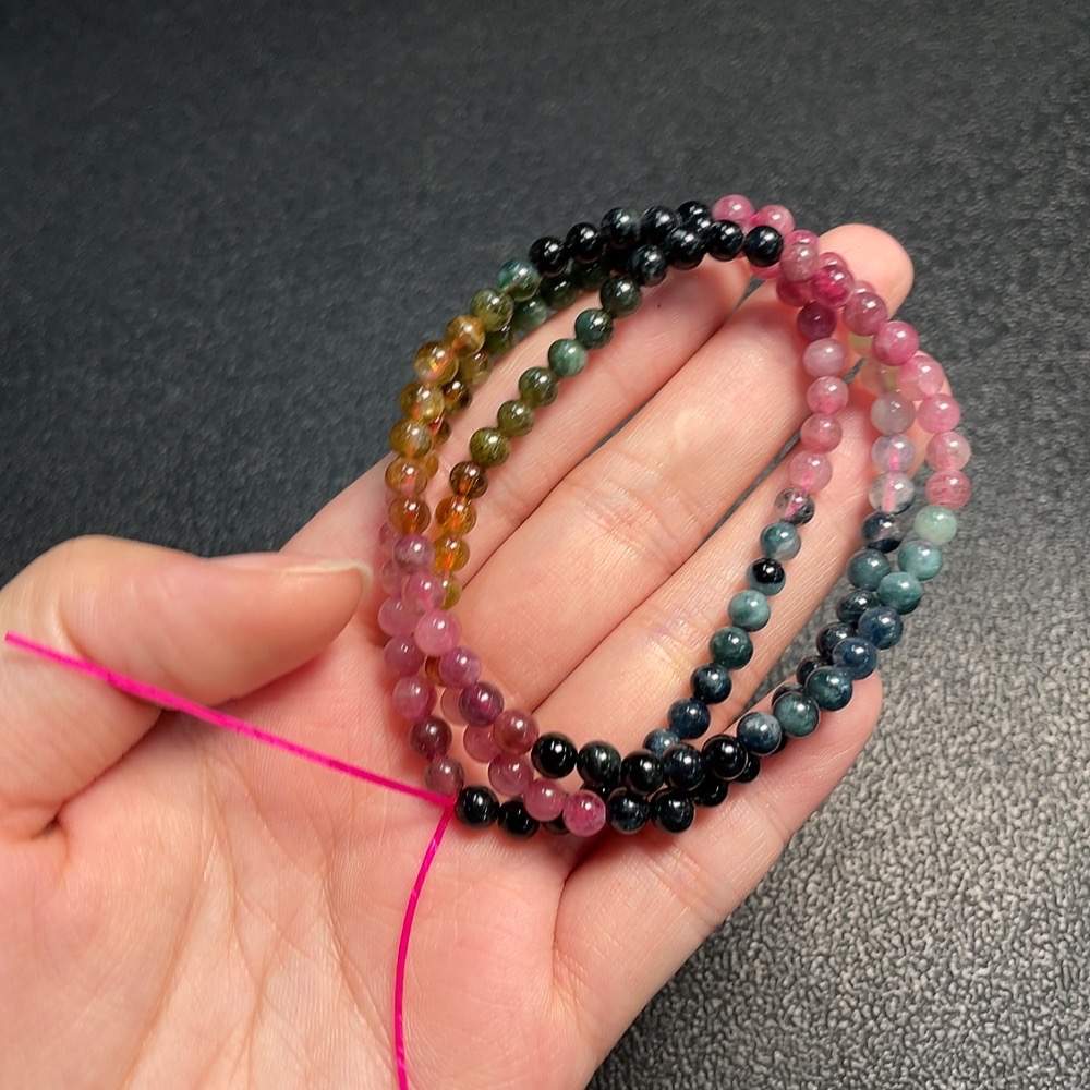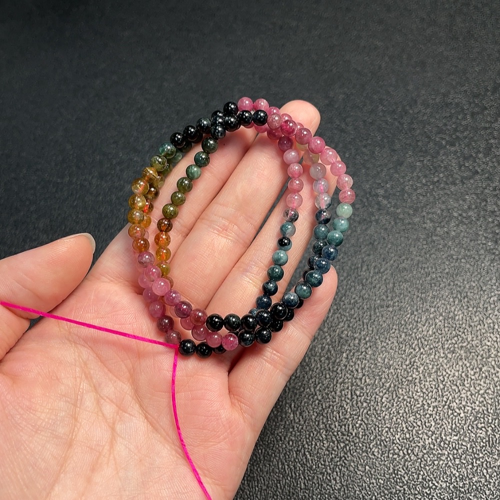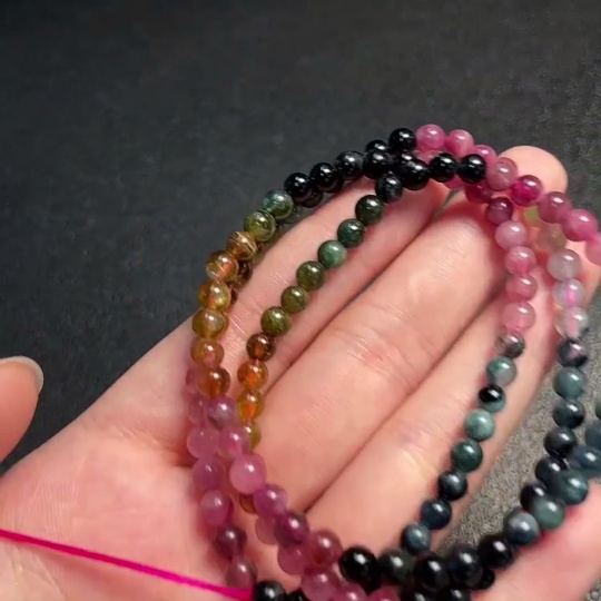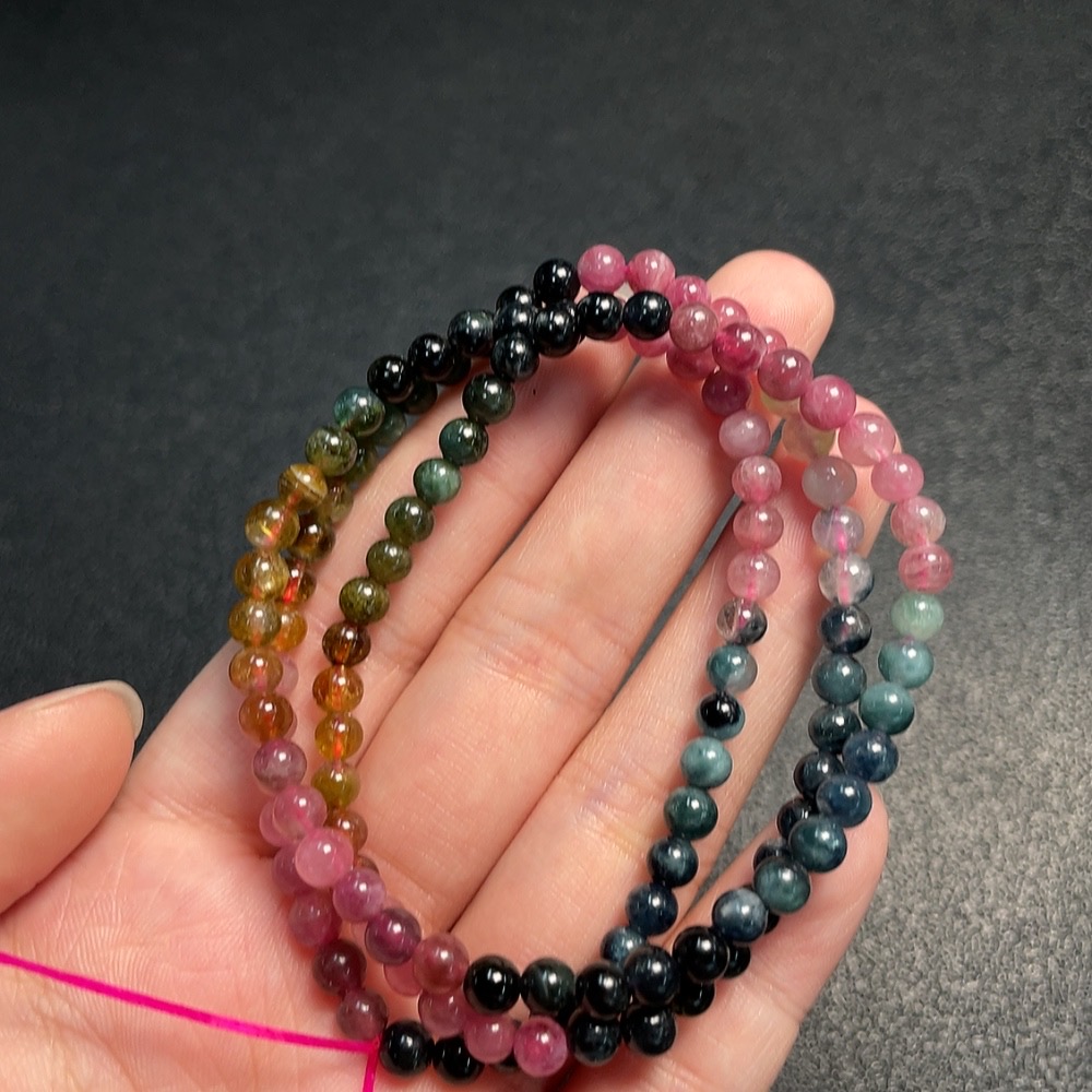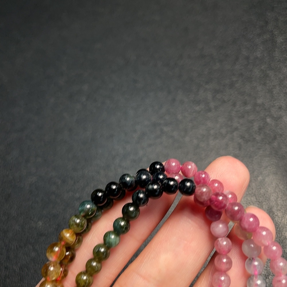 Tourmaline Bead Necklace with Other Mineral Components, Visible Organic Matter, Total Weight Approx. 18.5g, Stone Size 4.8mm