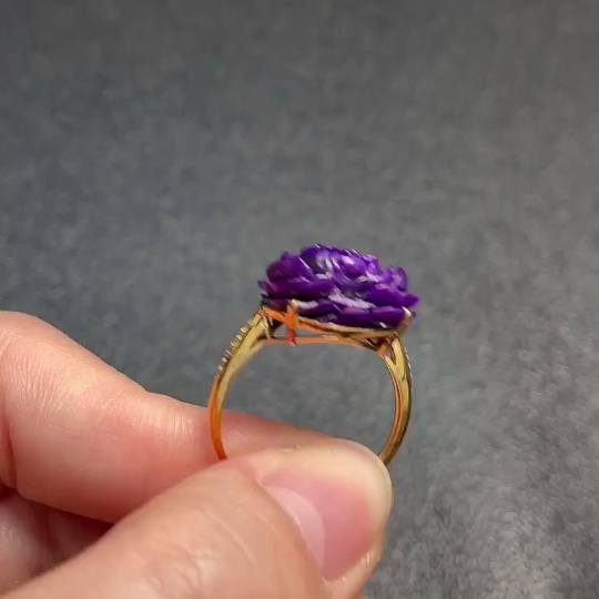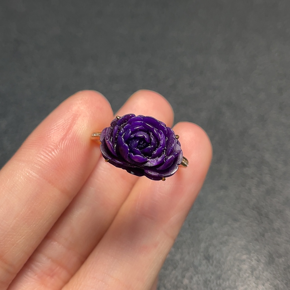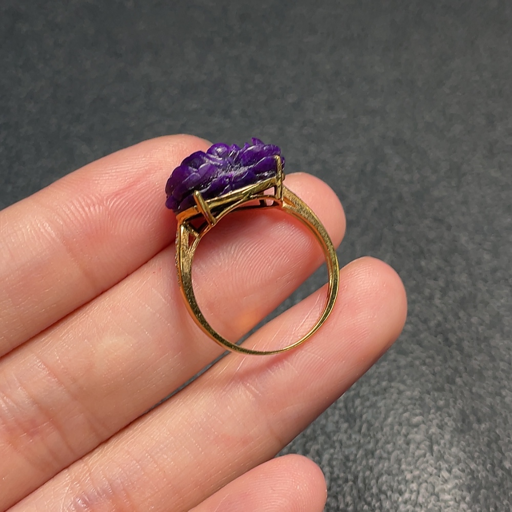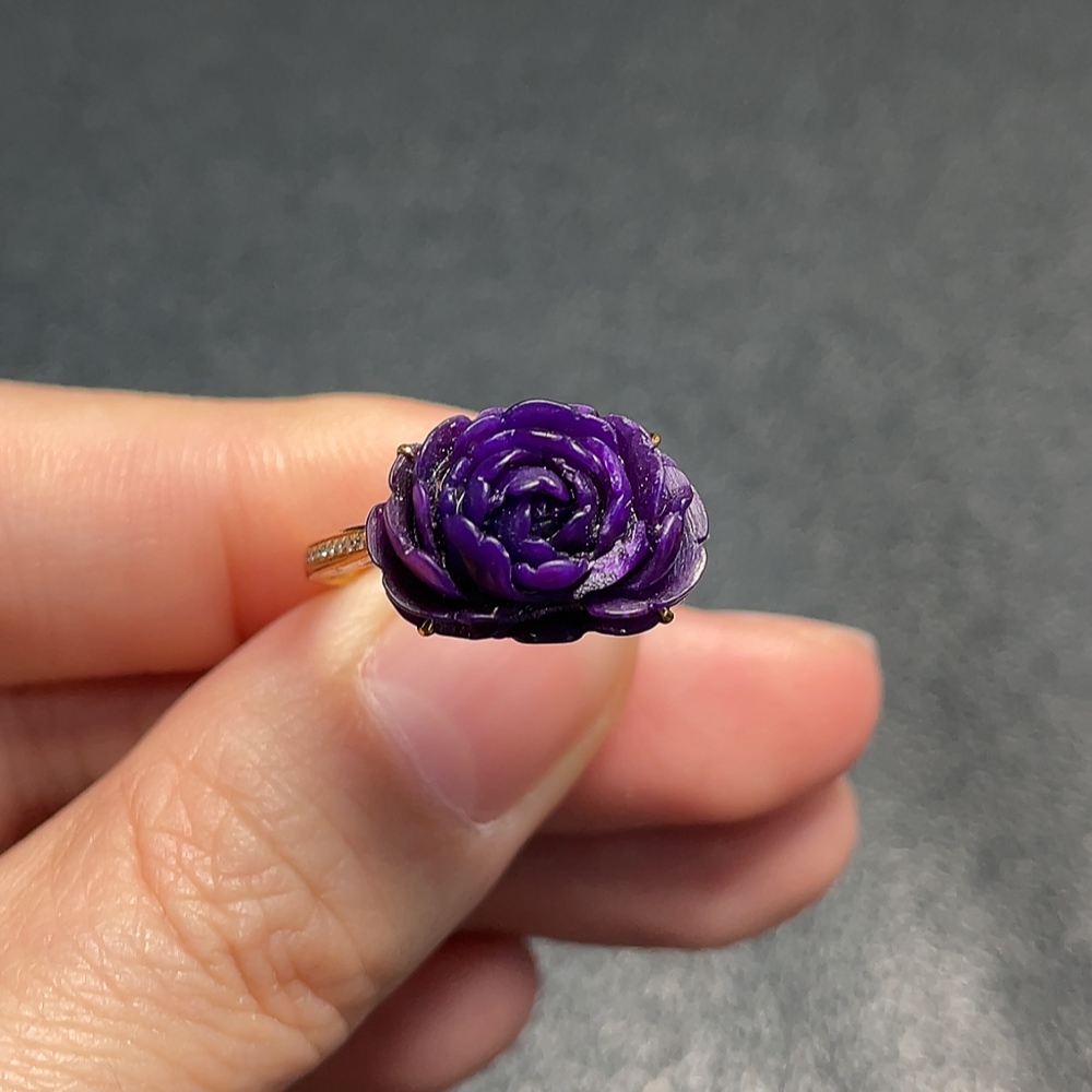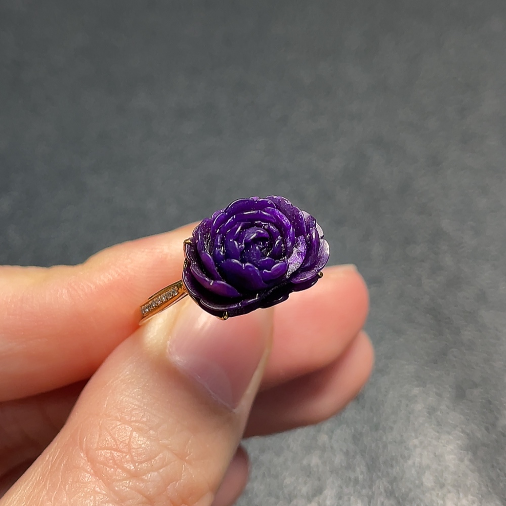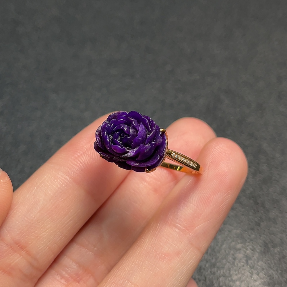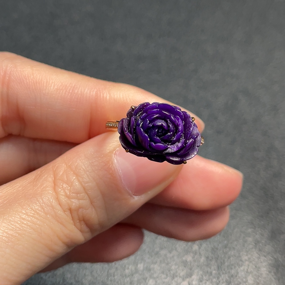 18K Sugilite Ring (Purple Only) with Diamond Accents, Containing Other Mineral Components, Total Weight Approx. 3.07g, Size 17 (Inclusive of Minerals)