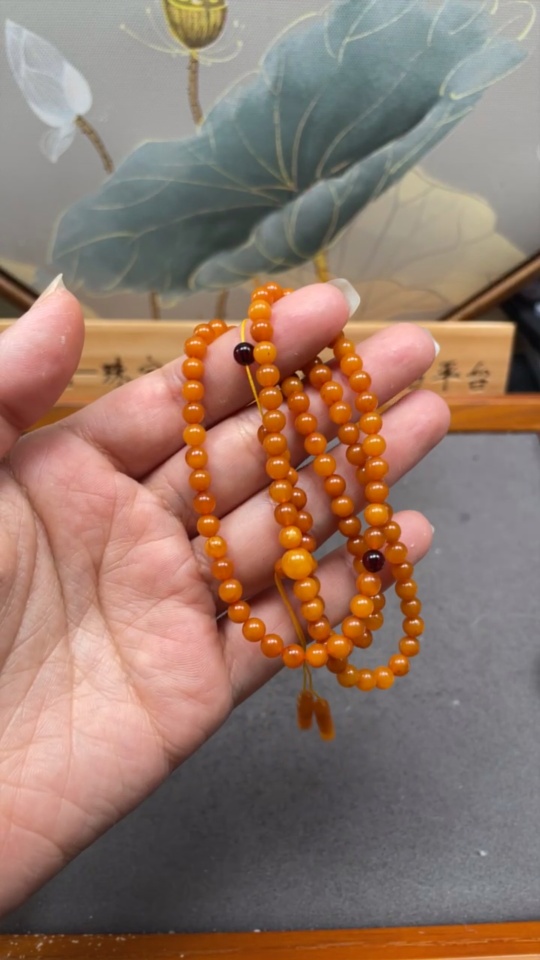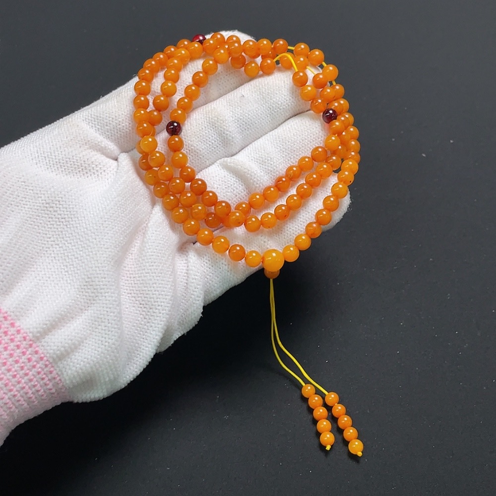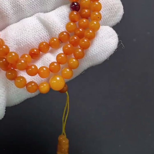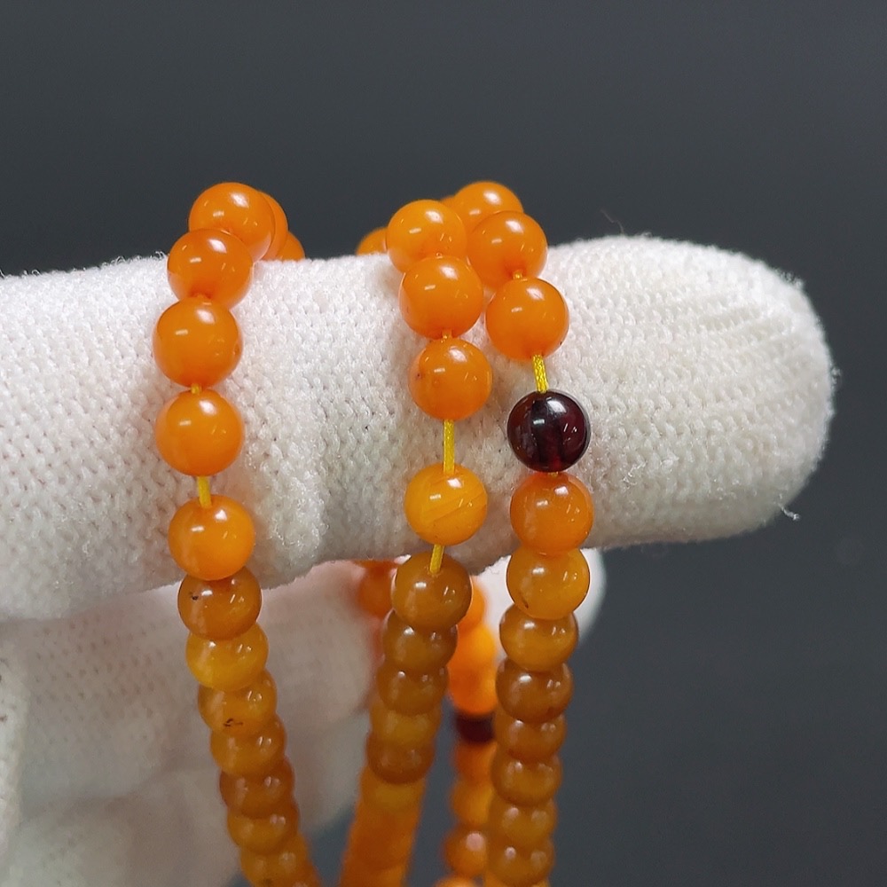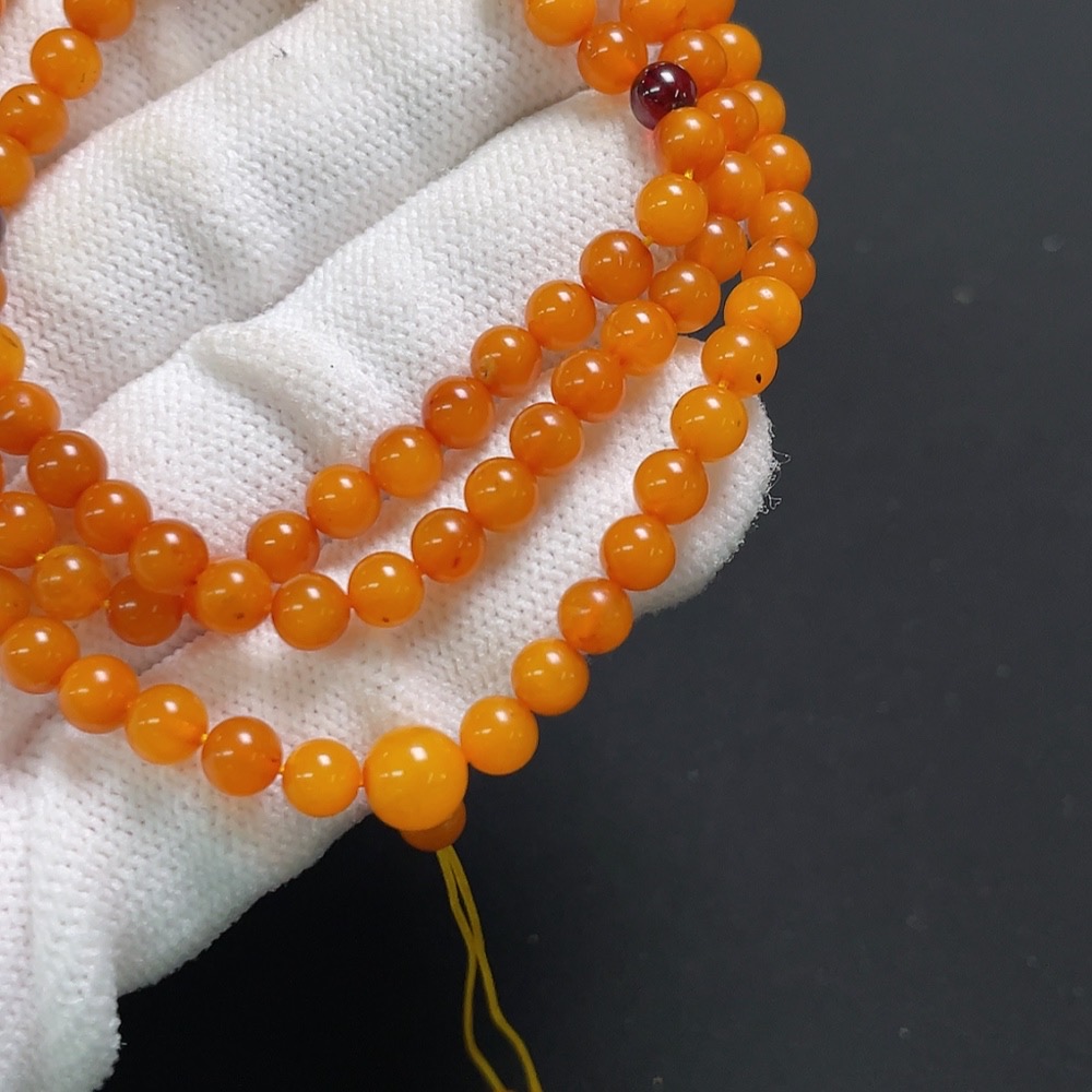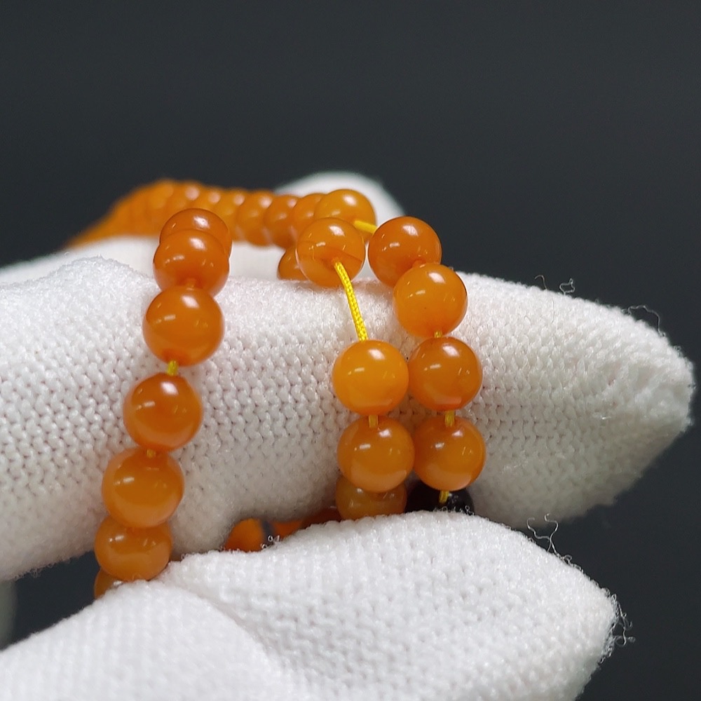 Amber Beeswax Bead Necklace, Total Weight Approx. 7.4g, Size About 4.7mm