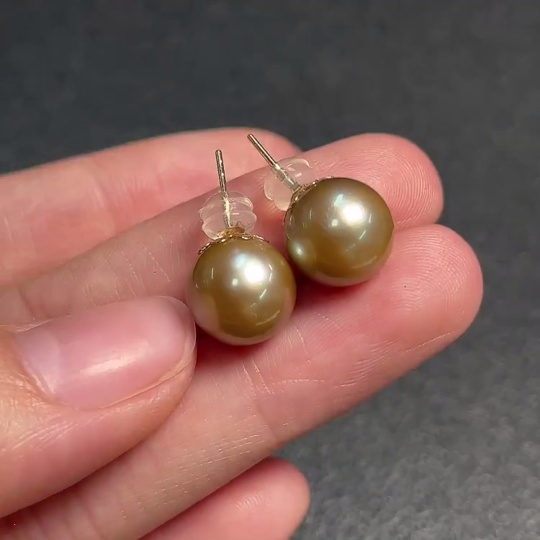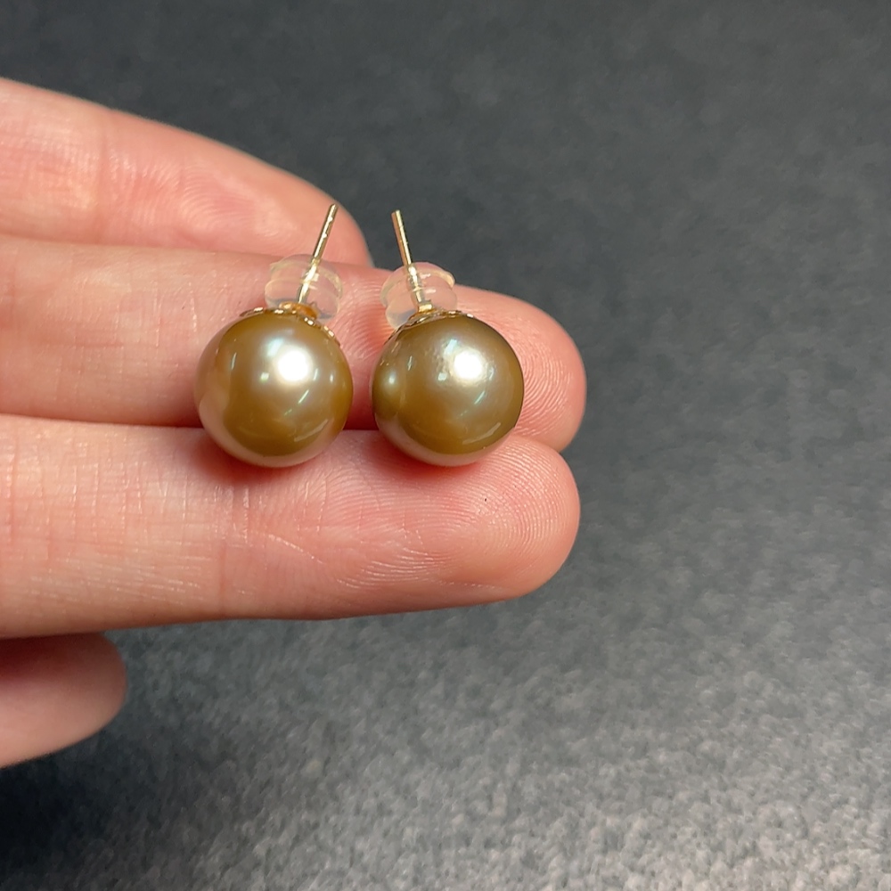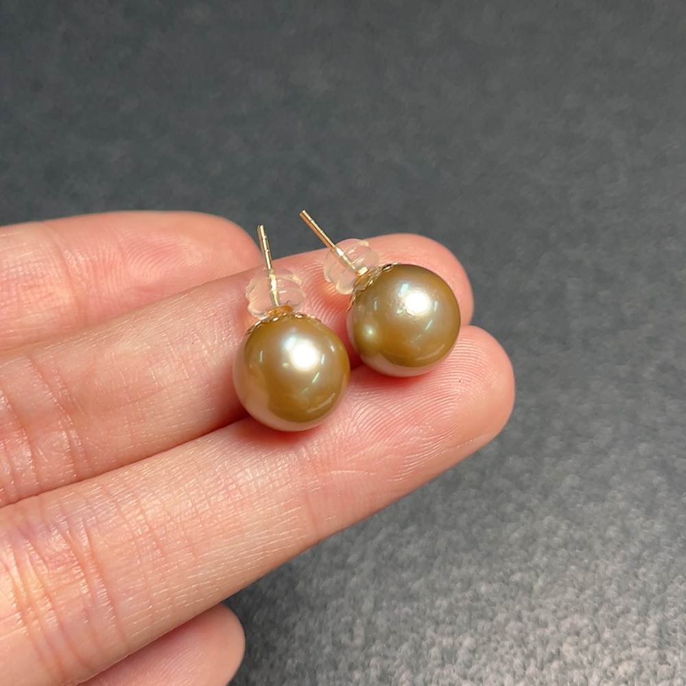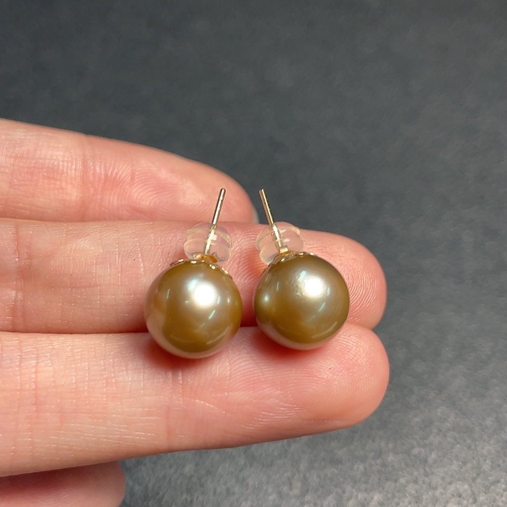 18K seawater pearl earrings, color origin undetermined, total weight approximately 3.46g, size about 10.2mm