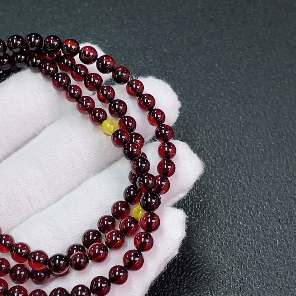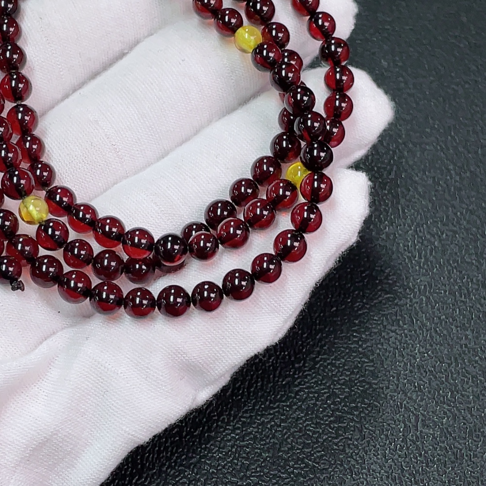 Amber Beeswax Bead Necklace, Total Weight Approx. 9.70g, Size About 5.3mm