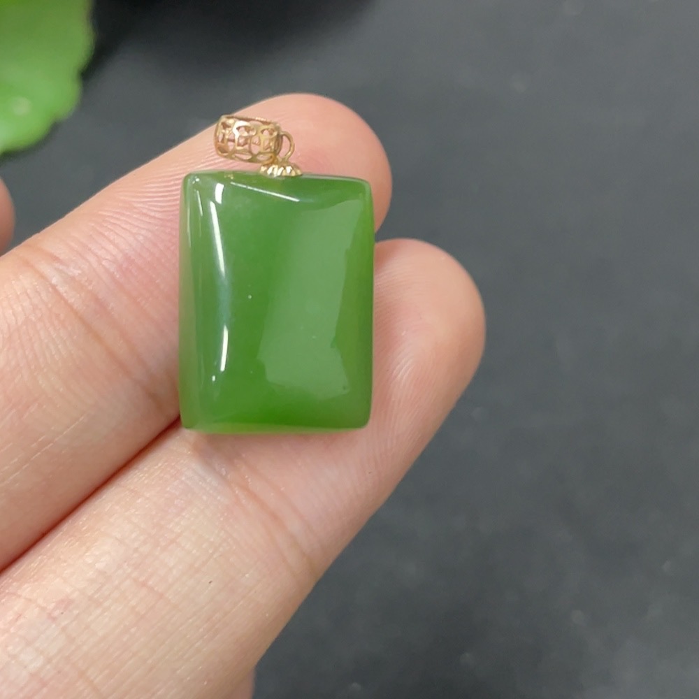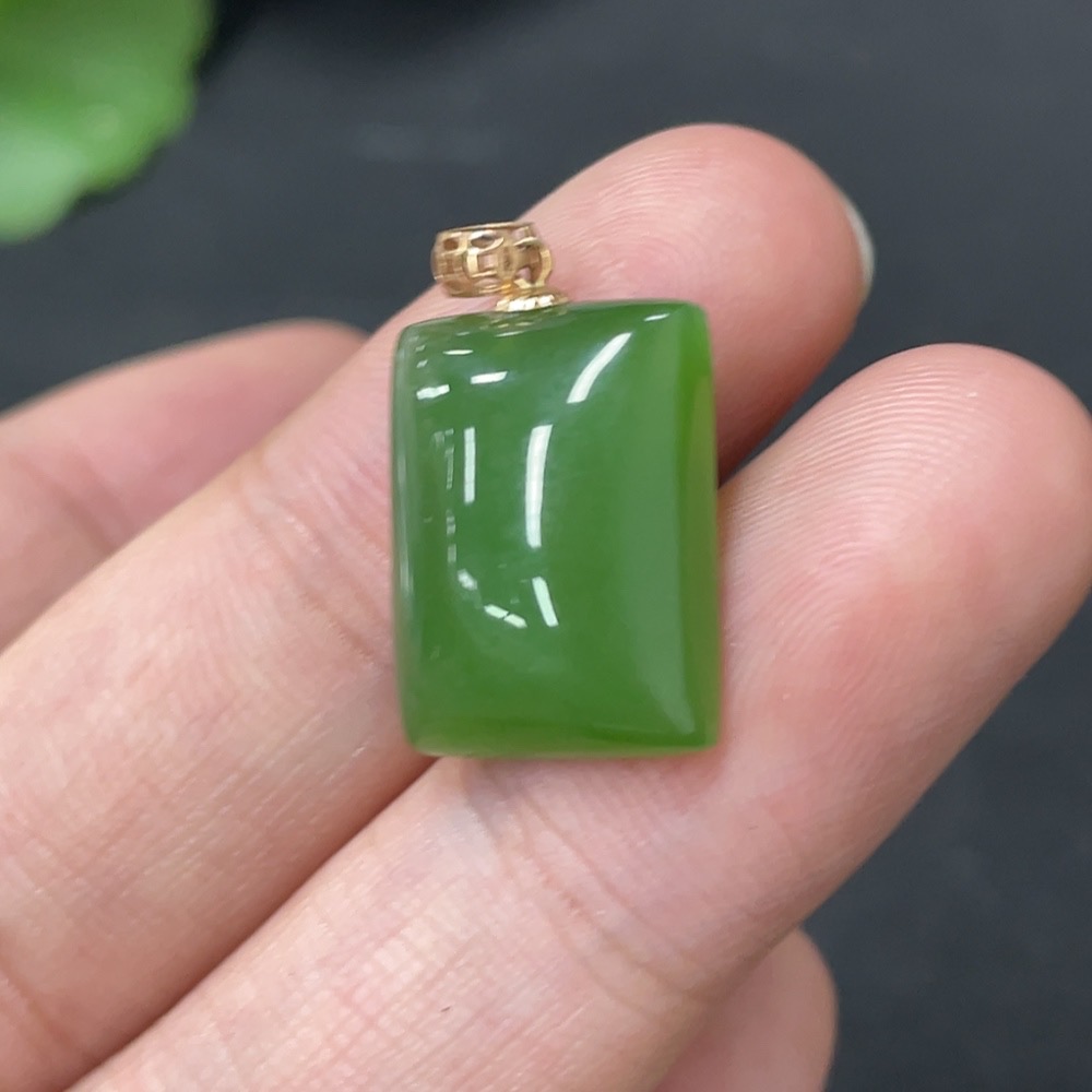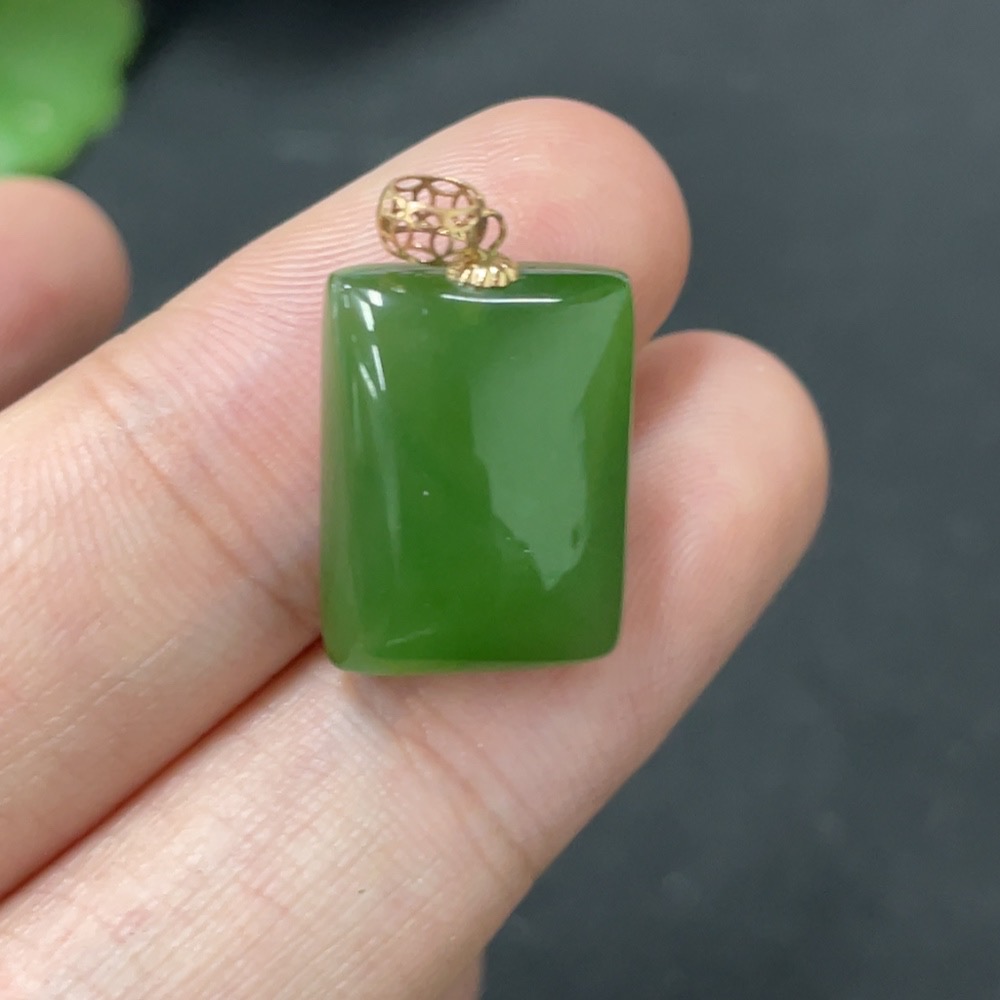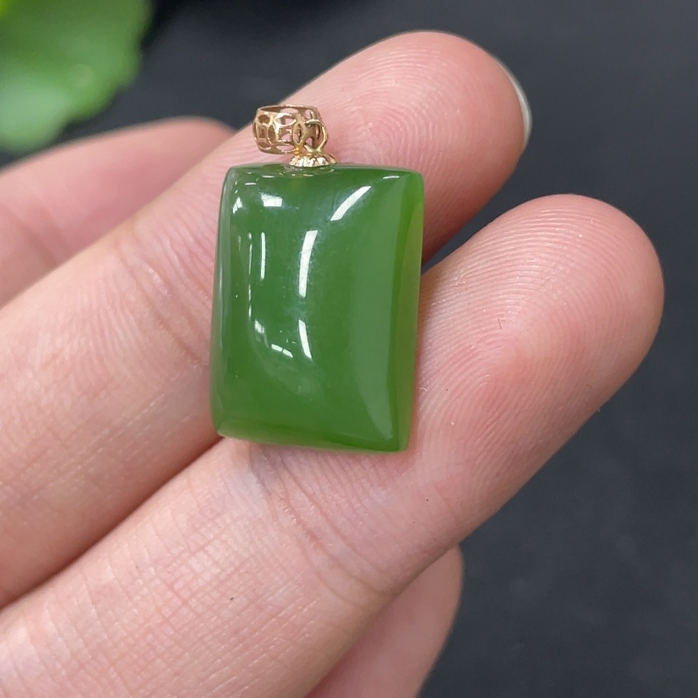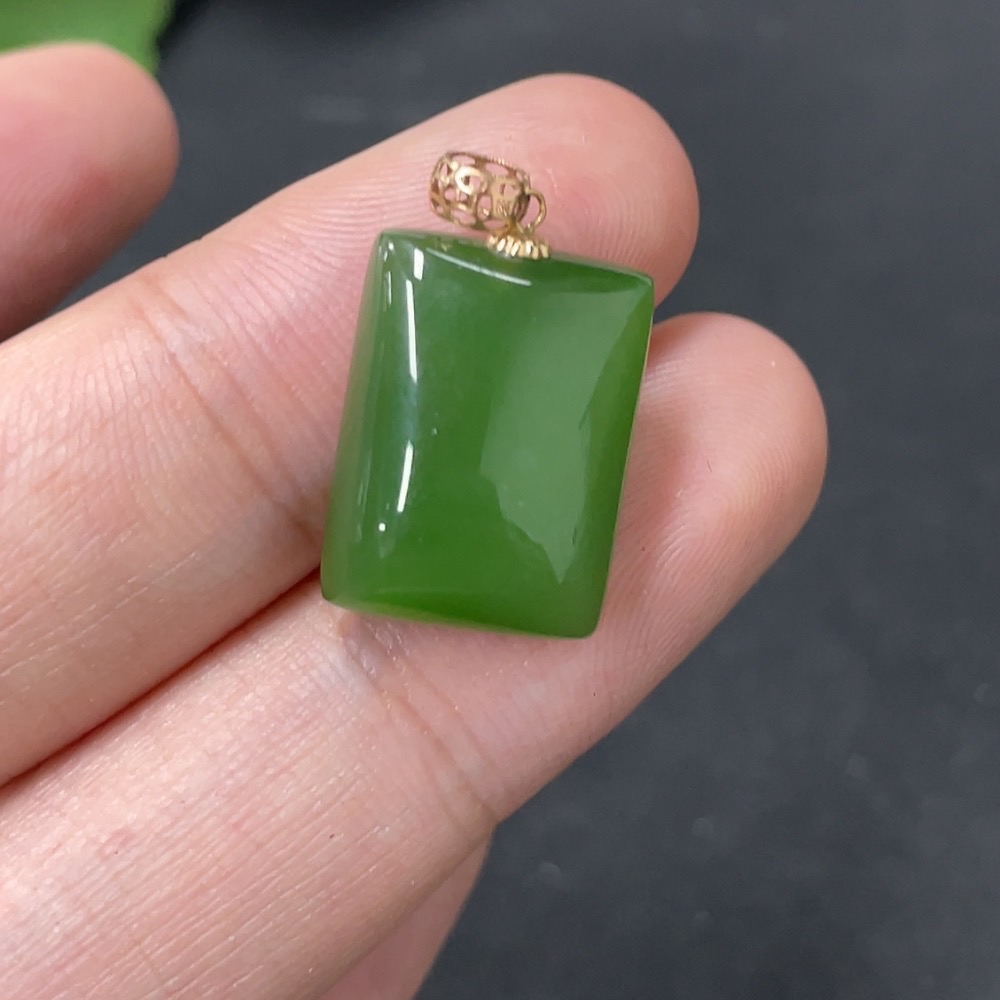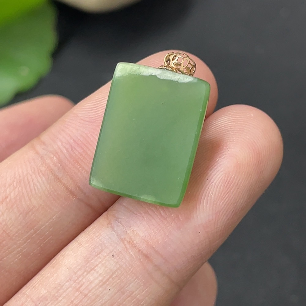 Hetian Jade Inlaid Plain Pendant 18k Gold Total Weight Approx. 2.4g