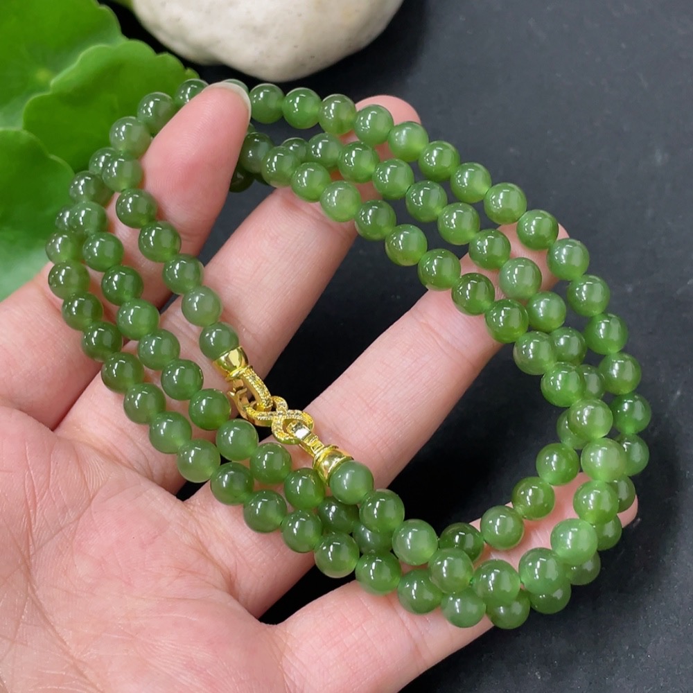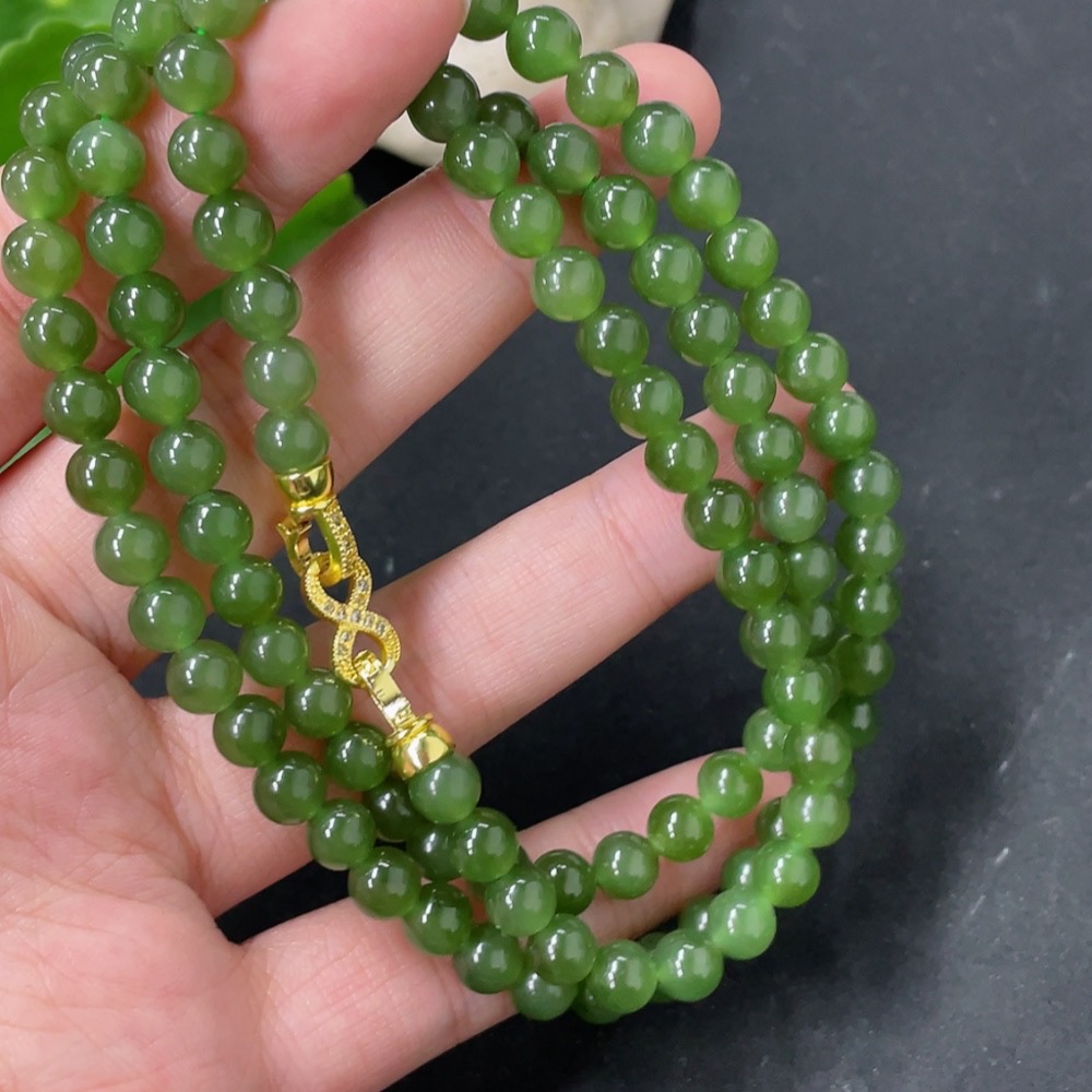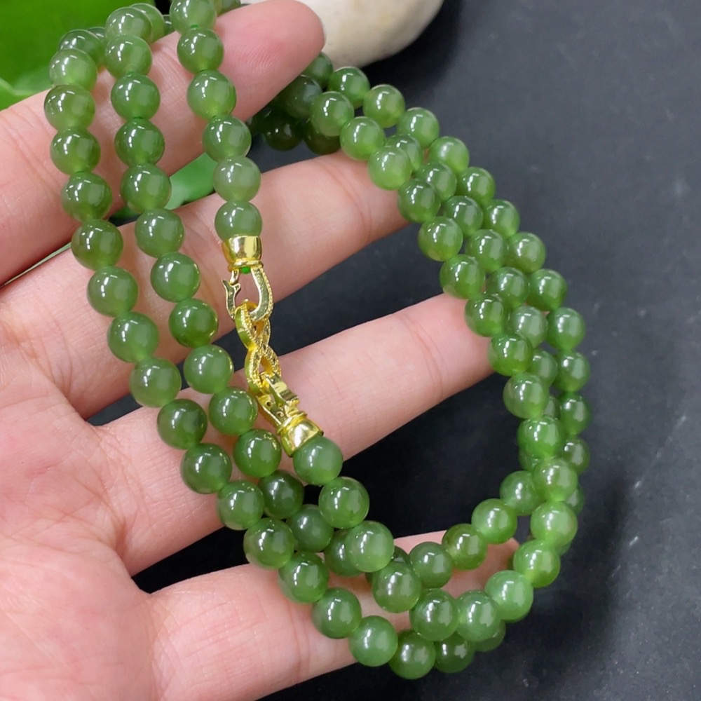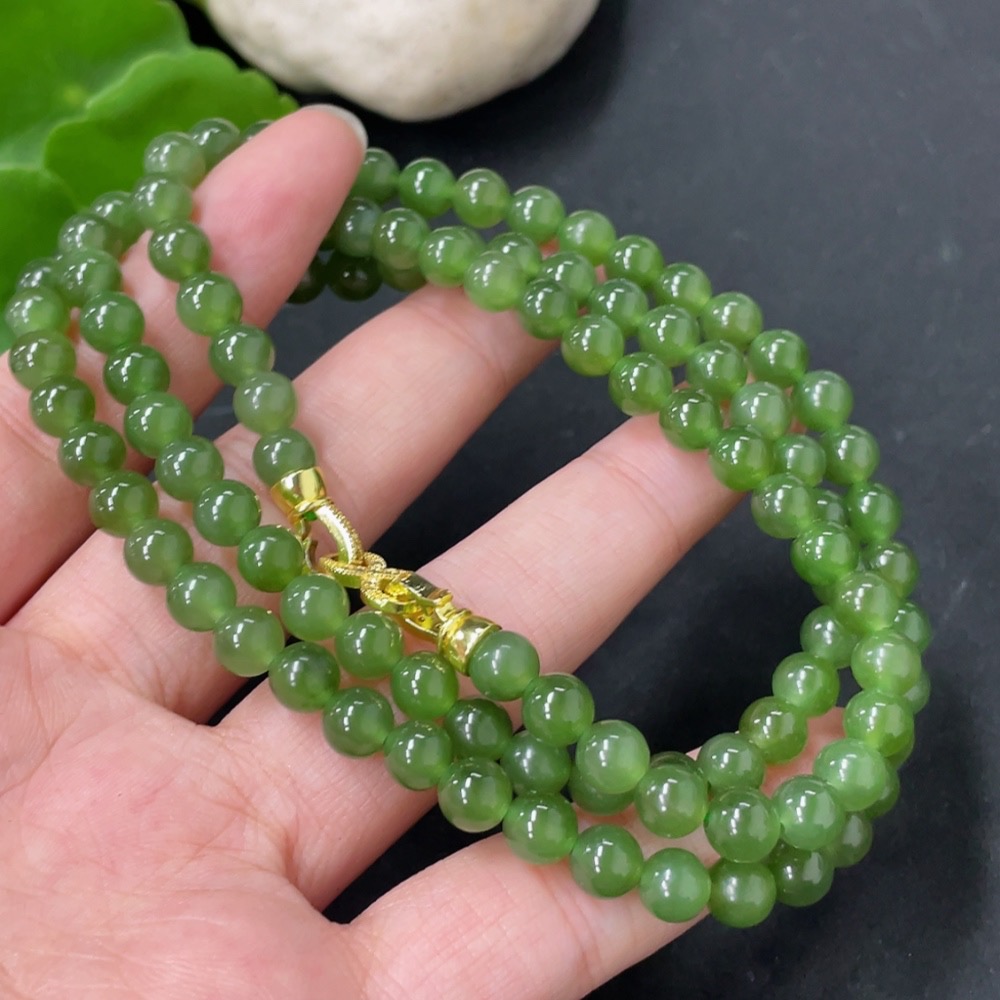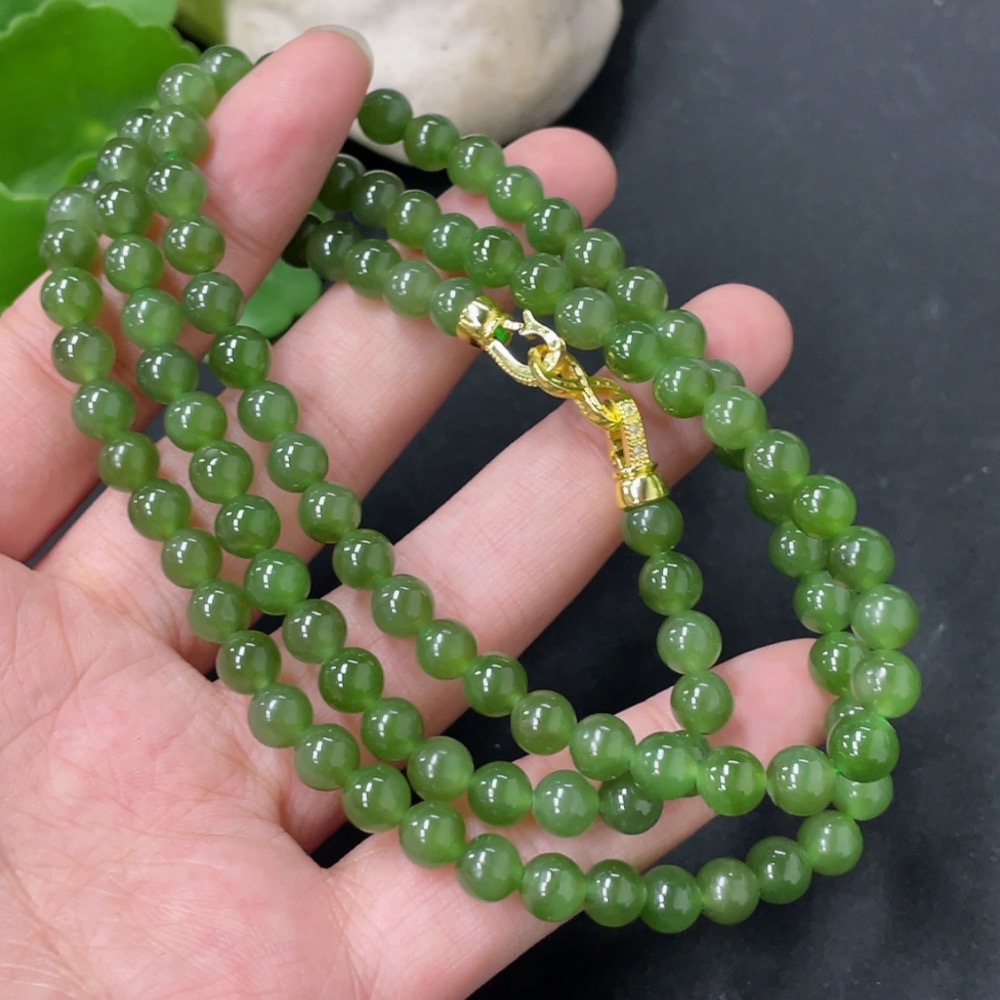 Hetian Jade Jasper Bead Necklace Non-Gold Bead Size Approx. 5.8mm Total Weight Approx. 38.9g