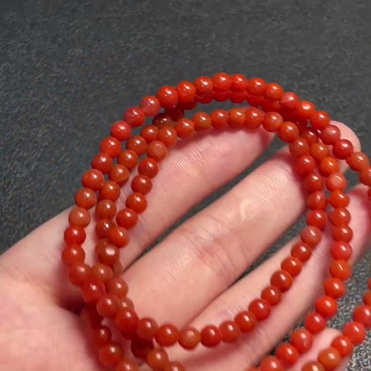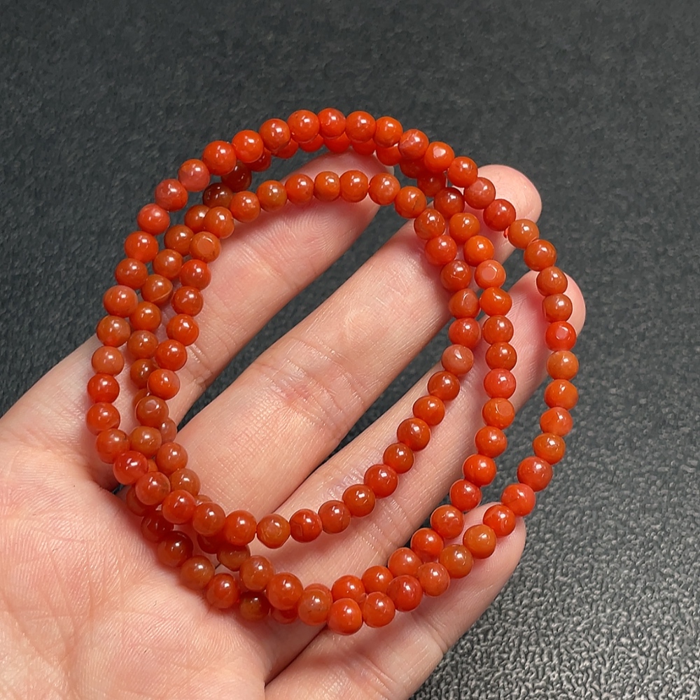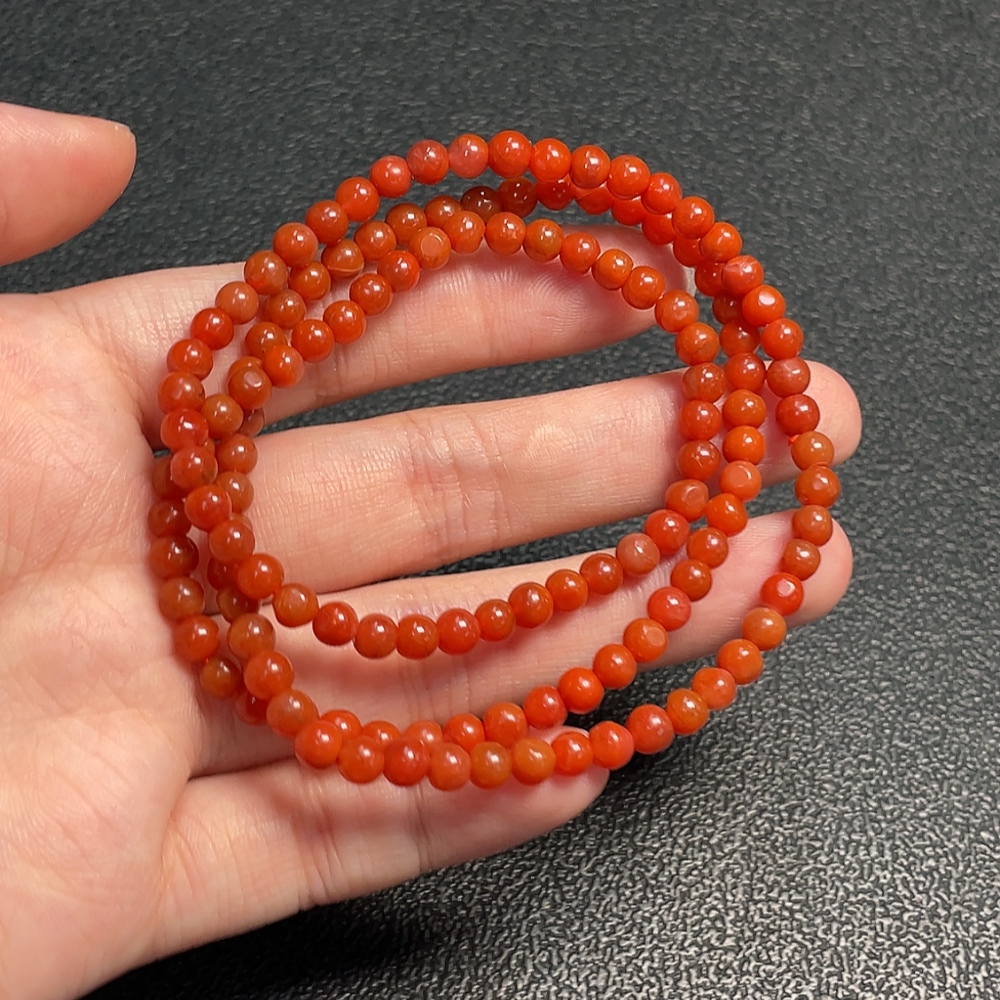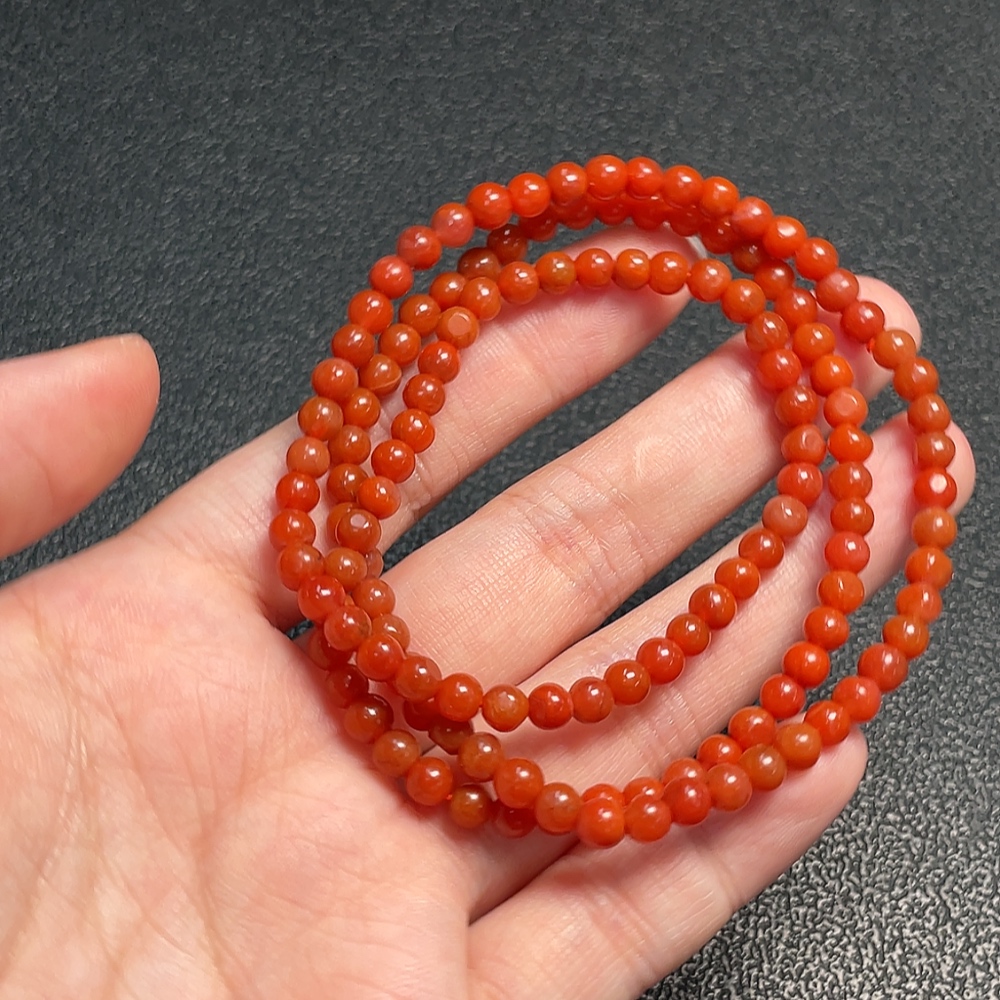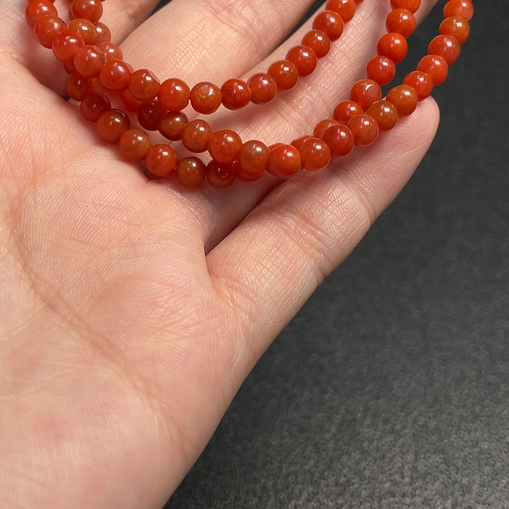 Red Agate Bead Necklace with Visible Organic Matter, Total Weight Approx. 16.31g, Bead Size 4.4mm