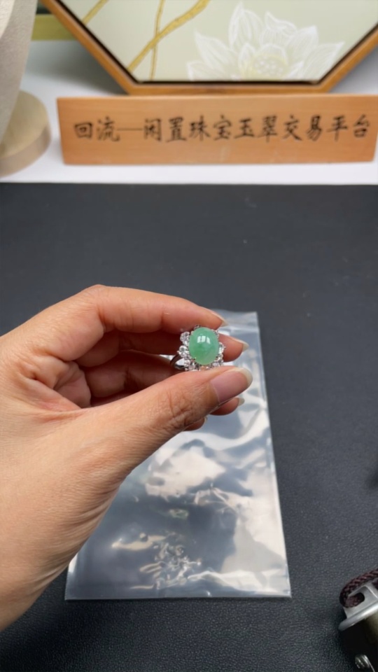 Jadeite inlaid ring Total weight about 4.6g (non-gold inlaid) (adjustable)
