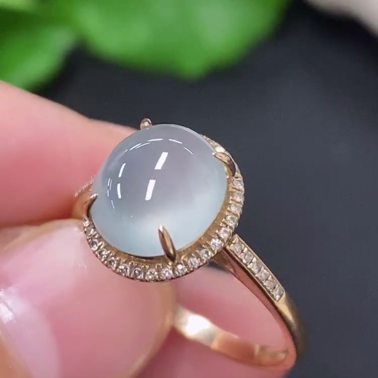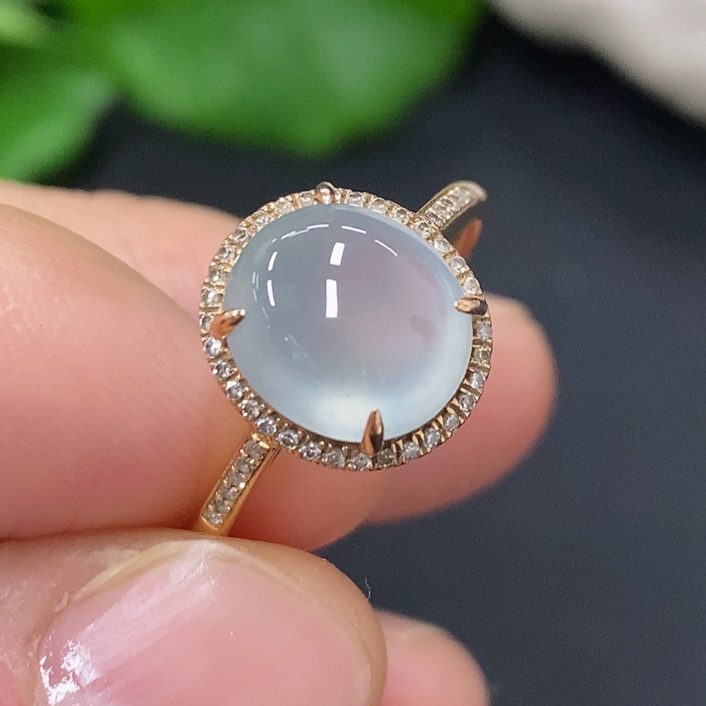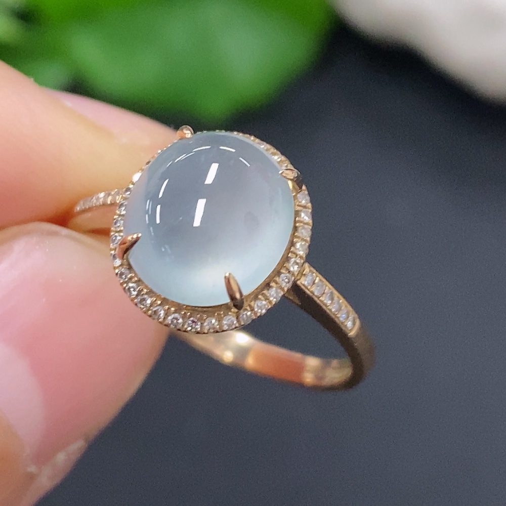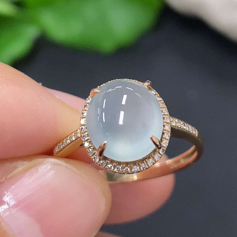 Jadeite Cabochon Ring in 18K Gold Size 15 Total Weight Approx. 2.4g (with Diamond Accents)