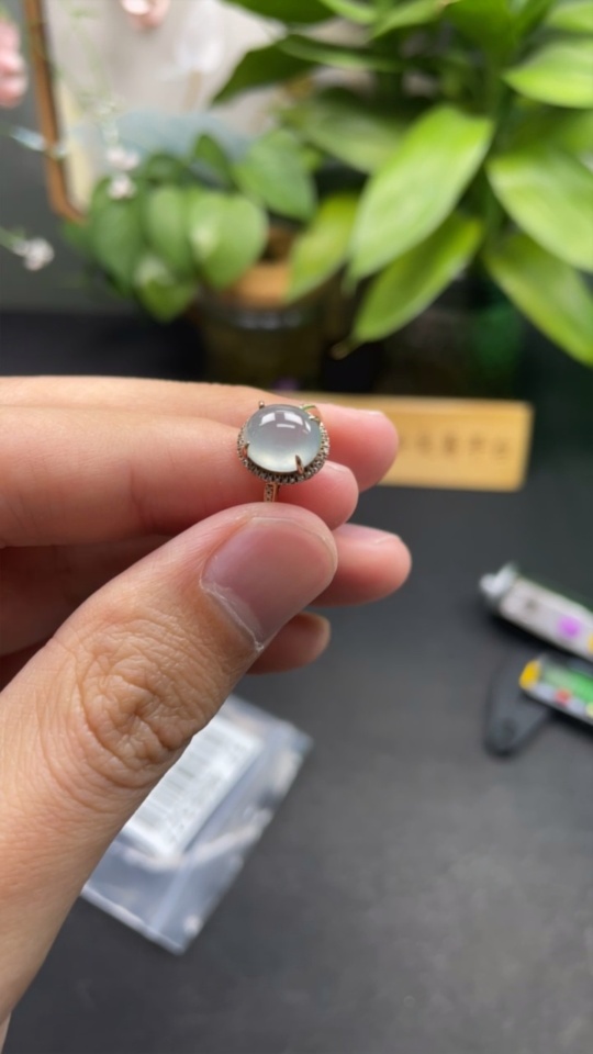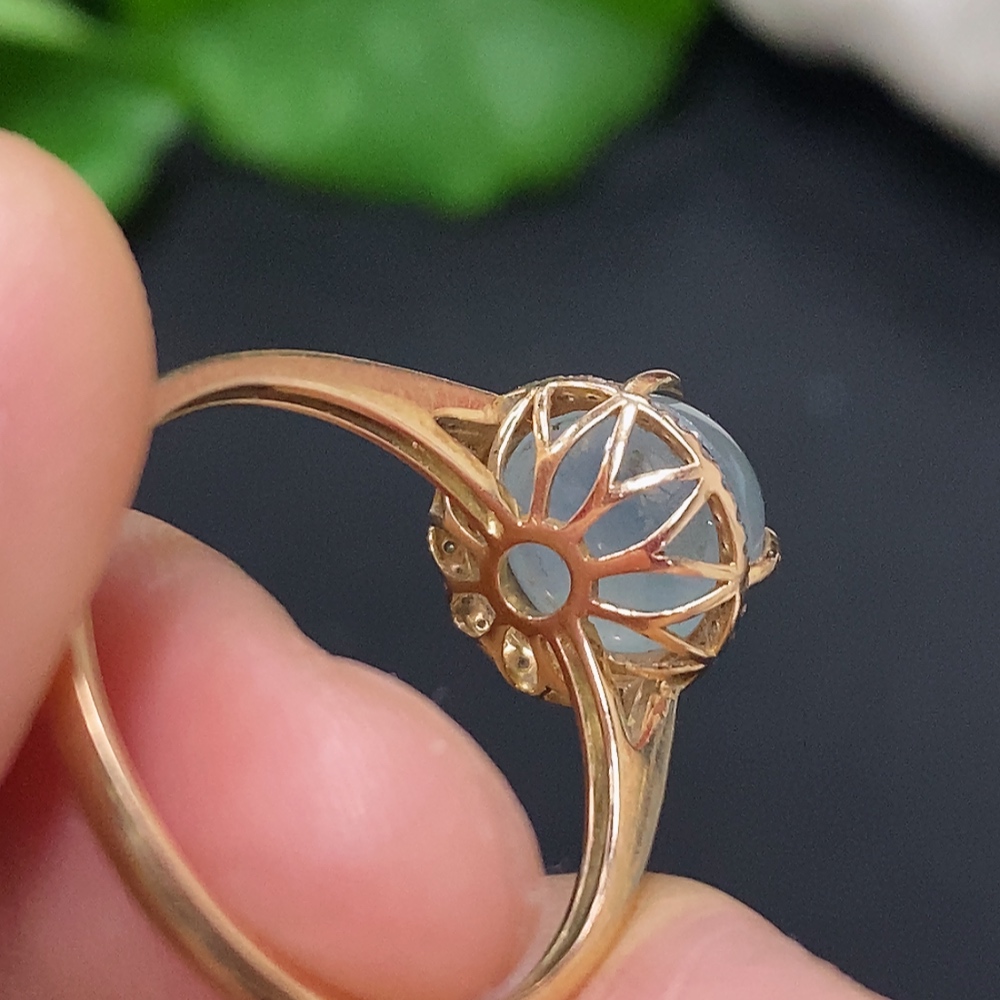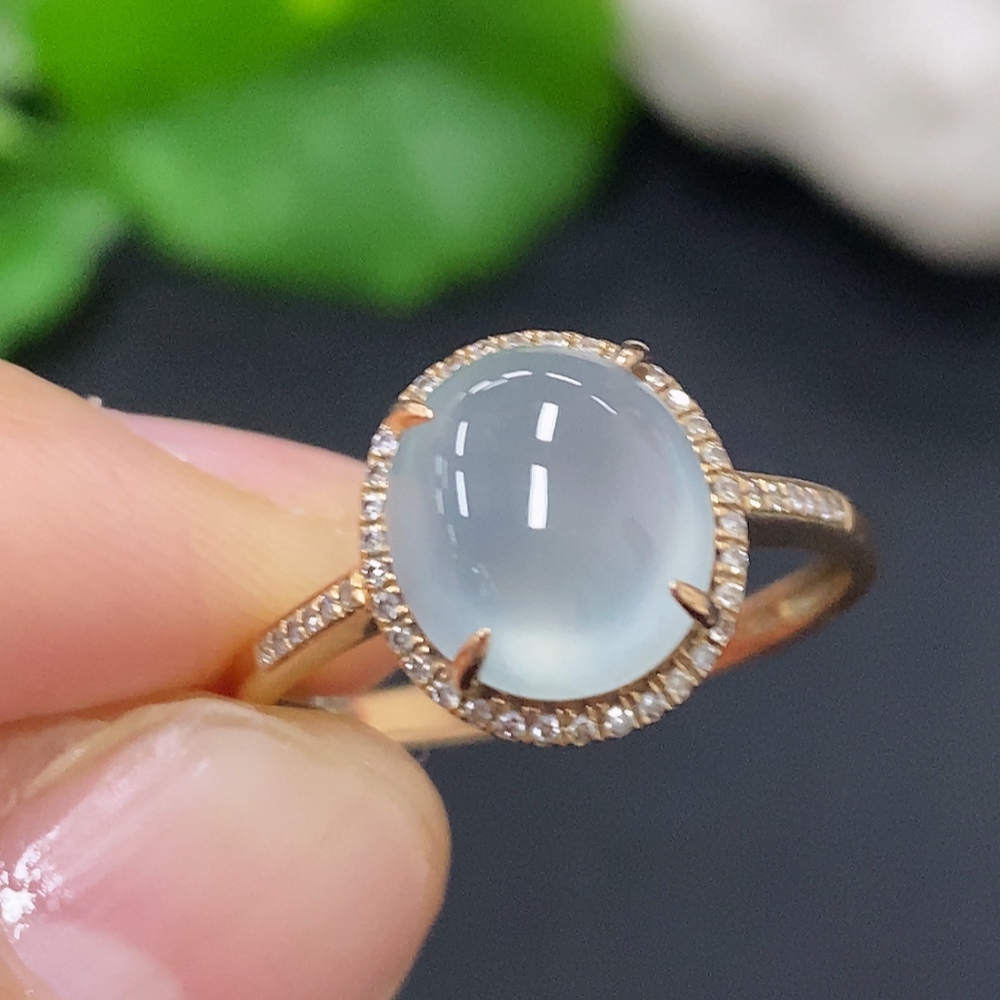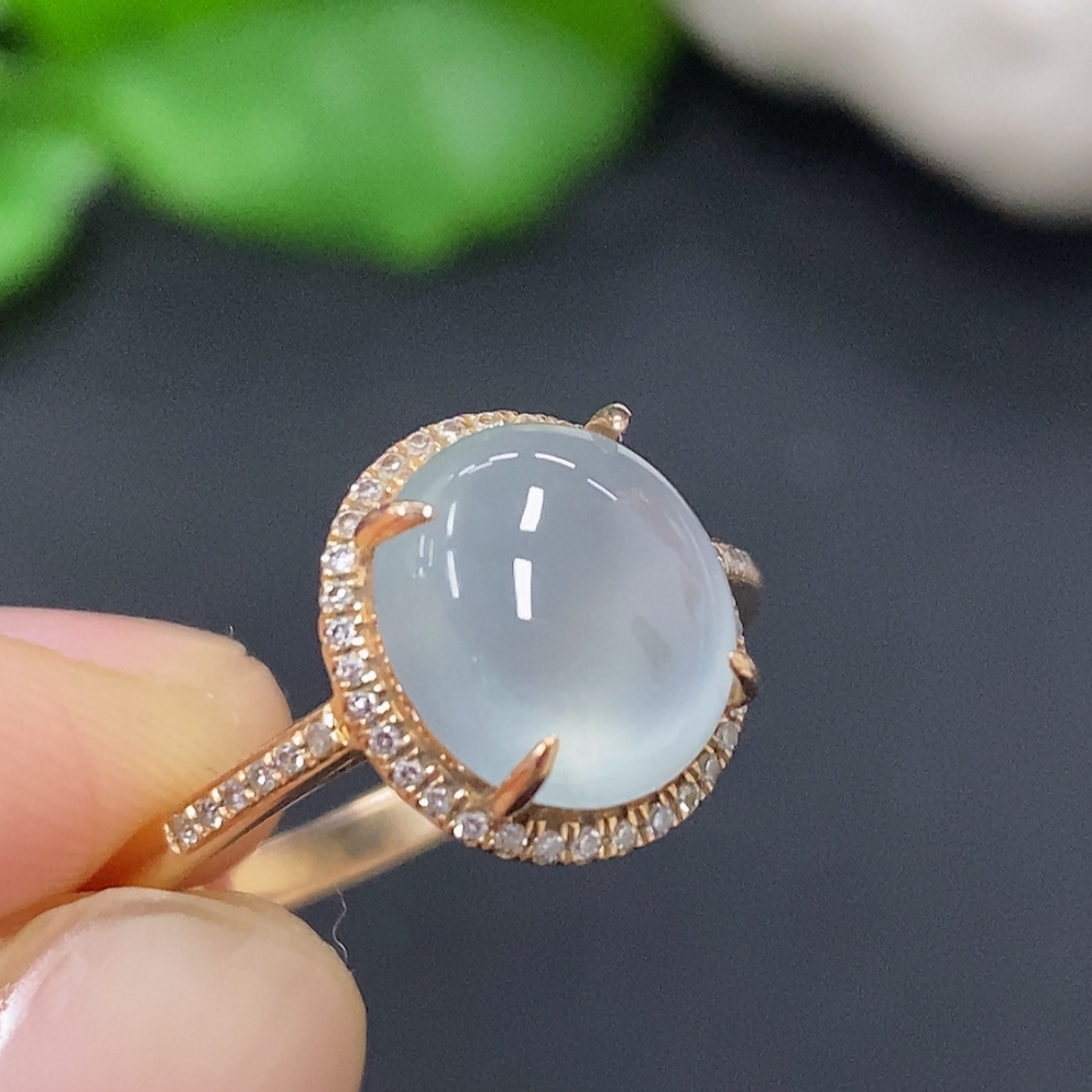 Jadeite Cabochon Ring in 18K Gold Size 15 Total Weight Approx. 2.4g (with Diamond Accents)
