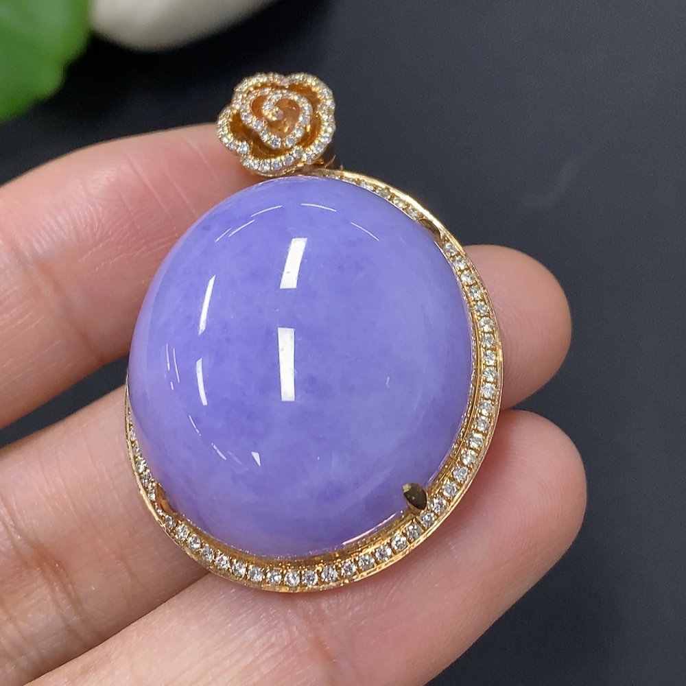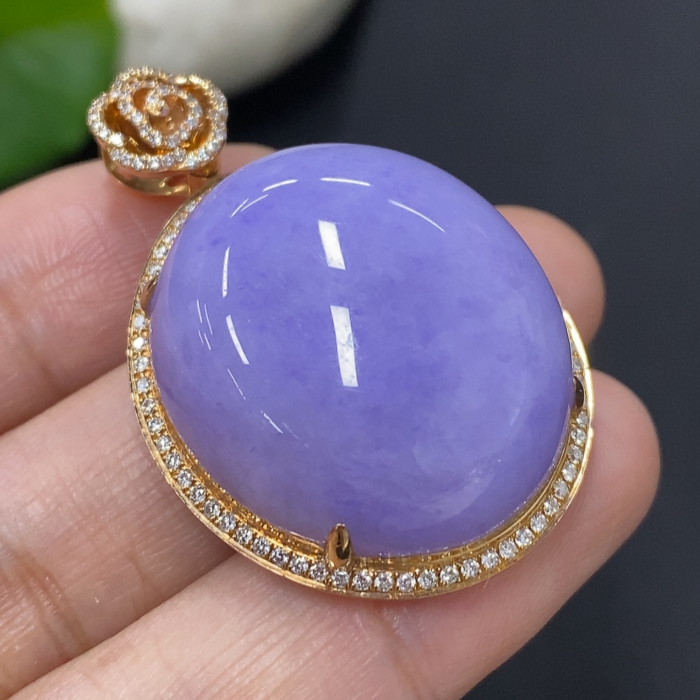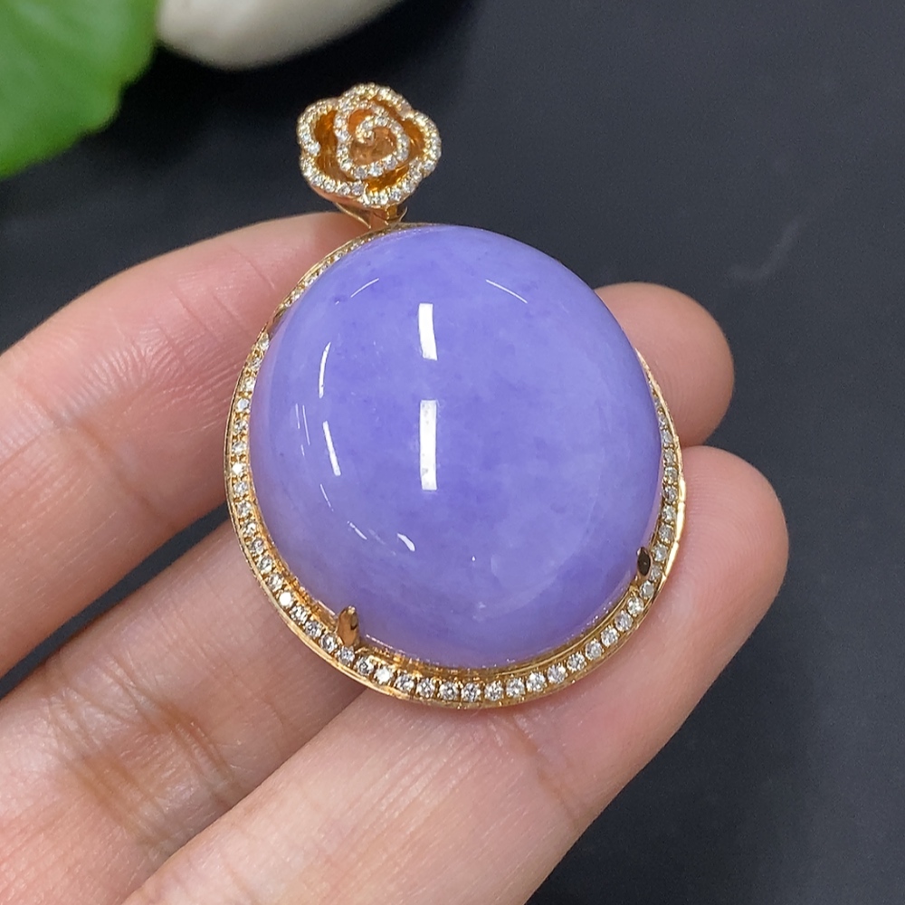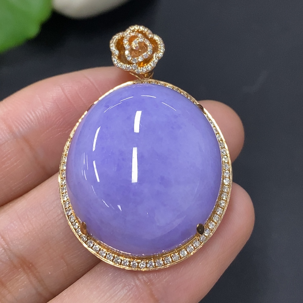 Jadeite cabochon pendant with 18K gold mounting, total weight approx. 19g (accented with diamonds)