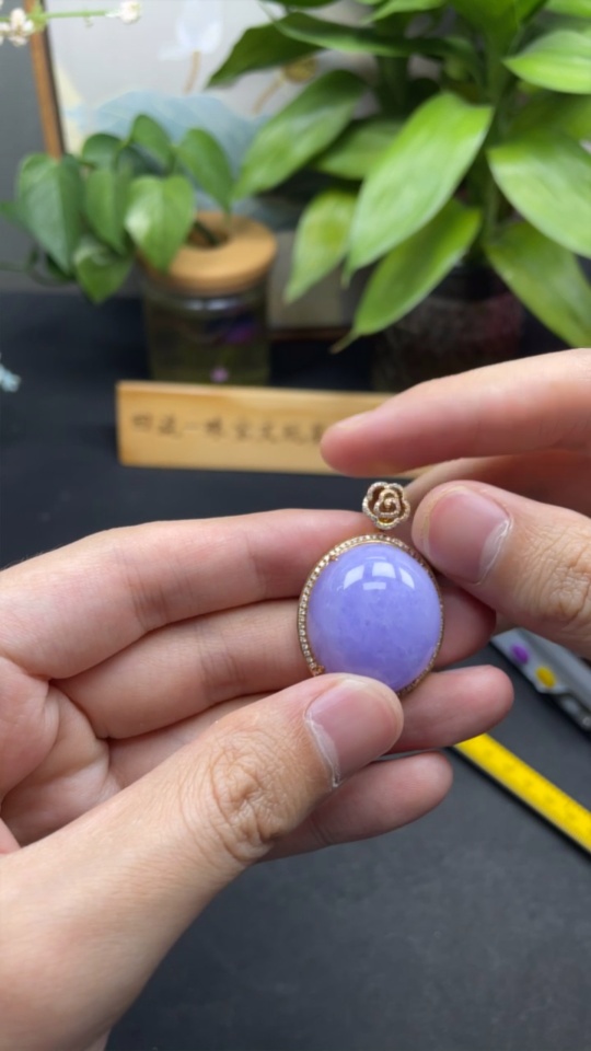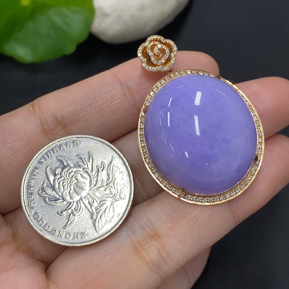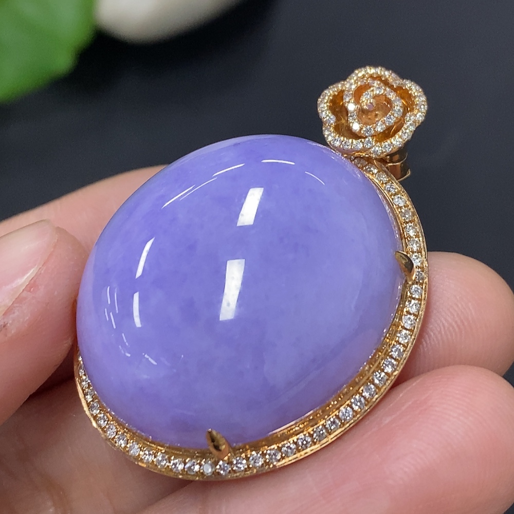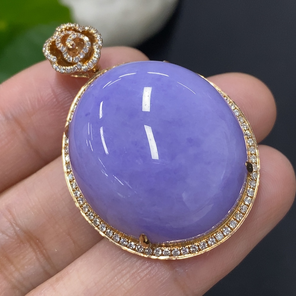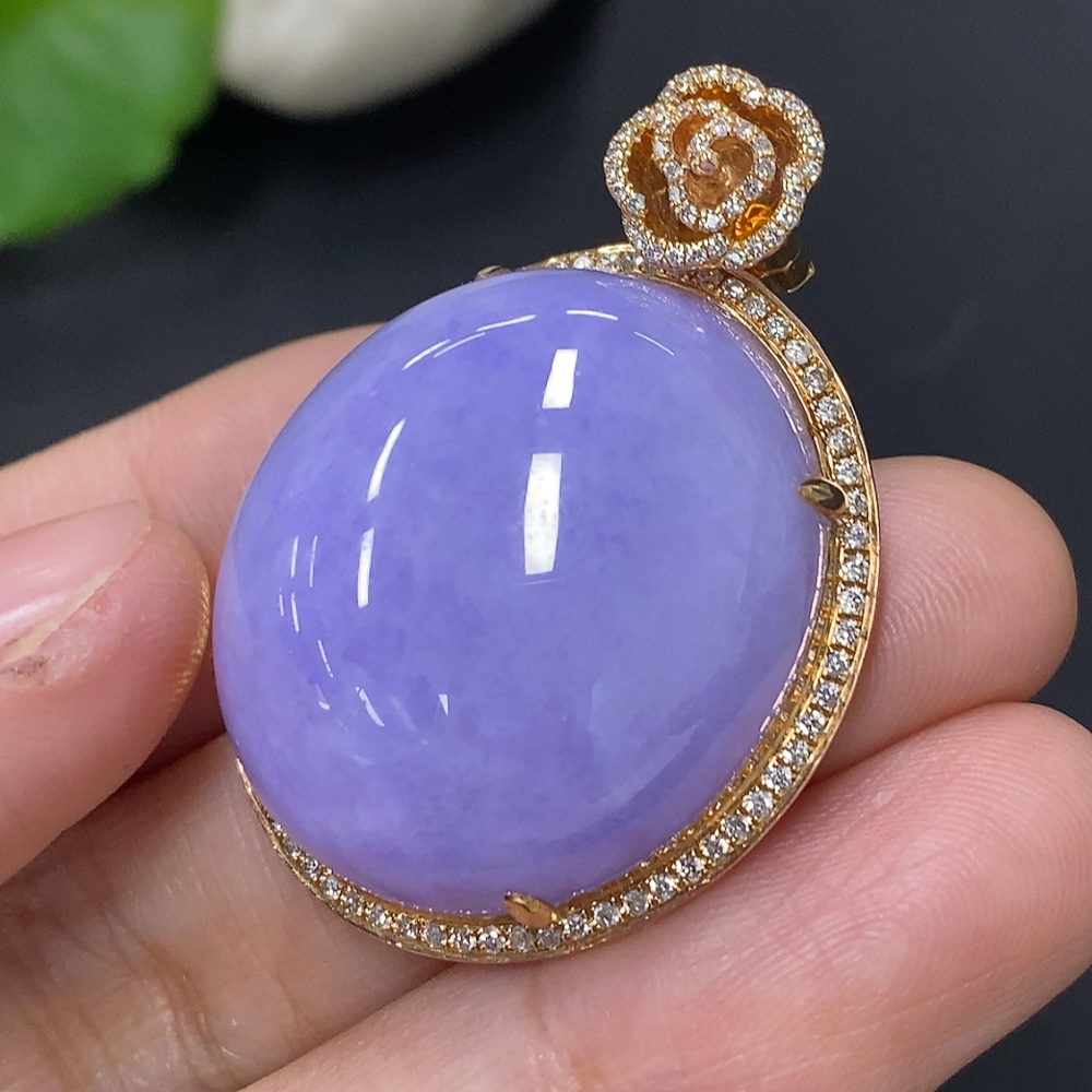 Jadeite cabochon pendant with 18K gold mounting, total weight approx. 19g (accented with diamonds)