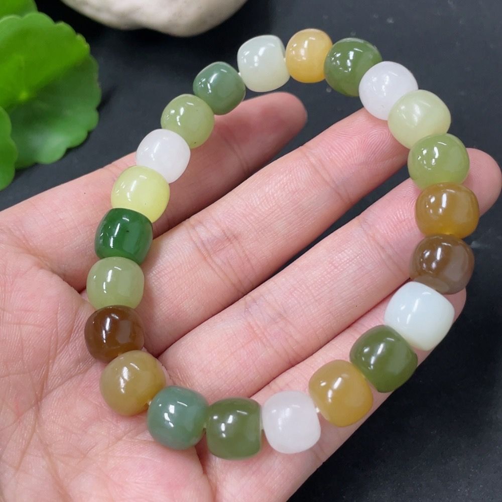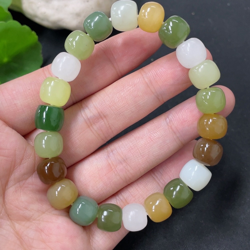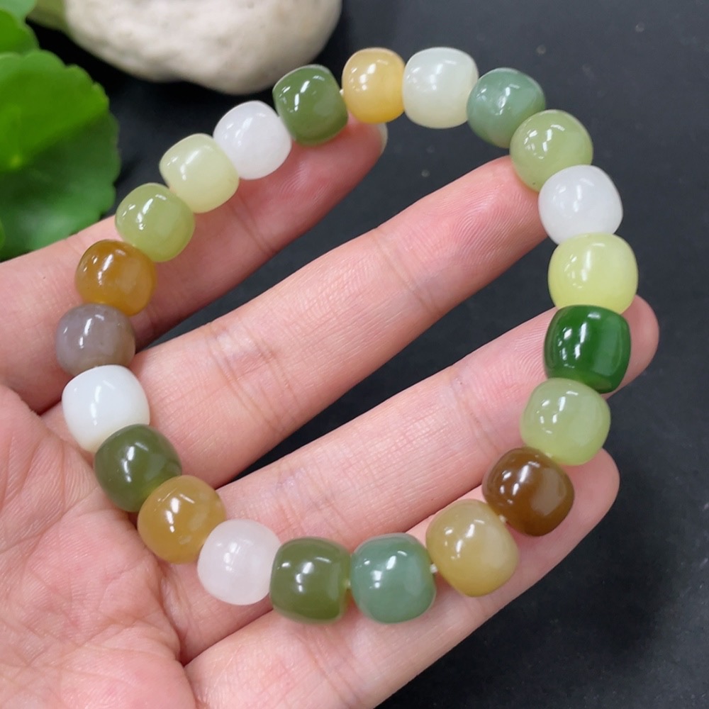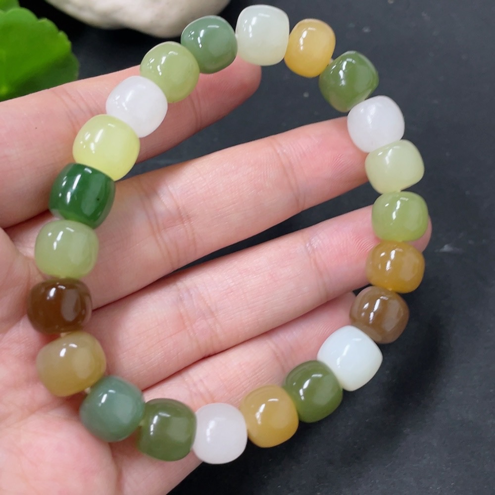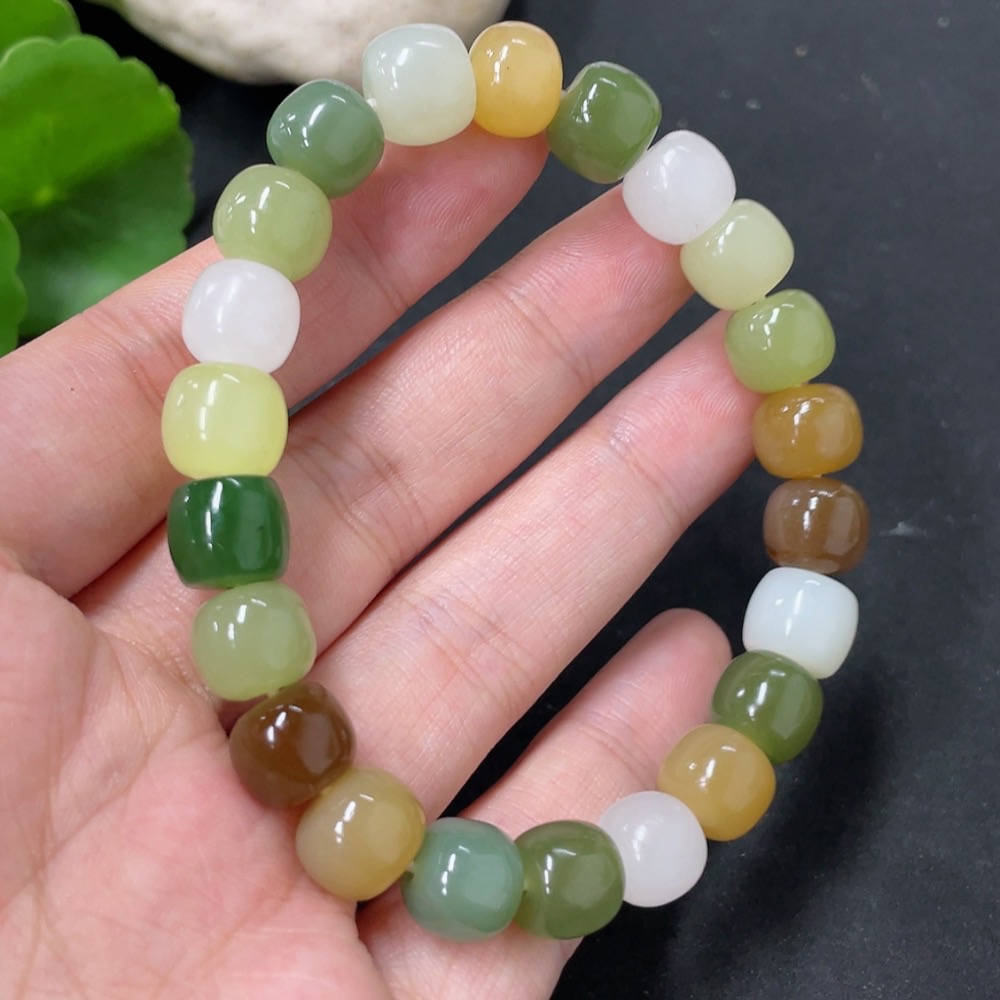 Hetian Jade Bracelet Approx. 9.5mm Total Weight About 32.9g Containing Other Mineral Components